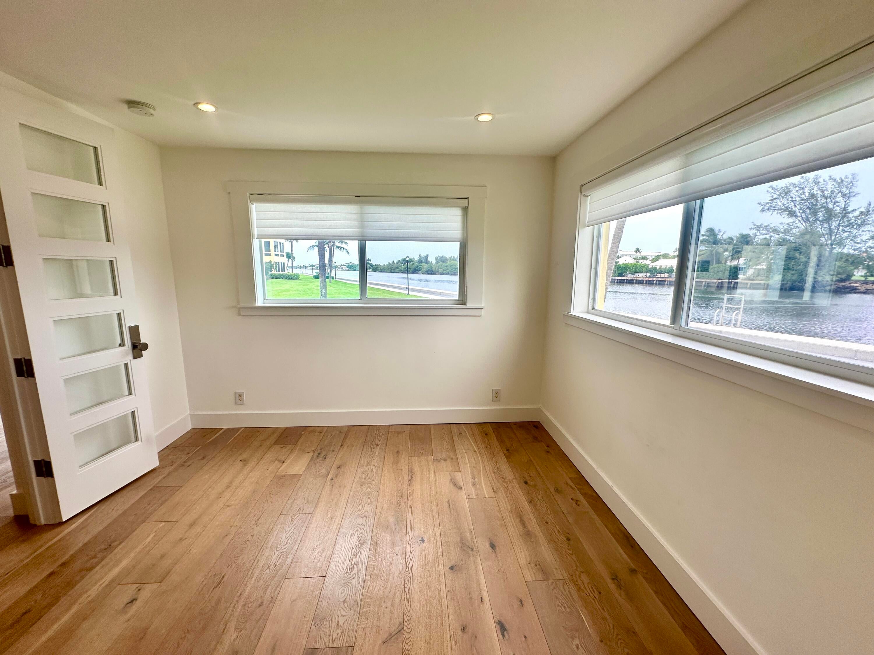 One or more photos are Virtual Imaging.BREATHTAKING INTRACOASTAL & GOLF COURSE VIEWS! This fully remodeled 2BR/2BA ground-floor corner unit in a prime building location offers an exceptional blend of luxury, comfort, and design. No detail was overlooked in this high-end renovation.Interior Features: Engineered hardwood floors throughout (LR, DR, Kitchen, Hall, MBR, 2nd BR) Ceilings smoothed (popcorn removed) Doorways raised to ceiling height Custom 8' French doors w/ brushed nickel hardware High-end kitchen w/ stainless steel farm sink, Brizo faucet, Bosch dishwasher, JennAir range, Zephyr hood, U-Line wine fridge, & retro Big Chill refrigerator Shiplap walls & open shelving w/ wood corbels Primary bath: walk-in shower, full Carrera tile, RH vanity w/ Belgian Bluestone, Toto toilet, Brizo fixtures Guest bath: enlarged walk-in shower, RH vanity, full tile, Toto toilet, Brizo fixtures Custom closets by Beyond Closets Inc. Custom light fixtures incl. RH chandelier & Farmstead handmade pieces New electrical panel & rewired outlets/switches (rockers/dimmers, screwless faceplates) SONOS sound system (LR, BRs, office, lanai) Washer/Dryer in storage closet Windows & Doors: Hurricane impact windows & doors Professionally tinted windows (lanai & guest room) Custom window treatments throughout New cottage-style wood molding on all floors/windows Lanai & Outdoor: Custom industrial-style lighting Steps to heated saltwater pool, clubhouse, and BBQ area 1500' Intracoastal seawall walkway (2019) perfect for walking/fishing Community & Structural Upgrades: New roof, new hurricane impact door, new screens, exterior painted. Pool & Deck approved to be redone. (No Assessment). Assessment PAID IN FULL Certified for safety under Florida Condo Act Bill 4-D - Recertification complete Strong reserves on track to meet 2026 SIRS funding requirement Location: Minutes to beautiful tropical beaches and Downtown Delray Beach, shopping, dining, entertainment. Condo Fee Includes: Exterior maintenance, insurance, water, Bluestream Fiber TV + high-speed Wi-Fi. All measurements are approximate. Buyer to verify. Information is deemed accurate but not warranted.