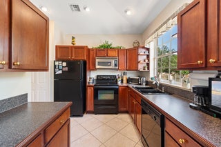ROOF IS 2024! What a beautiful location! This is a 3 bedroom, 2.5 bath and a 2 car garage overlooking the water view with a serene fountain sound every day. This home has been used as a second home since 2004 and has been lovingly cared for. Tiled floors throughout except carpet on the stairs. Location is key! Castle Pines allows for short term rentals and is the perfect location near St Lucie West shopping, around the corner from Tradition and all that it has to offer. Need to commute? Right over the bridge to I95 north and south! This home is ready for you to call home or visit as a seasonal residence. Being sold Fully Furnished and Turn Key! Castle Pines offers a swimming pool with cabana and Island Club house included in PGA.