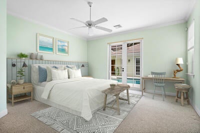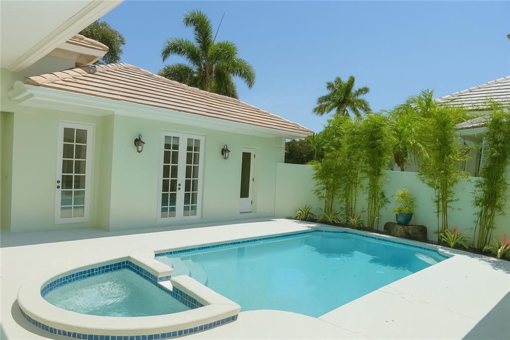 Private Caribbean West Indies-style home in Bermuda Club with 2,728 A/C sq ft. Features 2025 courtyard pool, 2024 tile roof, impact windows/doors, butcher block counters, stainless appliances, wood & tile floors, crown molding, 12' ceilings, jetted tubs & walk-in shower. Enjoy direct access to the Jungle Trail along the Indian River, deeded ocean access, and a large homesite in this exclusive coastal enclave.