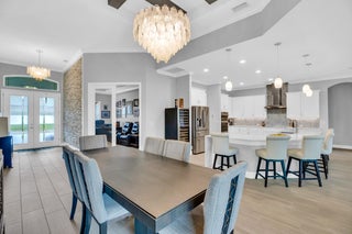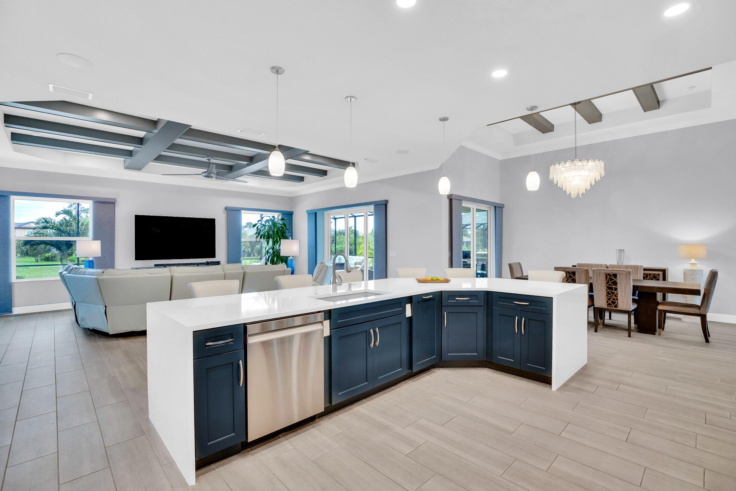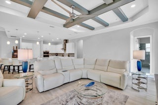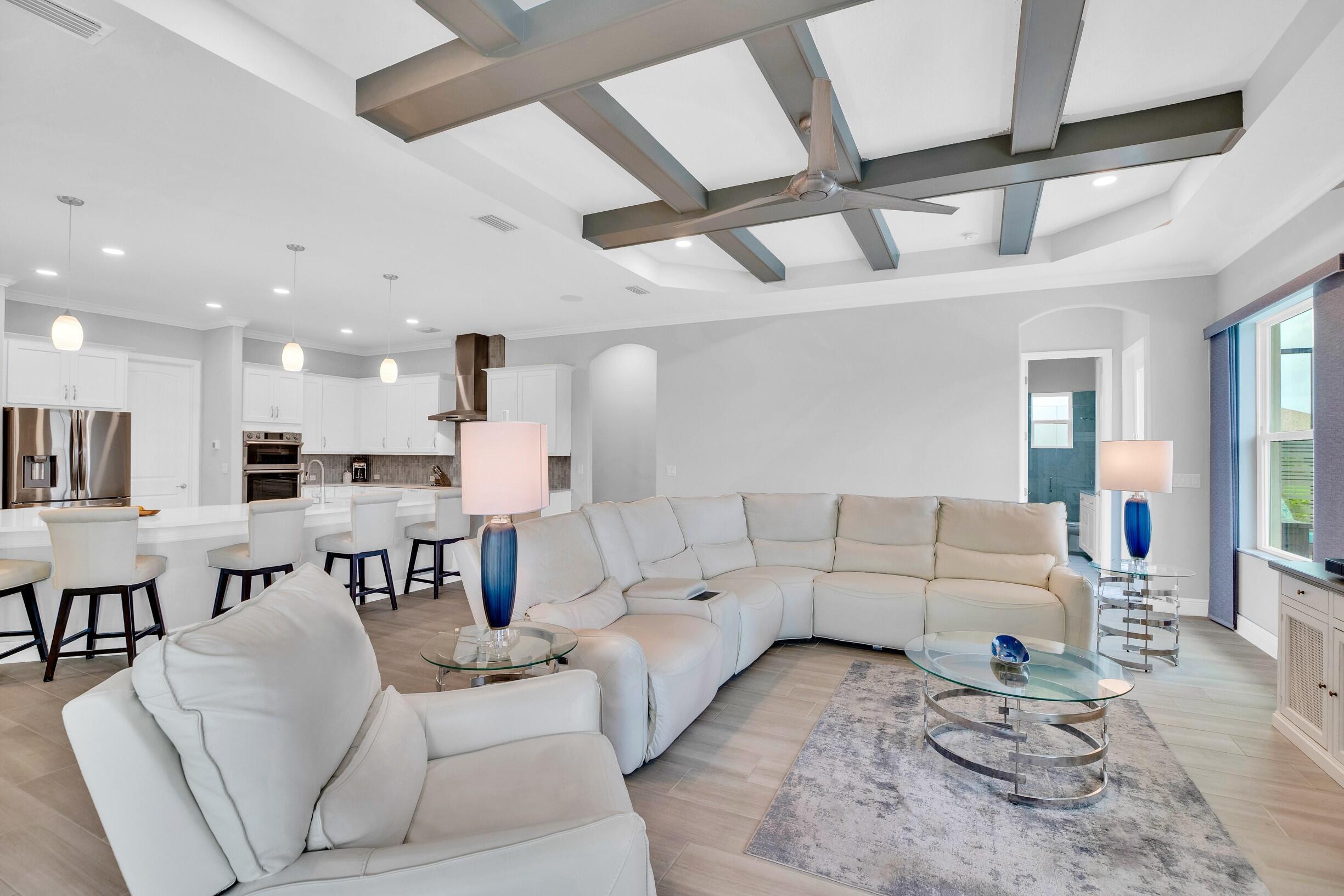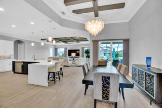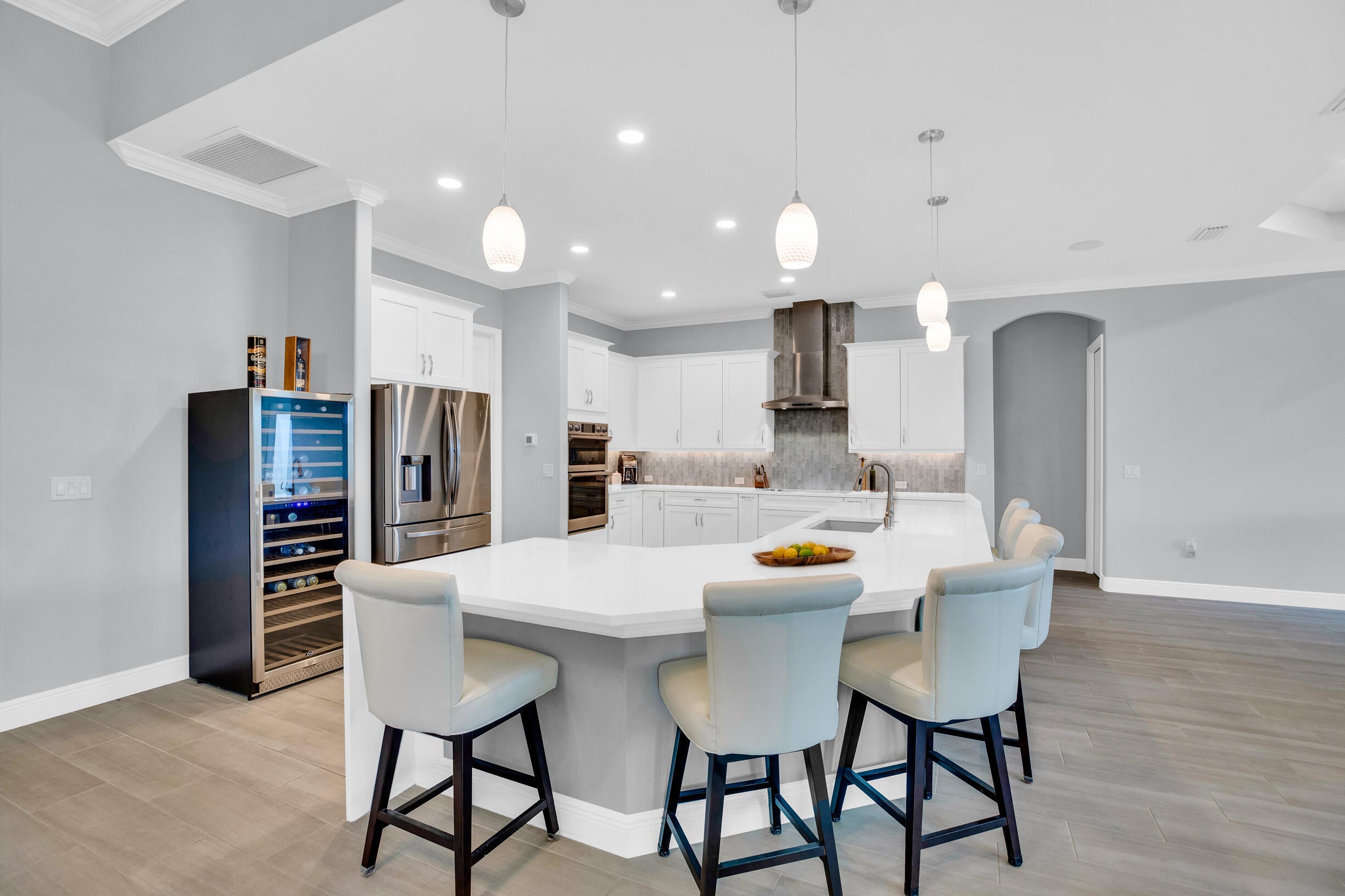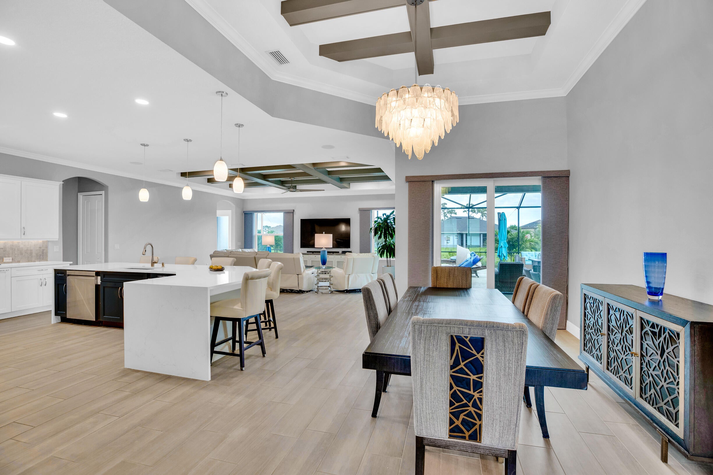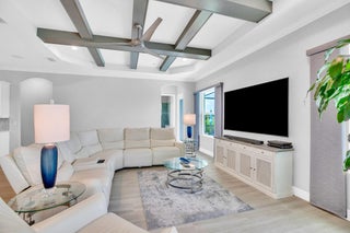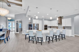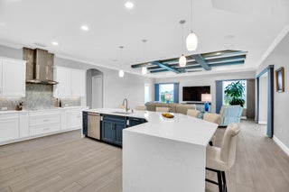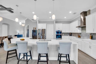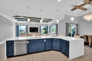 This custom-built lakefront masterpiece showcases refined elegance + impeccable craftsmanship at every turn. Boasting 4 bedrooms + privateoffice/den, 3 baths, + oversized 3-car garage w/dedicated EV charging station, this residence was designed for the most discerning buyer. Step into a world of sophistication where high-end finishes, soaring coffered tray ceilings, intricate crown moldings, & designer accents create an atmosphere of timeless beauty. The heart of the home is the gourmet chef's kitchen--a true showstopper--featuring a striking quartz waterfall island, custom backsplash, & premium appliances fit for a culinary connoisseur. The split floor plan ensures privacy & comfort, while expansive living spaces provide the perfect setting for grand entertaining or peaceful retreats. Enjoy the ultimate in indoor-outdoor living w/the screened-in saltwater heated pool & spa, complete w/a fully equipped summer kitchen. Powered by solar energy & supported by a 22kW whole-house Generac generator, this smart home offers sustainability & security. A rare offering of uncompromising luxury!