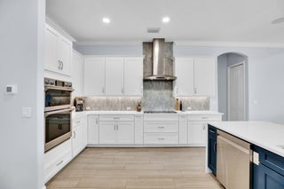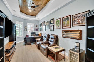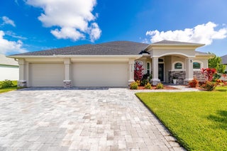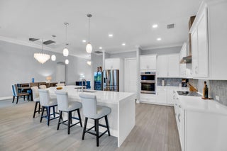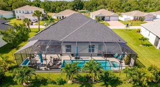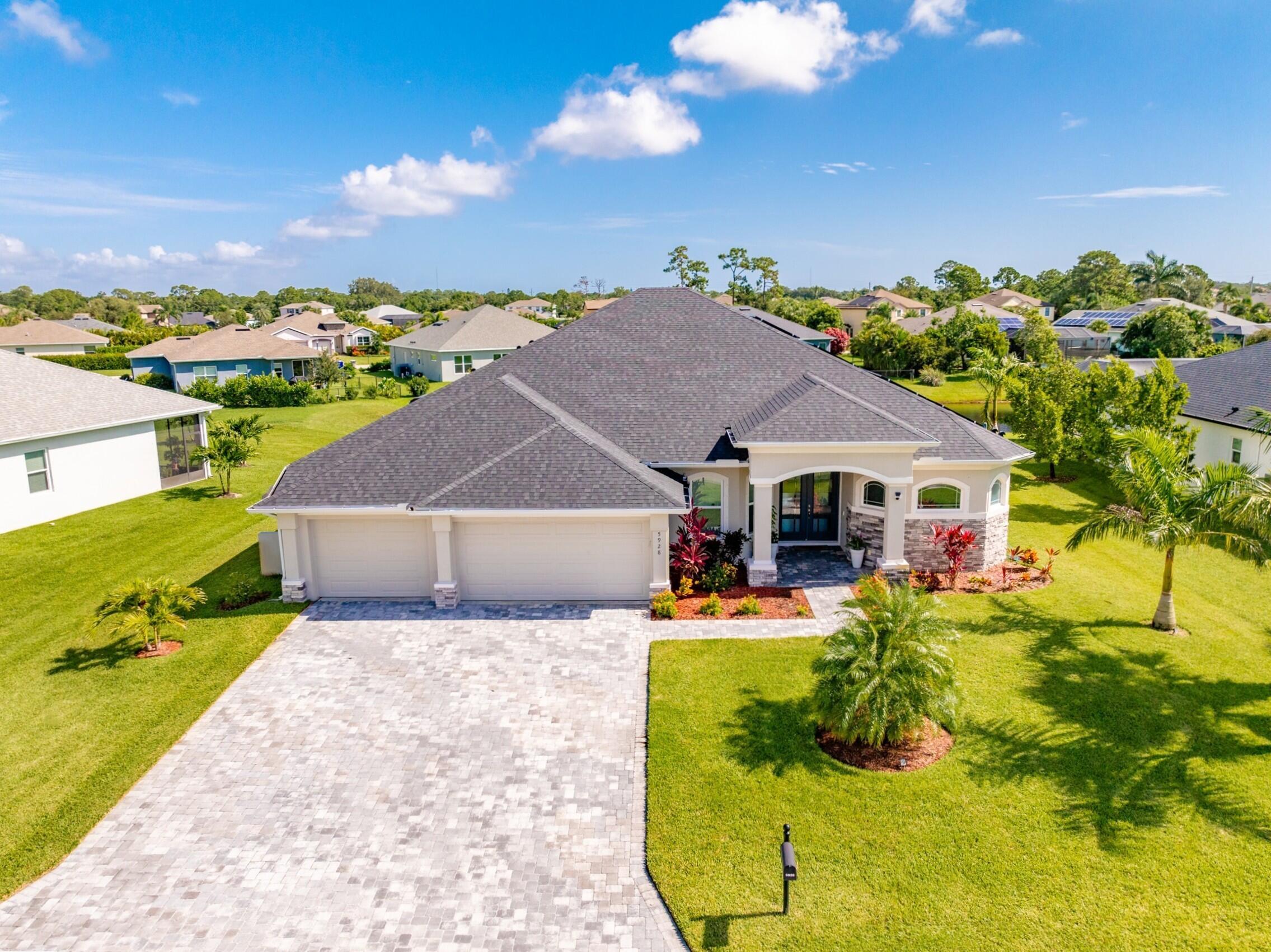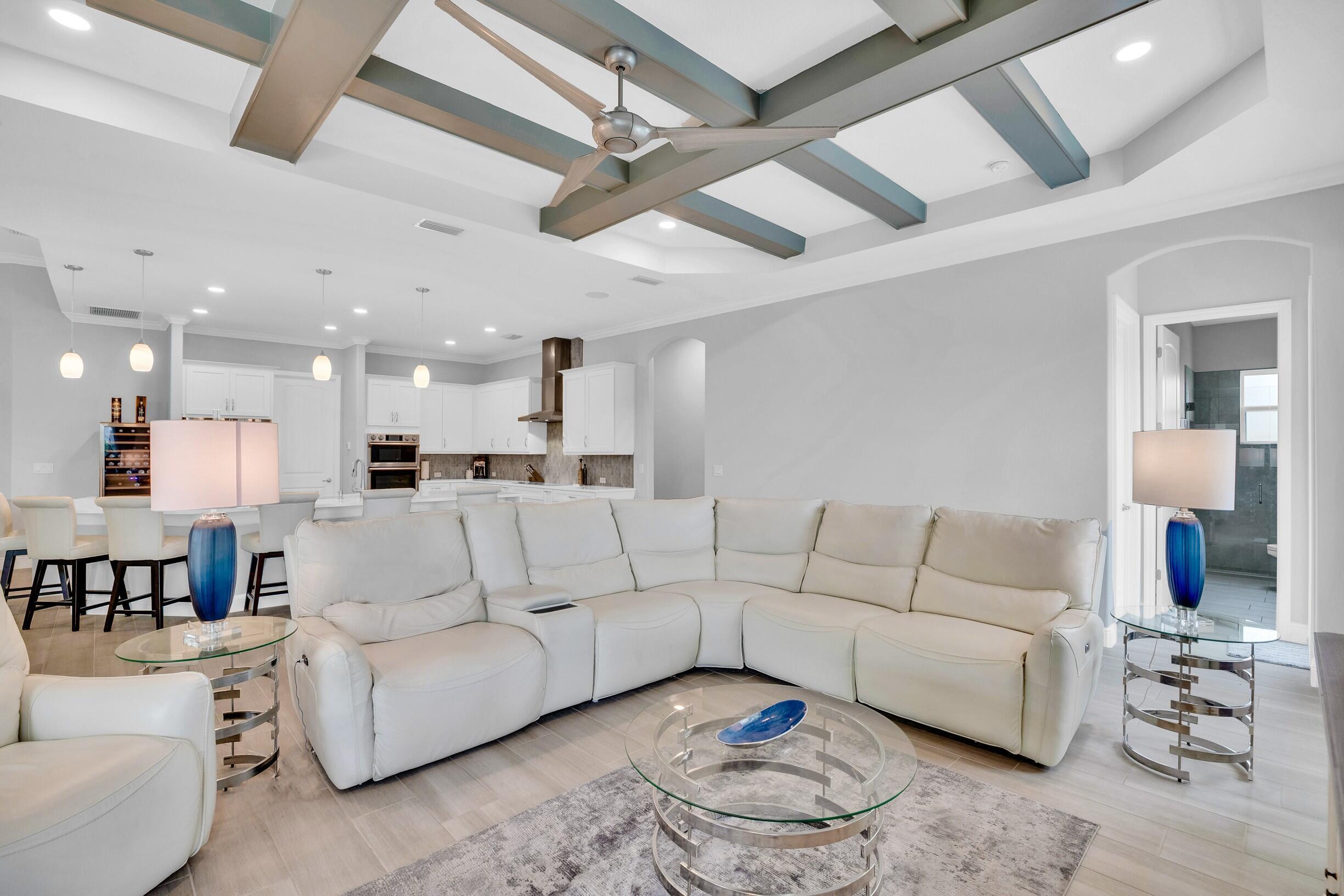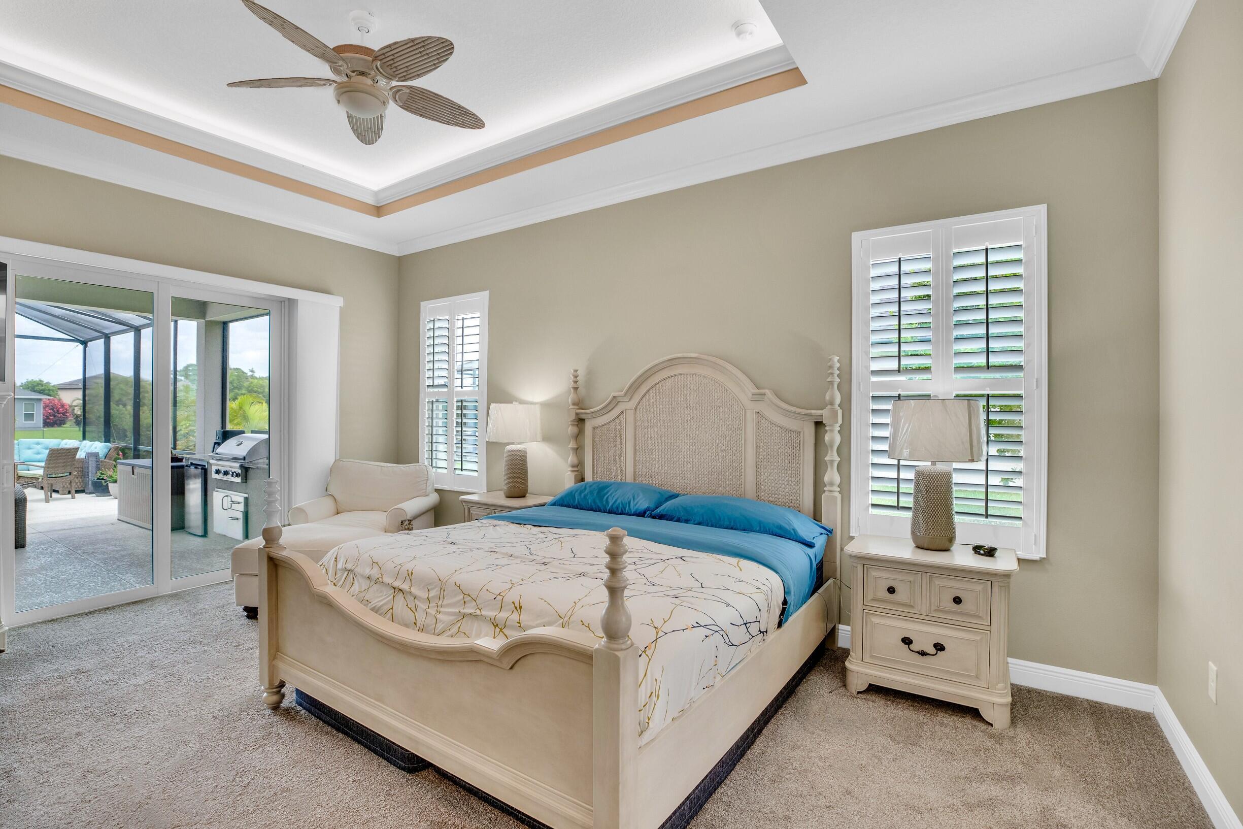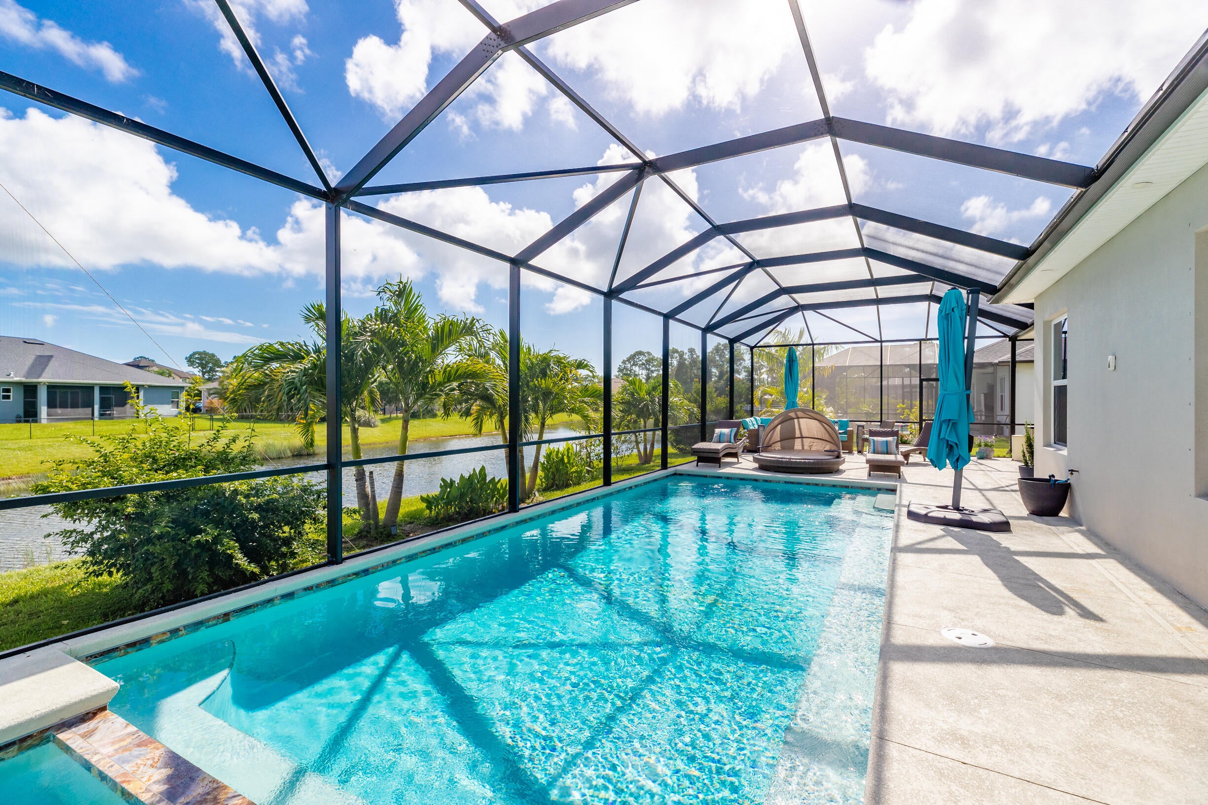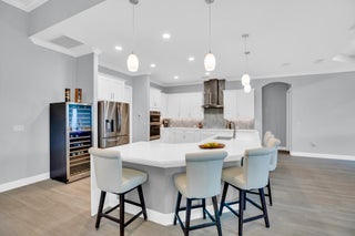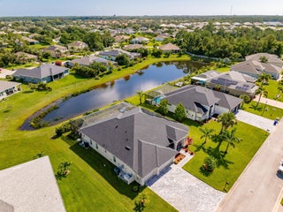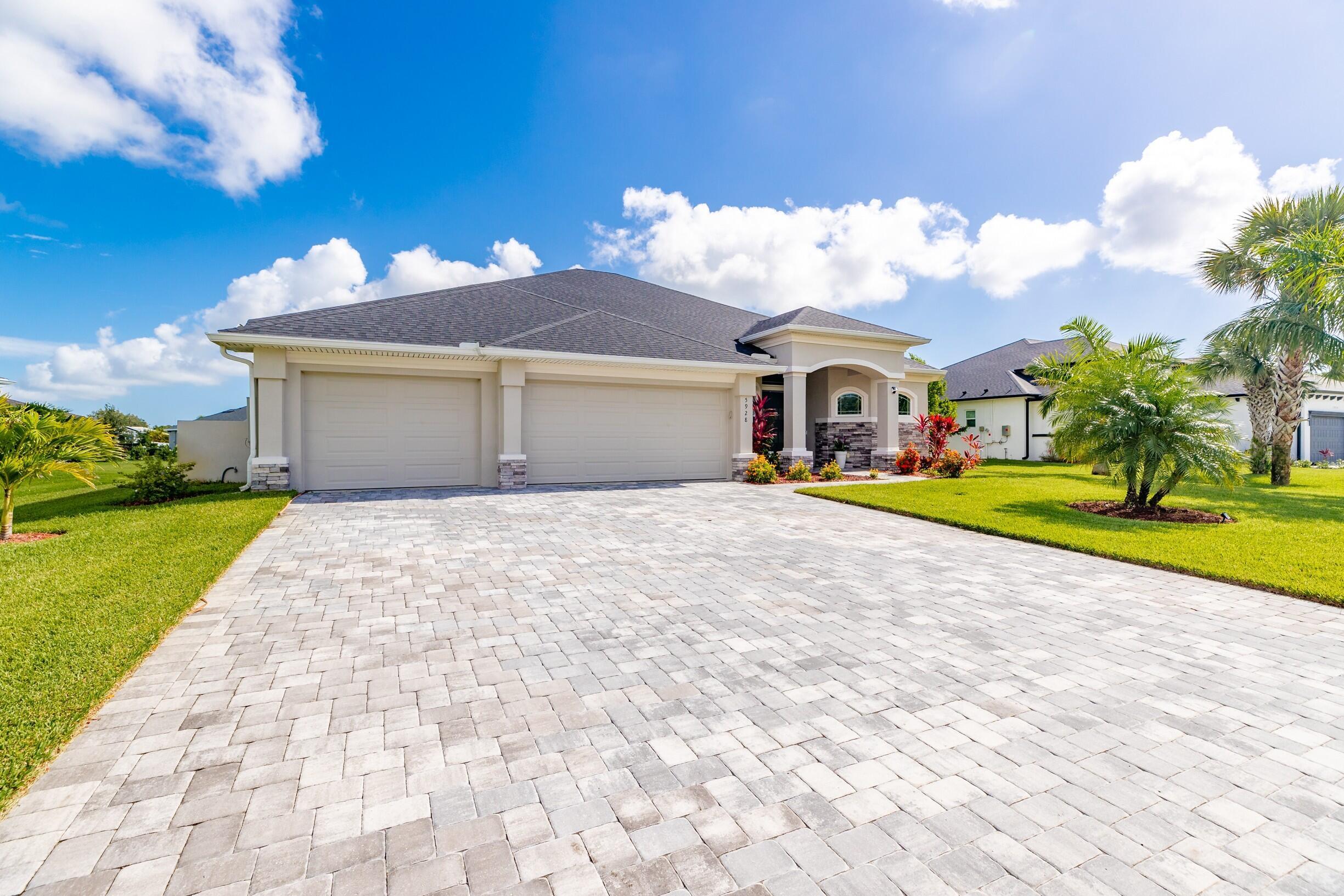 This custom-built lakefront masterpiece showcases refined elegance + impeccable craftsmanship at every turn. Boasting 4 bedrooms + privateoffice/den, 3 baths, + oversized 3-car garage w/dedicated EV charging station, this residence was designed for the most discerning buyer. Step into a world of sophistication where high-end finishes, soaring coffered tray ceilings, intricate crown moldings, & designer accents create an atmosphere of timeless beauty. The heart of the home is the gourmet chef's kitchen--a true showstopper--featuring a striking quartz waterfall island, custom backsplash, & premium appliances fit for a culinary connoisseur. The split floor plan ensures privacy & comfort, while expansive living spaces provide the perfect setting for grand entertaining or peaceful retreats. Enjoy the ultimate in indoor-outdoor living w/the screened-in saltwater heated pool & spa, complete w/a fully equipped summer kitchen. Powered by solar energy & supported by a 22kW whole-house Generac generator, this smart home offers sustainability & security. A rare offering of uncompromising luxury!