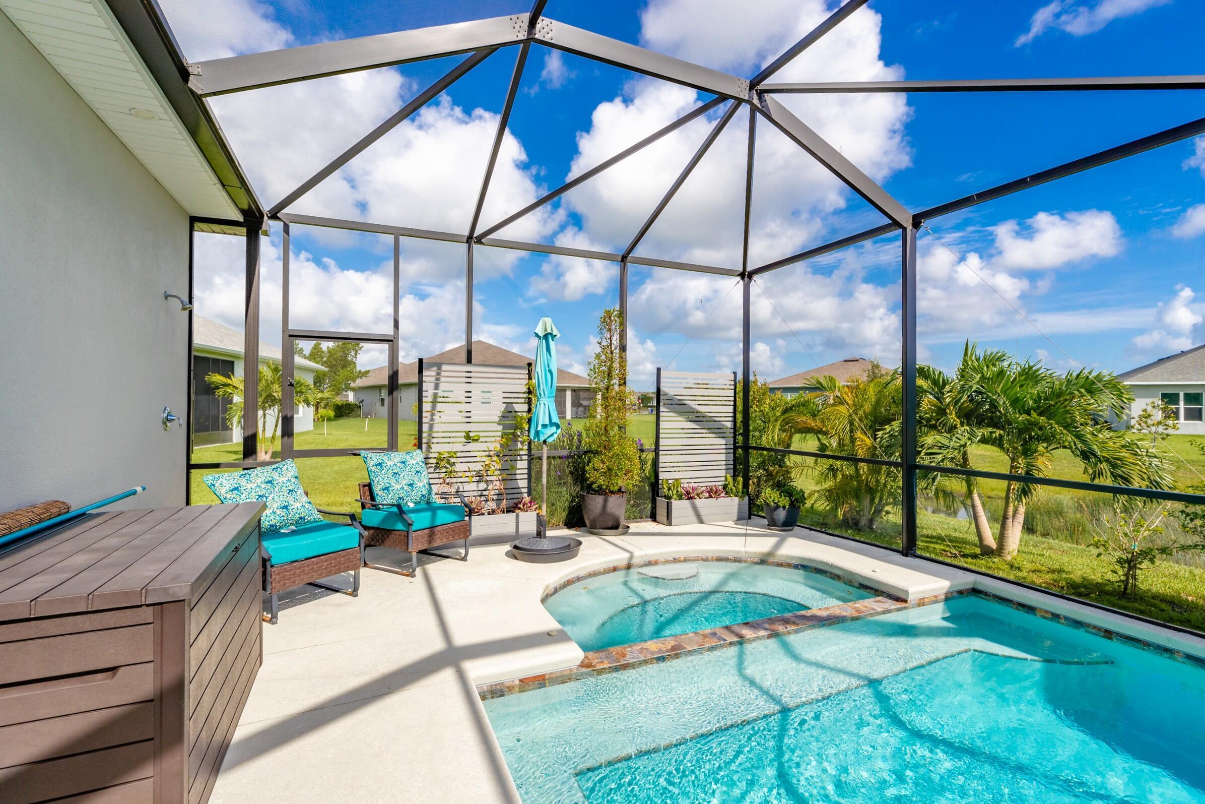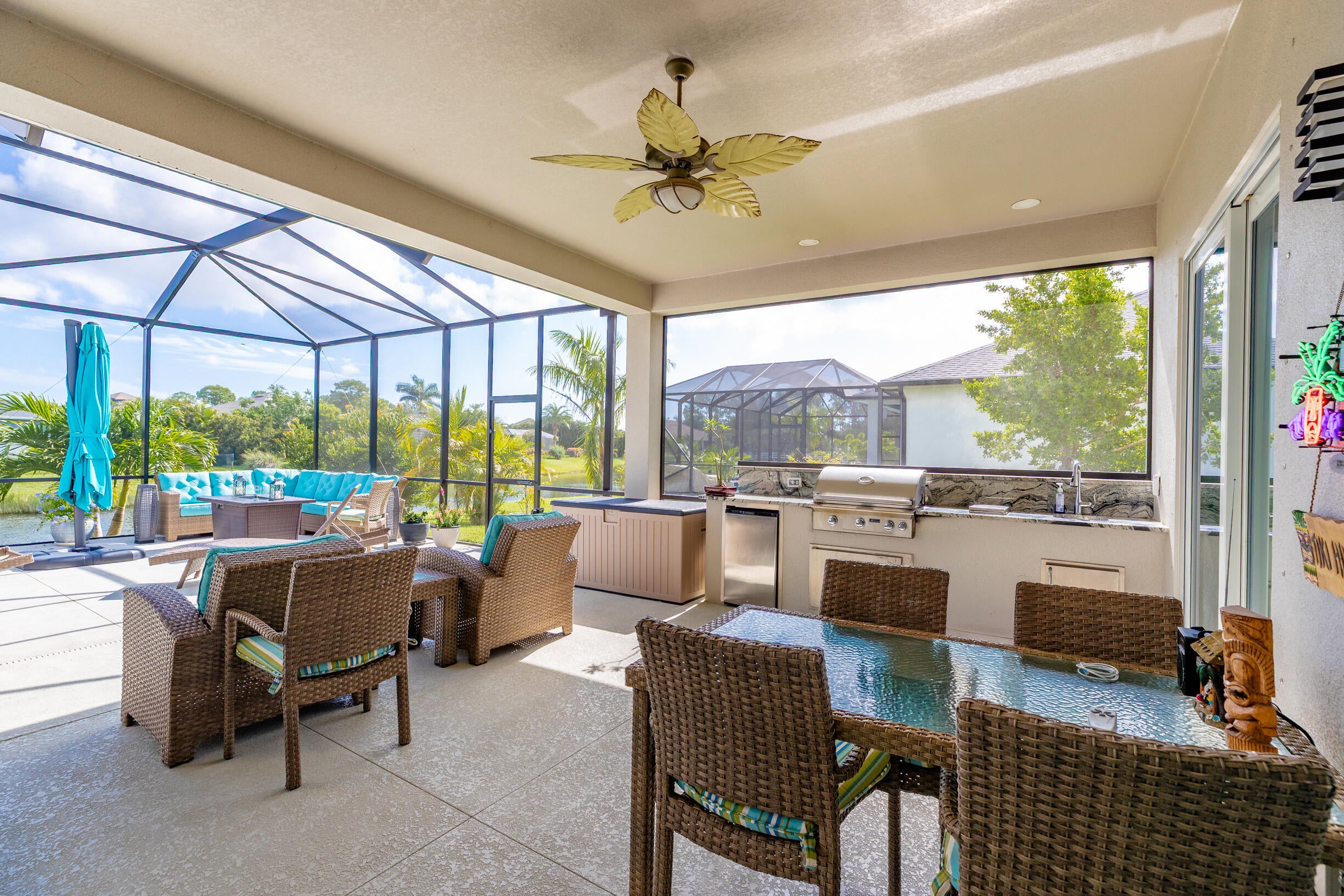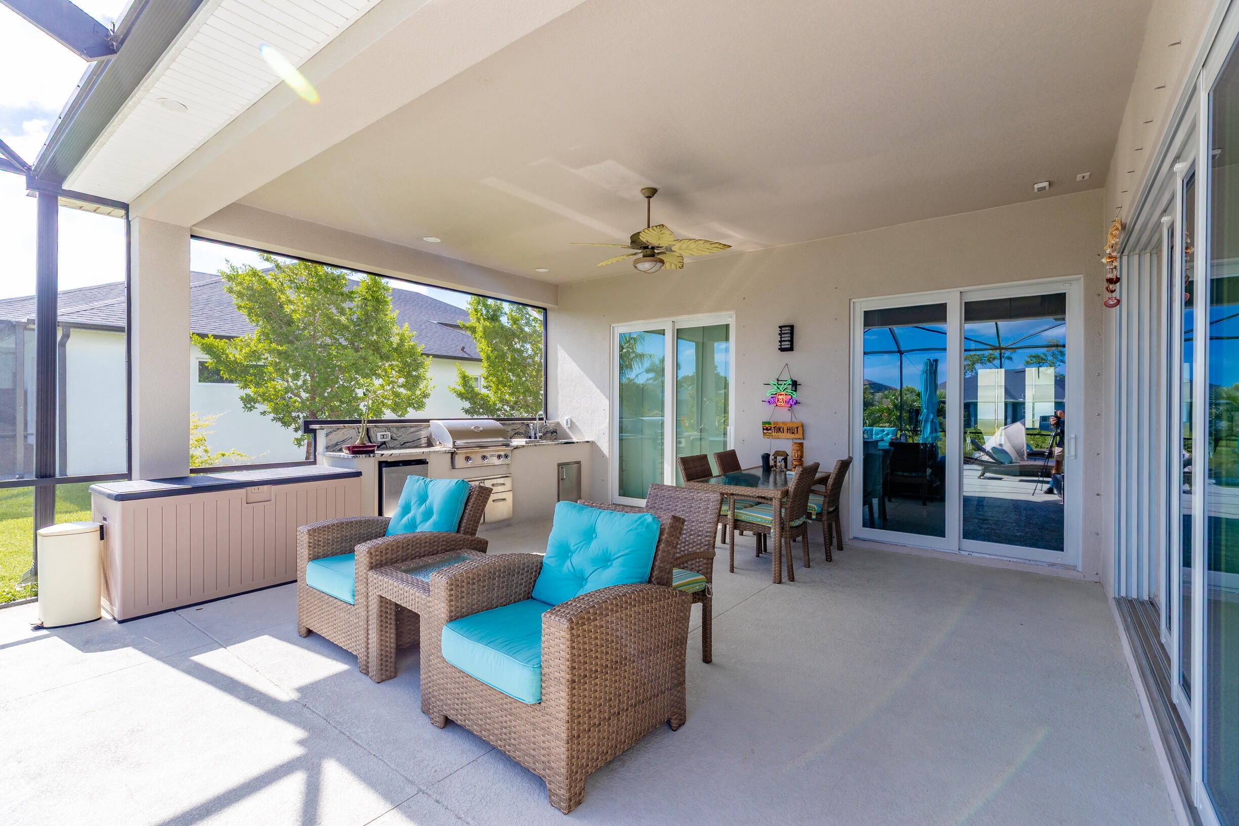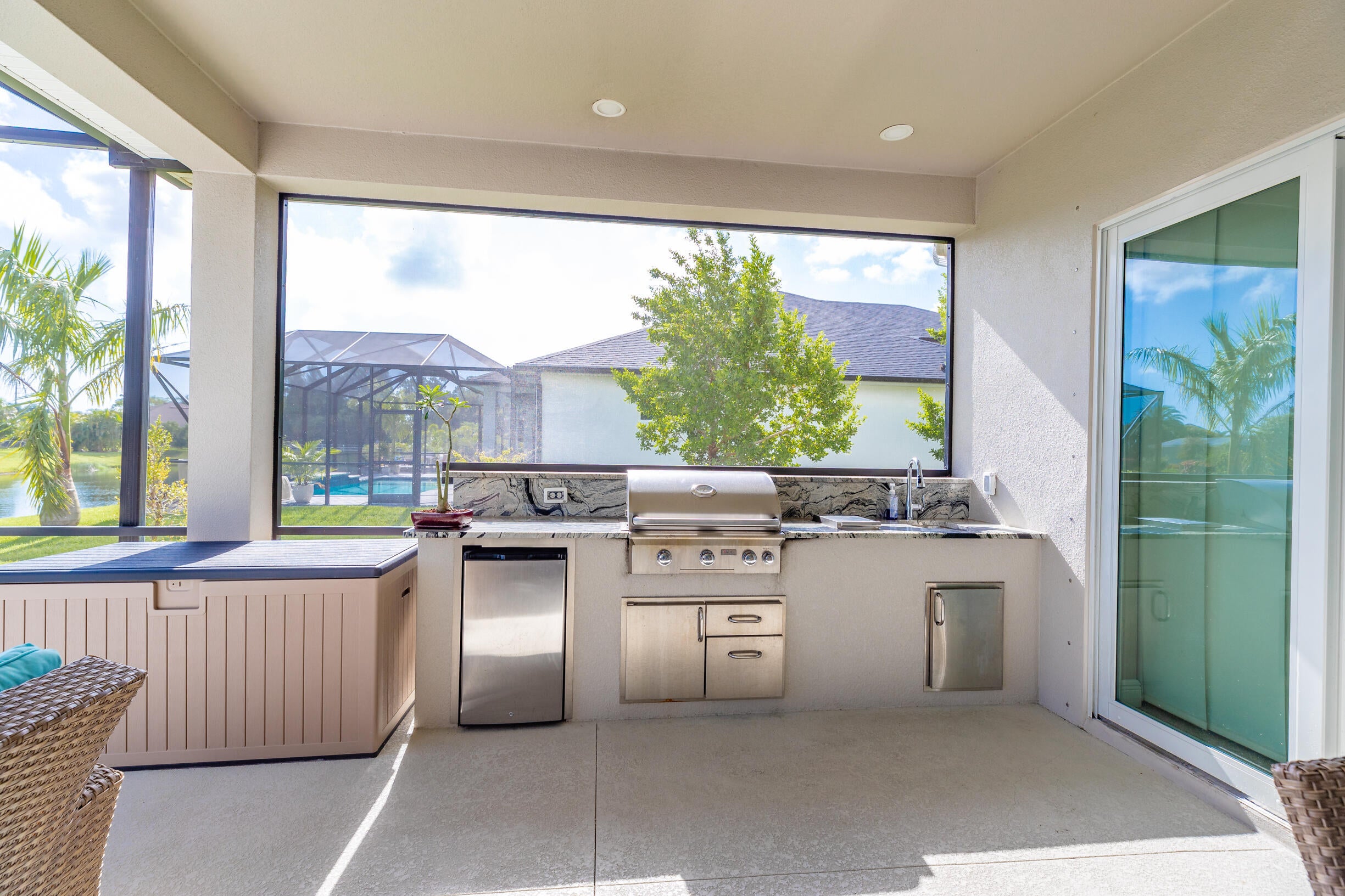 Auto Sprinkler, Built-in Grill, Covered Patio, Screened Patio, Shutters, Zoned Sprinkler, Outdoor Shower, Well Sprinkler, Screen Porch, Custom Lighting, Summer Kitchen, Solar Panels