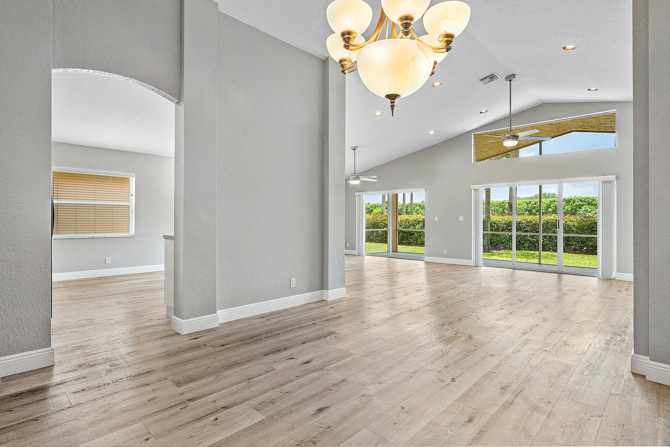 Spectacular Value on this Mint Condition Home in Ponte Vecchio. This Beautiful Home Features New Wood Look Flooring Throughout. The Interior has been Freshly Painted in Modern Tones. The Vaulted Ceilings in the Living Areas Welcome Incredible Natural Light. The Home has an Open Great Room Floorplan. The Kitchen Offers Lots of Counter Space and Cabinets. The Large Primary Bedroom Boats Two Walk-In Closets and a Luxurious Bathroom. Step Out Back to The Private and Peaceful Backyard with a Huge Screened Patio Facing Sunny Southern Views. Ponte Vecchio is an Incredible Active Adult Community with a Gorgeous Active Clubhouse with a Theater, Card Rooms, Fitness Center, Pickleball & More! Don't Miss Out on this Opportunity to Own a Move In Ready Home in an Incredible Location all for Under 400k!