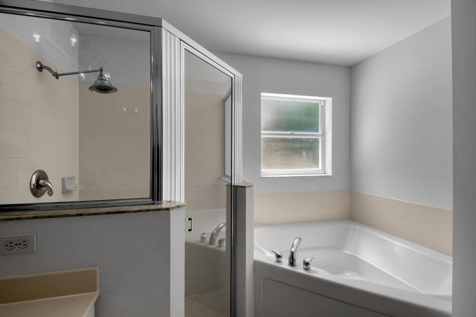 Welcome to this beautifully maintained home in a gated community just off 441--where convenience meets comfort! Step into a spacious living and dining area that flows seamlessly into the kitchen, featuring white cabinetry, a double farmhouse sink, and a custom range hood. The adjacent family room offers a cozy gathering space, accented by ceiling fans throughout the home for year-round comfort.The home includes a dedicated laundry room and a 2-car garage, plus a newer washer and dryer for added convenience. The guest bathroom is absolutely gorgeous, boasting a tub/shower combo with stylish finishes.The primary suite is a true retreat, offering tray ceilings, dual walk-in closets, a soaking tub, and a separate shower.Outdoors, relax or entertain in your private backyardoasis complete with a sparkling pool, hot tub, new pool heater, and a covered lanai with a cooling fan and a nesting 3-panel sliding glass door. The property also features a canal view, a newer roof, and a whole-house generator for peace of mind. Natural gas is available, too! Enjoy being just minutes from Southern Blvd and all the shopping and dining you could needless than 5 minutes away!
