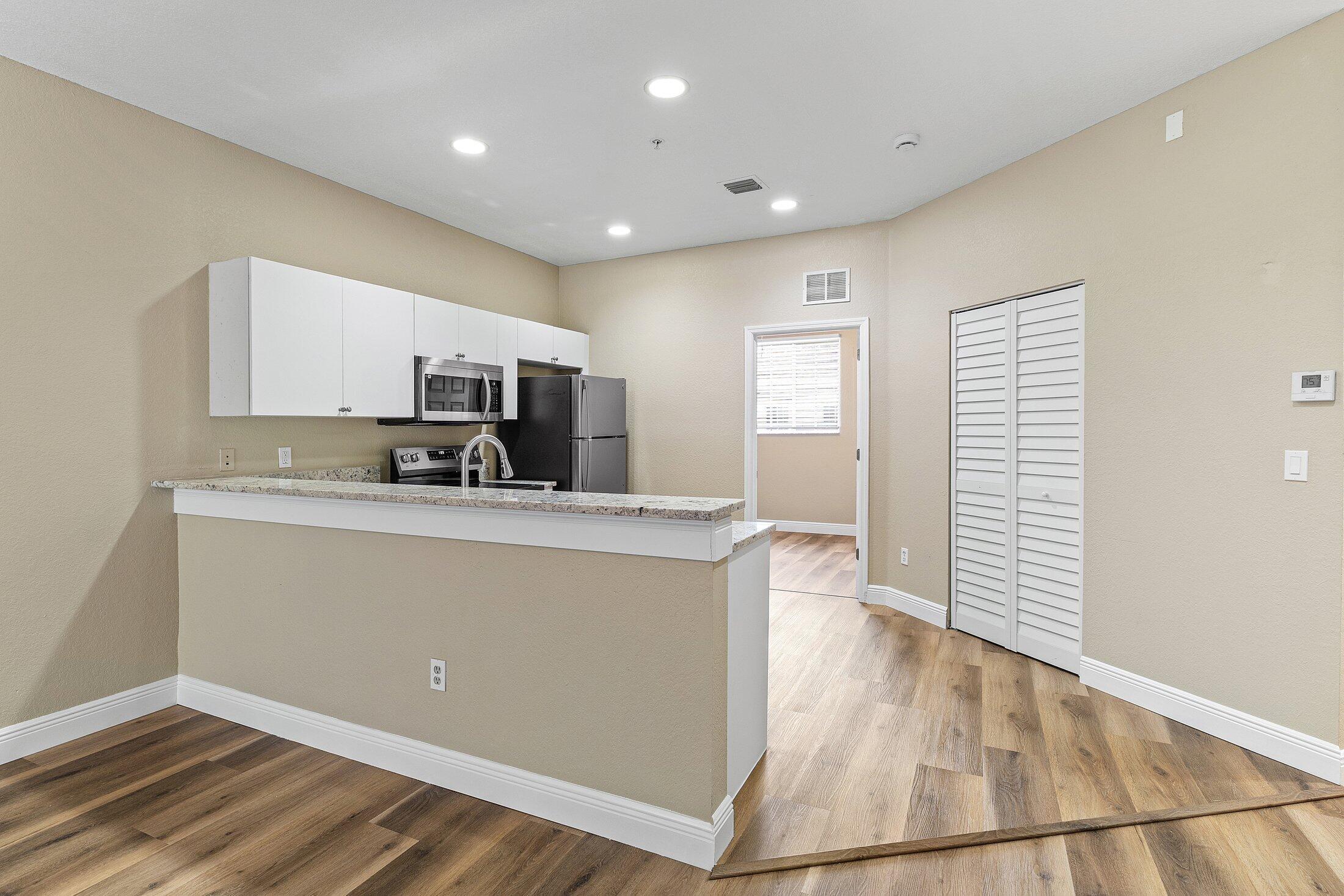 Discover the charm of this renovated 3-bedroom, 2-bathroom coach home in vibrant Marsh Harbour, close to the beach and shopping in Riviera Beach. Perfect for investors, this residence blends comfort and functionality for modern living. The spacious layout features a welcoming living area for relaxation and gatherings. The kitchen is thoughtfully designed for culinary ease with ample preparation space. New laminate wood flooring throughout creates an inviting atmosphere. Part of a guard-gated community, enjoy privacy, security, and amenities like a pool, spa, exercise room, tennis courts, lake paths, clubhouse, and playgrounds. Ideal for a balanced and fulfilling lifestyle!