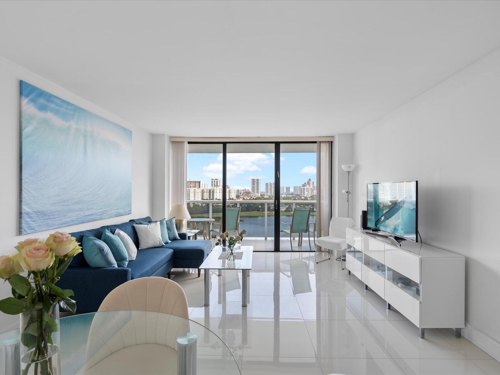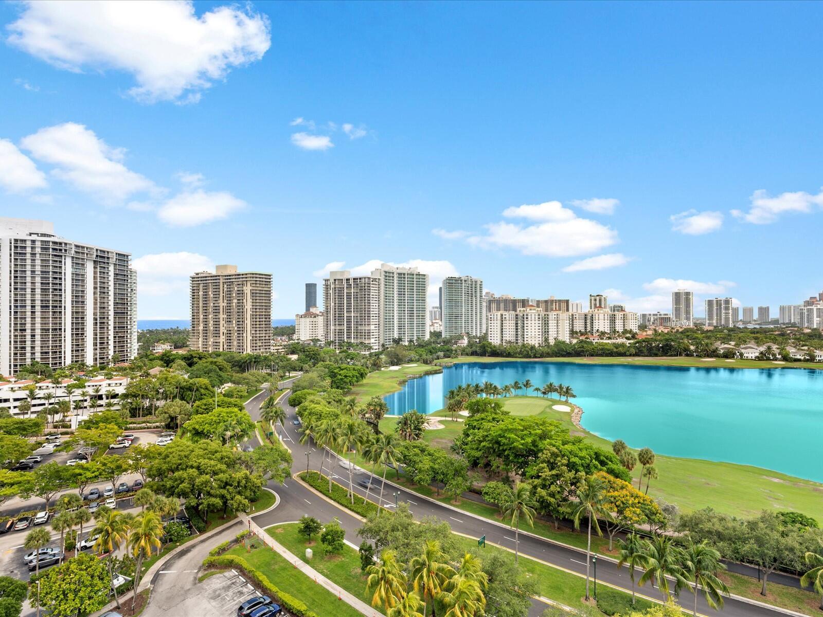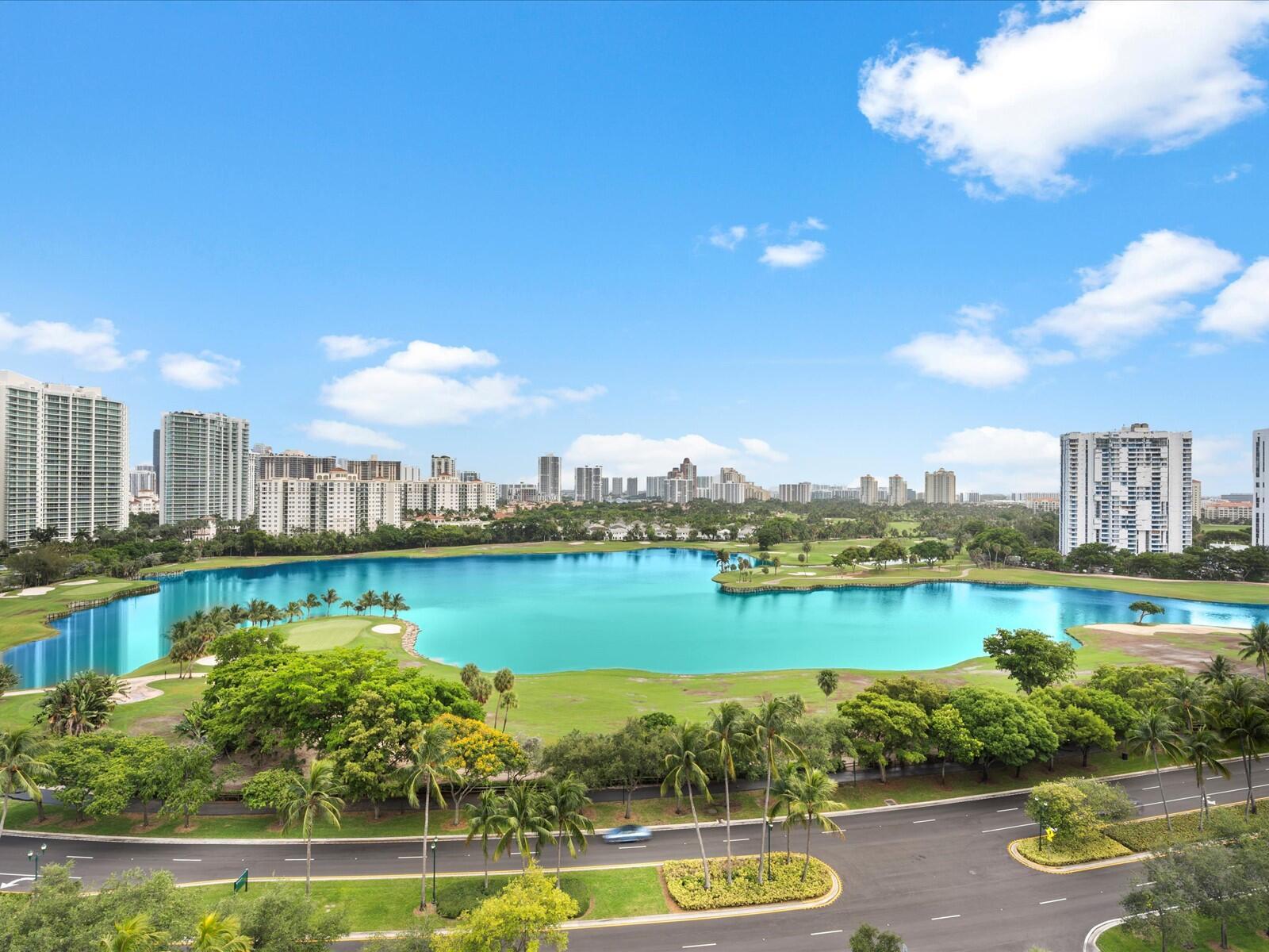 Stunning 16th-floor condo at El Dorado Towers in Aventura offering breathtaking panoramic views of Turnberry golf course, Intracoastal Waterway, and city skyline. This renovated & spacious 1-bedroom, 1.5-bath residence features tile flooring throughout and a semi-open kitchen with a pass-through wall designed for barstool seating, perfect for entertaining. Relax on the large balcony while enjoying beautiful sunsets and ocean breezes. The pool and BBQ area are currently being renovated and will reopen soon, adding significant value for new owners. Building amenities include a fitness center, sauna, clubhouse, and 24-hour security. Ideally located near Aventura Mall, beaches, Gulfstream Park, and Don Soffer Exercise Trail. Includes a very desirable covered parking space and storage locker.