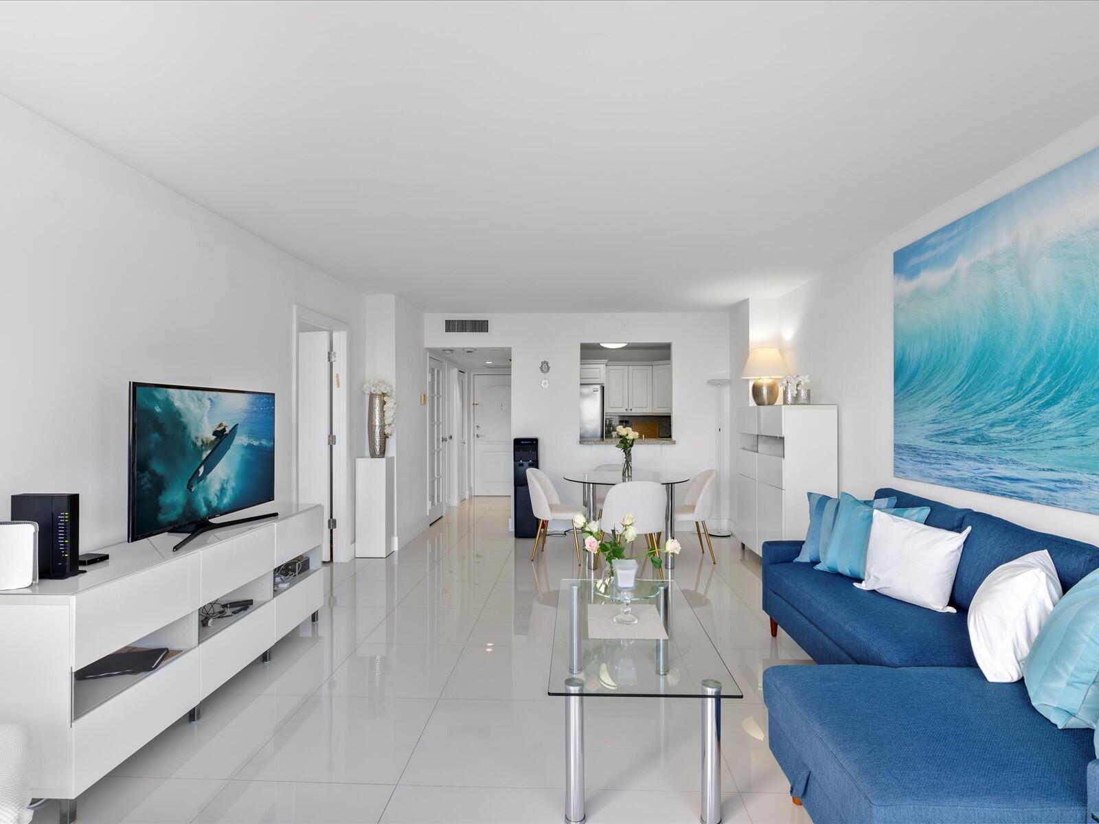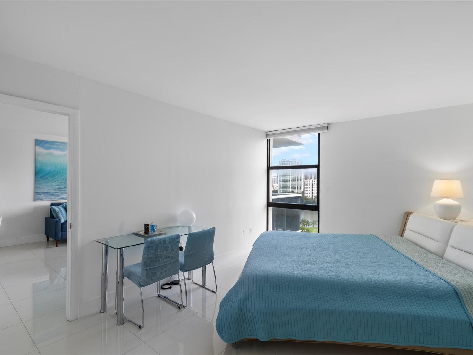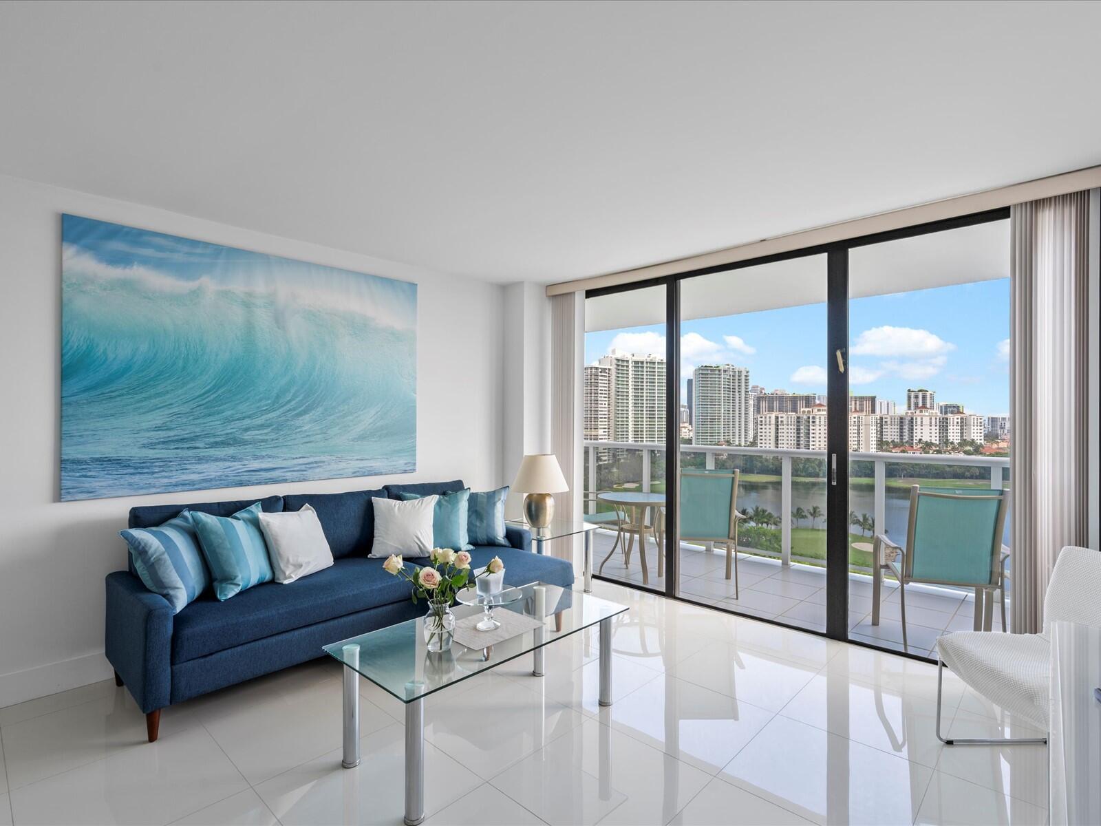 Stunning 16th-floor condo at El Dorado Towers in Aventura offering breathtaking panoramic views of Turnberry golf course, Intracoastal Waterway, and city skyline. This renovated & spacious 1-bedroom, 1.5-bath residence features tile flooring throughout and a semi-open kitchen with a pass-through wall designed for barstool seating, perfect for entertaining. Relax on the large balcony while enjoying beautiful sunsets and ocean breezes. The pool and BBQ area are currently being renovated and will reopen soon, adding significant value for new owners. Building amenities include a fitness center, sauna, clubhouse, and 24-hour security. Ideally located near Aventura Mall, beaches, Gulfstream Park, and Don Soffer Exercise Trail. Includes a very desirable covered parking space and storage locker.