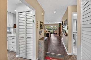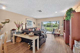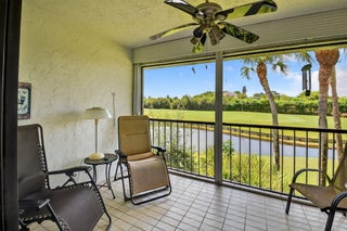 This is IT !! A beautifully maintained condo located in the highly sought-after Hunters Run Country Club. This spacious second-floor unit offers 2 bedrooms, 2 bathrooms, and an open-concept layout filled with natural light. The updated kitchen features large pass though ,stunning backsplash, granite countertops, stainless steel appliances, and ample cabinetry--perfect for cooking and entertaining. Primary En Suite boasts a new shower with River Rock Floor & Frameless shower door. Enjoy serene golf course and lake views from the screened-in lanai. BRAND NEW A/C.. AND YES.... YOU CAN OWN YOUR OWN GOLF CART ;-)
