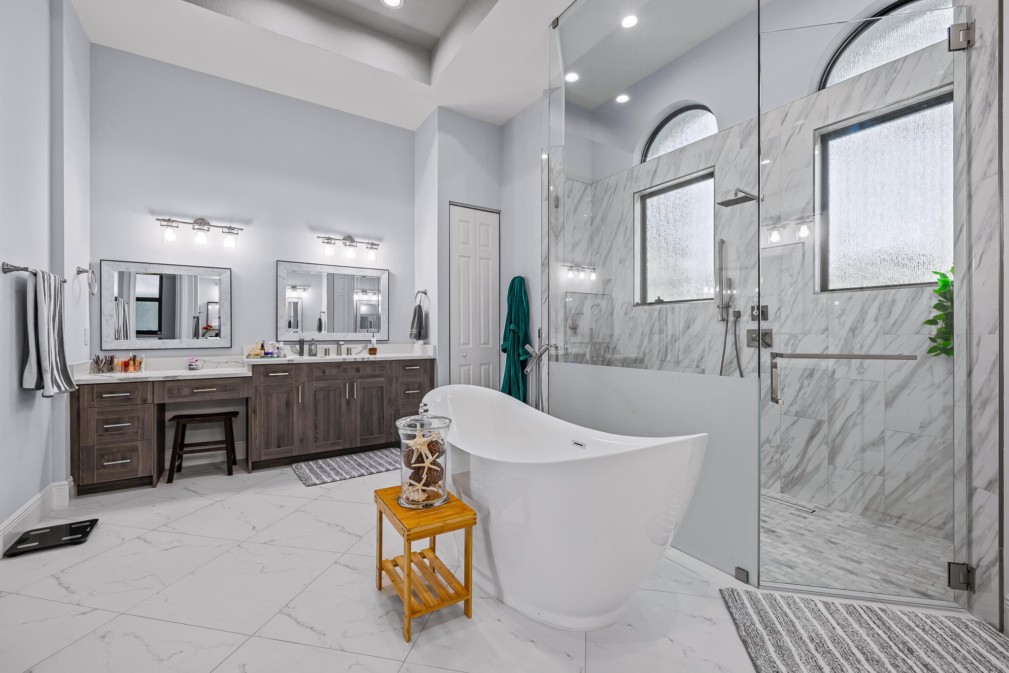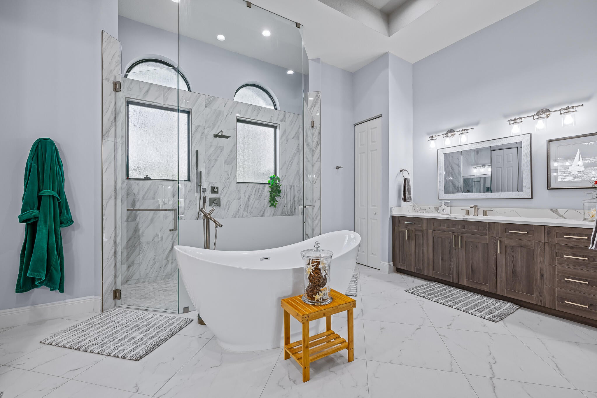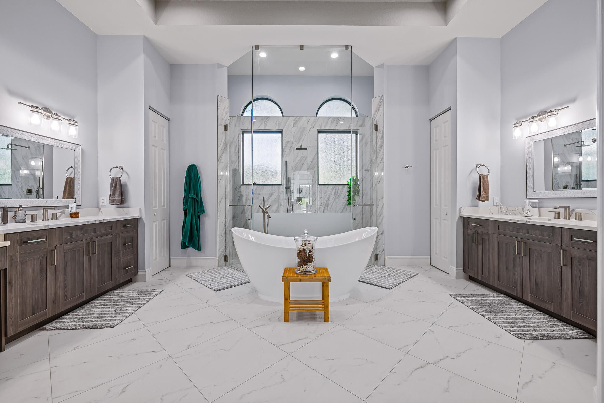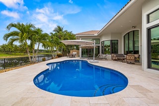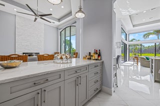 Set on a prime waterfront lot with sweeping lake and preserve views, this fully reimagined Heron Bay estate is the crown jewel of The Falls. Every inch inside and out has been masterfully redesigned with purpose, precision, and quiet luxury. Located in a double-gated community, this one-story home offers nearly 4,000 sq ft of living space with 24x24 porcelain tile, SIW impact glass throughout, and a chef's kitchen featuring a seamless 10'x6' quartzite island, custom cabinetry, and commercial-grade ZLine and GE Monogram appliances. Four spa-like bathrooms are finished with Carrara marble, Calacatta quartz, and Moen solid bronze fixtures. Smart features include Lutron programmable lighting, Sonos sound, AvertX 4K security, and smart garage systems.Outdoors, travertine marble pavers connect a redesigned pool deck, driveway, and walkways. The pool has been resurfaced with glass tile, flanked by a new outdoor shower and fully automated Pentair equipment. A full landscaping redesign adds privacy hedges, mature palms, and a river rock path. New gutters and French drains manage stormwater flow with precision. The home theater system includes concealed wiring, in-wall speakers, and wall mounts ready for large-screen displays. Additional upgrades include all-new laundry with custom tile, modular garage flooring, Amarr hurricane-rated garage doors, and a bar with quartzite countertops and a 50" Dimplex flame-effect fireplace. Heron Bay is in the final phases of a multimillion dollar lifestyle and amenity transformation through its ELEVATE project, enhancing both clubhouses inside and out with modern gyms, spa-level locker rooms, a new café, new tennis and pickleball courts, a resort-style pool deck, and a brand-new splash pad water park. These improvements are designed to elevate daily living and protect long-term community value. Offered with the option to purchase fully or partially furnished, featuring a curated inventory of high-quality pieces selected to complement the home's design. Nothing overlooked. Move-in ready. Lives like a model.