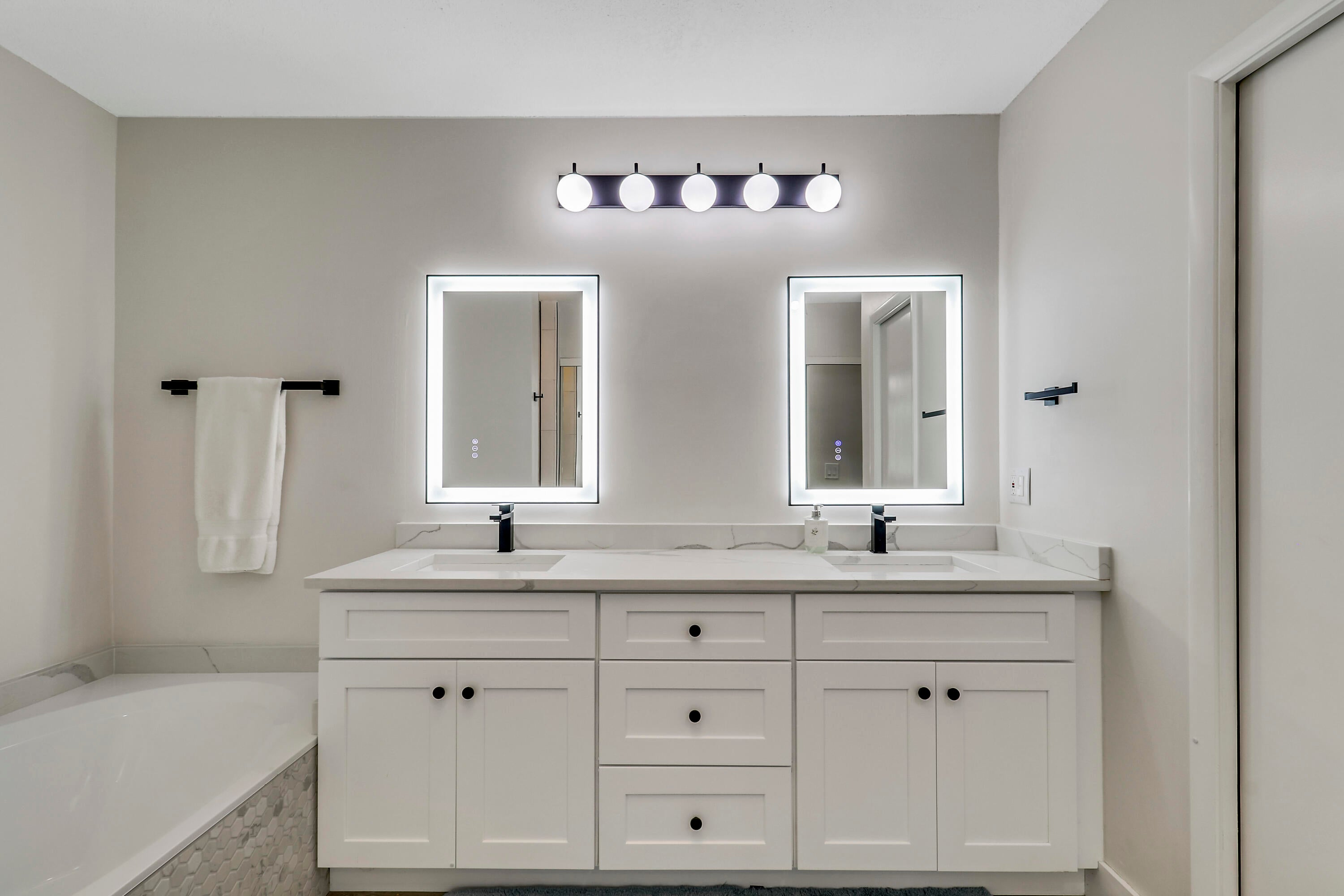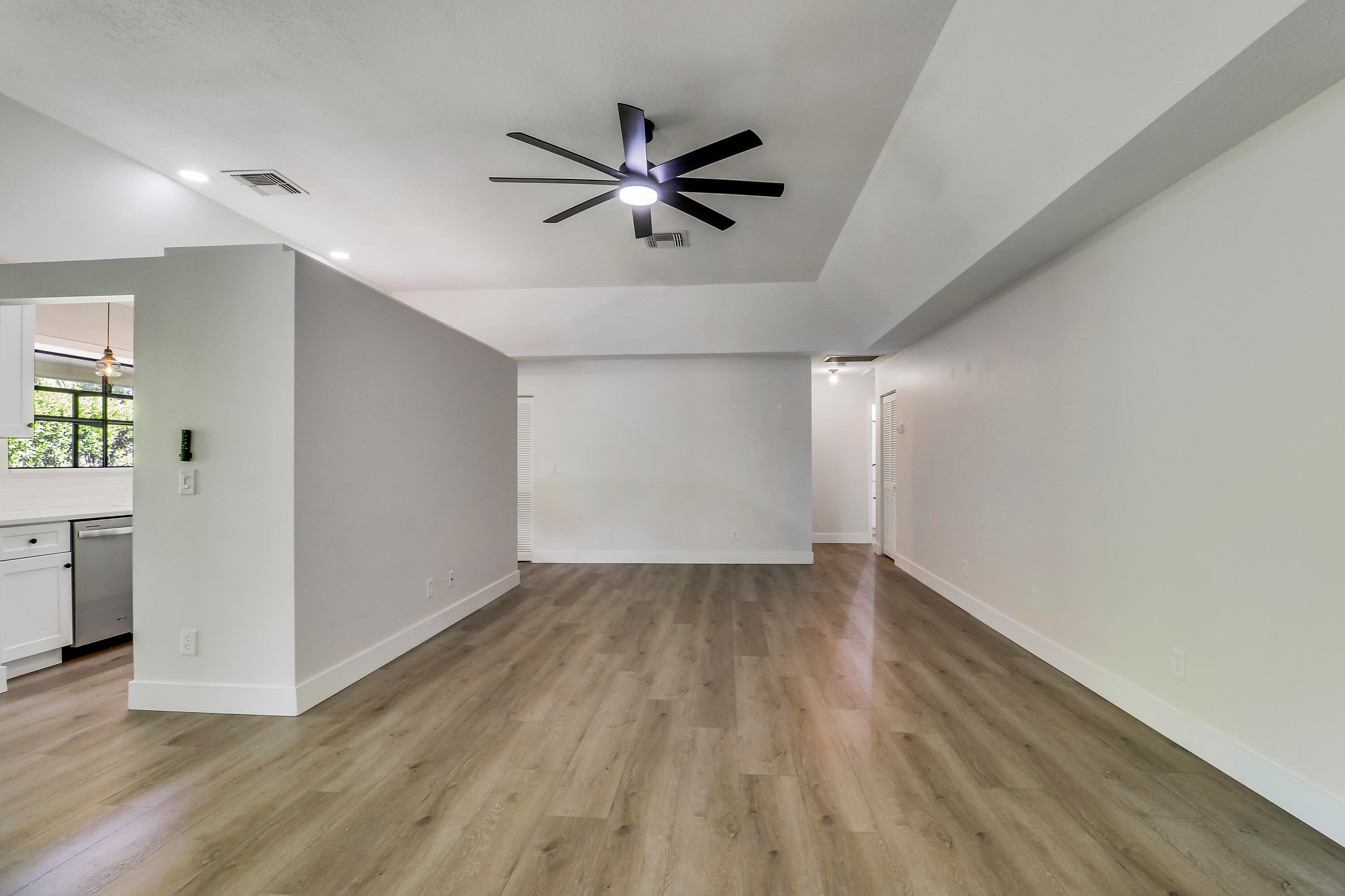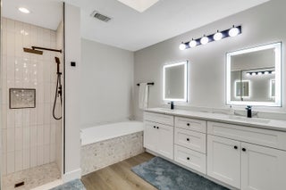 Beautifully renovated villa in the heart of Jupiter! One level with 3 bedrooms and 2 full bathrooms plus enclosed patio makes this home more than 1700 square feet. Luxury vinyl flooring throughout plus smart appliances, sky light brightens the master bath with a large soaking tub and walk-in shower. Spacious master bedroom features lots of closet space plus custom walk-in. This villa backs up to a fenced, wooded area to offer privacy. Close to shopping, beaches and golf. Two assigned parking spaces are right outside the front door. HOA includes basic cable, landscaping, exterior paint and roof maintenance. Storm shutters included and maintained annually. Pets and trucks allowed with restrictions. Schedule a showing today!