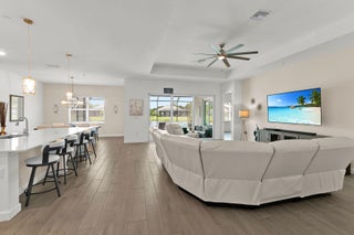 Are you longing for a taste of country life amidst your busy day? Imagine driving past horses and cows on your winding road or taking a stroll to the Caloosahatchee River to catch the sunset. If this sounds appealing, 17190 Serengeti Circle in Alva might be just what you're looking for. As soon as you enter the gated community, you are welcomed by a pair of lions and an elephant, making it clear that Serengeti stands apart from other subdivisions in the area. There are 17 homes, each situated on approximately one acre of land, this community offers a unique living experience. Most homes at Serengeti serve as primary residences.This bright and immaculate luxury smart home features 3 bedrooms, 3 bathrooms, and a denideal for escaping the hustle and bustle while remaining close to conveniences. Babcock Ranch, with its shopping, restaurants, health and wellness facilities, and entertainment options, is just 15 minutes away. The charming and historic vibe of Fort Myers is about 25 minutes away. The W.P. Franklin locks with a boat ramp is only a 5-minute drive, offering easy access for your boating adventures. Upon entering the foyer, you'll be greeted by soaring cathedral ceilings, stainless steel appliances, and ample space for entertaining. The neutral color scheme combined with designer fixtures creates an inviting palette, perfect for making the space your own. The split floor plan ensures privacy and comfort, with two of the bedrooms featuring ensuite bathrooms, while the third bathroom is conveniently located next to the third bedroom. Enjoy the serene setting of 17190 Serengeti's lakefront screened-in lanai, complete with a heated pool and hot tub/spa, perfect for relaxation as you watch fish jump in the pond. Two lounge chairs, shaded by an umbrella resting in the water, offer a delightful spot to unwind. Additionally, a 2-car garage with a separate golf cart garage provides ample storage for your water and fishing toys, bicycles, and motorcycles. You have the option to maintain the landscaping yourself or collaborate with the onsite landscaping crew. Your home's front exposure faces a preserve area, home to resident hawks, owls, and osprey. Serengeti is between Fort Myers and LaBelle. Don't let this opportunity slip away if this sounds like your ideal Southwest Florida lifestyle!