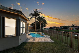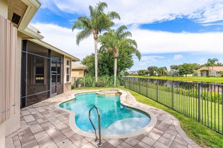 Beautiful 4 Bedroom 3.5 bath home located in Valencia Pointe . Large open floor plan with primary bedroom overlooking the pool. Office with built in shelves and storage. Recently repainted neutral color ready for immediate move in. This is a very Active 55+ community. Clubhouse recently renovated. HOA requires 6 month HOA fee capital contribution of ($4710) and a $450 annual usage at cafe.