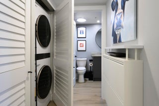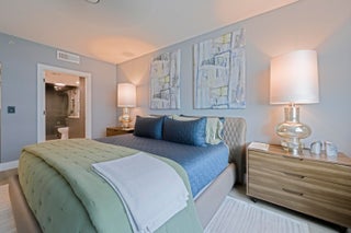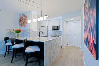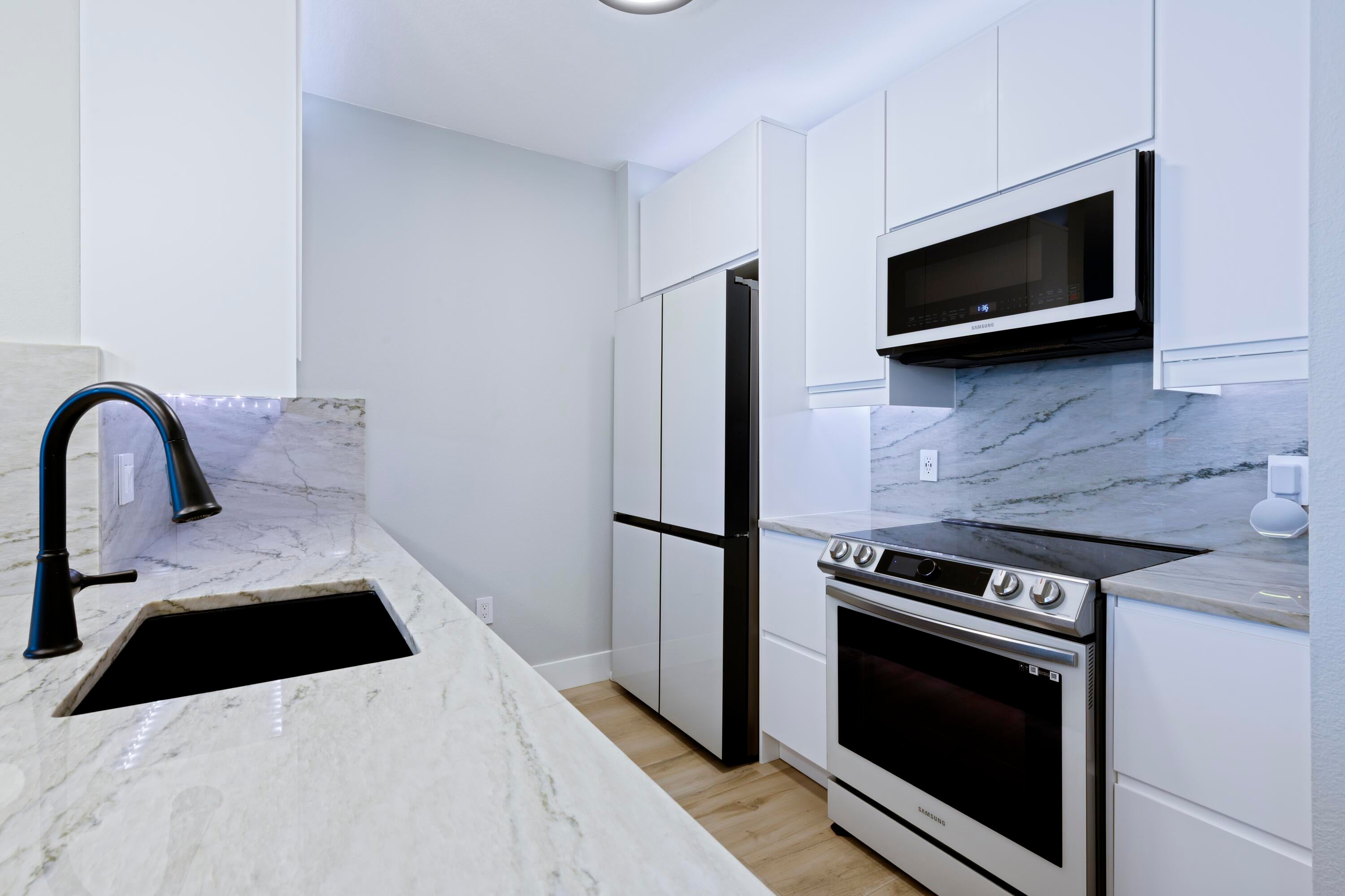 Beautiful, completely renovated condo with ocean and intracoastal views. Top to bottom renovation in late 2023. As soon as you enter this condo you will notice the large 60 inch porcelain wood plank tile floors. You will be welcomed by a modern sleek kitchen with gorgeous Quartzite counters and large waterfall edge that sets the tone for the rest of the home. The kitchen has modern white cabinets, smart home integrated Samsung appliances, plus cabinet and floorboard lighting. The high end renovation continues into the Primary bathroom with quartzite counters and custom vanity with additional cabinetry. The spa-like shower has floor to ceiling custom tile work, frameless glass doors, and a choice of shower heads. No detail was left untouched,even the primary bedroom walk-in closet was completed with custom built-ins from Beyond Closets. This condo offers full size stackable LG washer and dryer, 2023 A/C with ani-microbial light, and 2023 hot water heater. All lights, appliances, speakers, etc. are able to be controlled through a smart home app if you choose. The amenities of the building are not to be missed. A beautifully landscaped pool, spa, and grilling area give this condo the true south Florida living vibe. Stay in shape with a full size gym, large community room for hosting events, a movie room, billiards room, and conference room for your business needs. This building is in great condition with no assessments, strong financial reserves, up to date with all insurances and mandatory inspections. Located minutes away from the best Boynton Beach has to offer. You can walk to water front restaurants for a relaxed dinner, and at your finger tips is fine dining, shopping, and only minutes to the beach. Easy access to I-95, downtown Delray, downtown West Palm Beach, and PBIA.