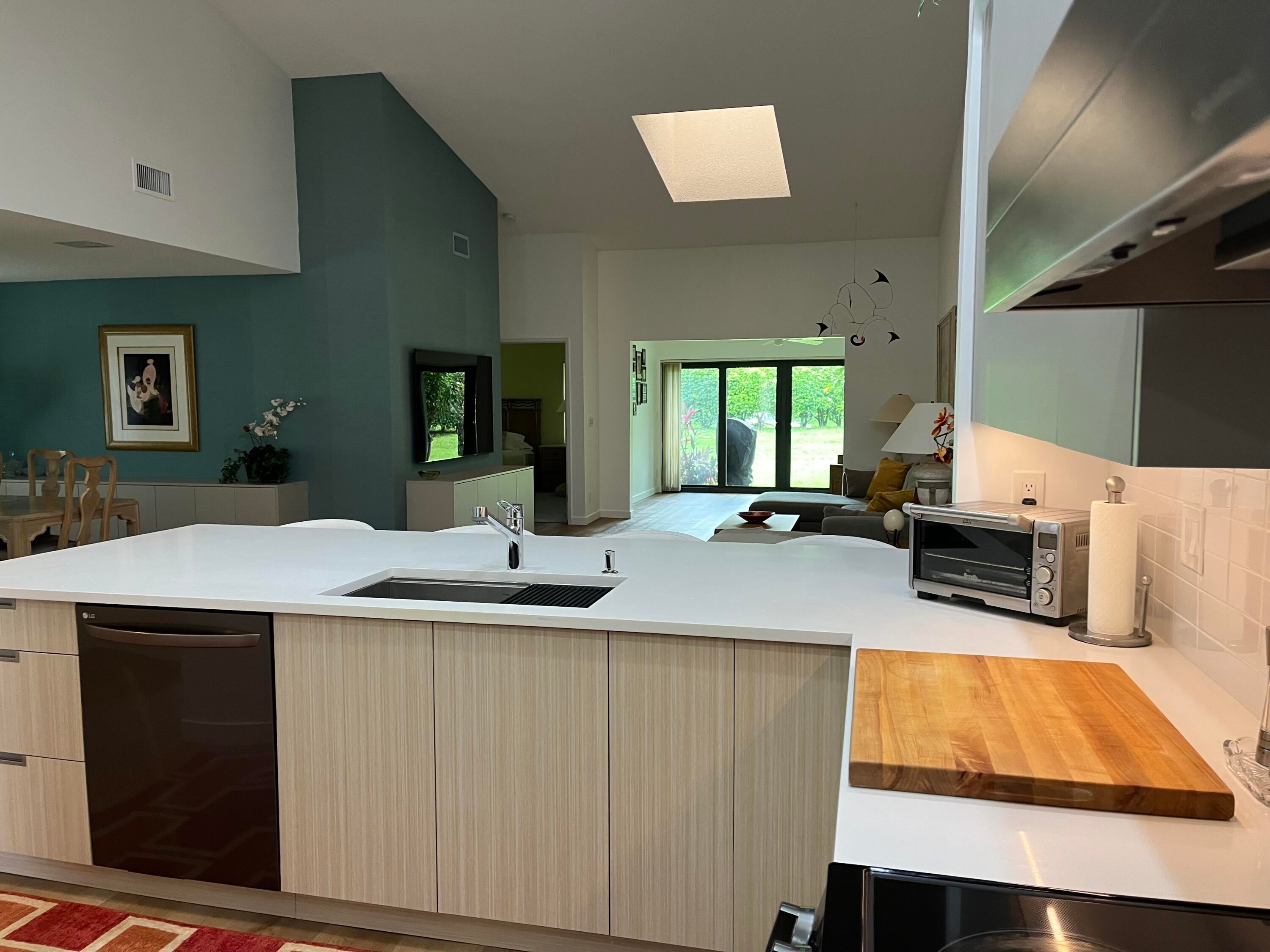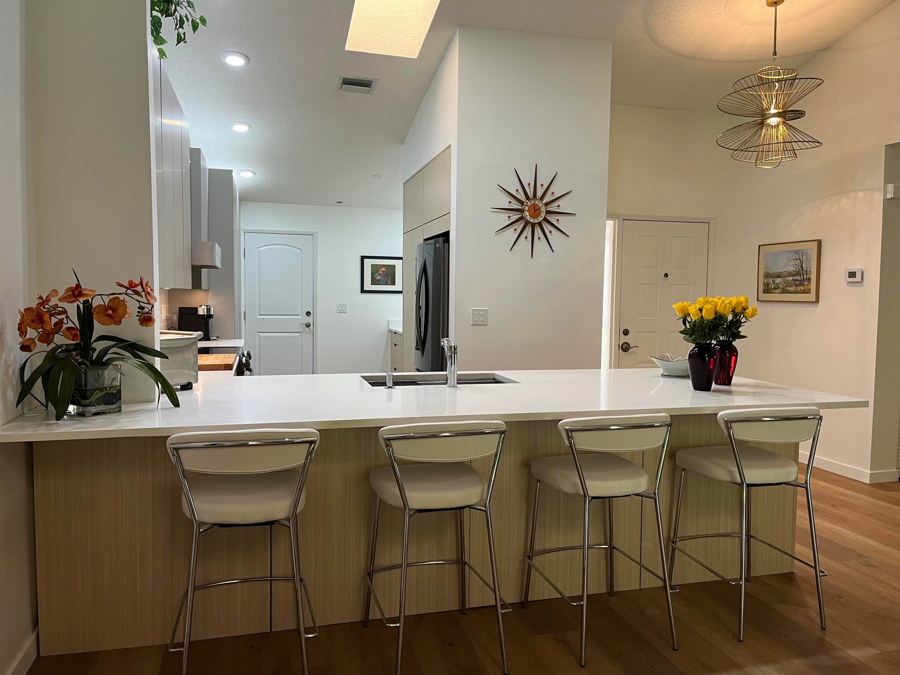 Introducing a spectacular, completely renovated Regal Townhome. This home is a masterpiece of mid-century modern design coupled with elegance and comfort, and must be experienced to appreciate the openness and quality of all the finishes. The property features commercial grade vinyl flooring, impact windows, 2 skylights, new tile, new bdrm carpeting, statement fixtures, and custom cabinets and countertops. Located in a desirable 55+ neighborhood with new pickleball courts, private club house, large pool, workout room, library and games room. Don't miss the opportunity to make this exquisite residence your own!