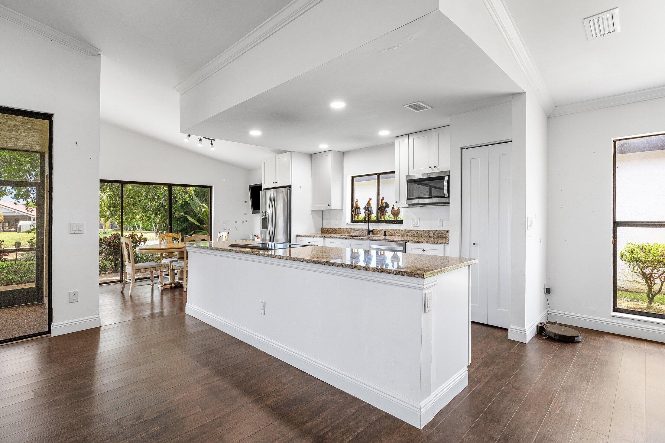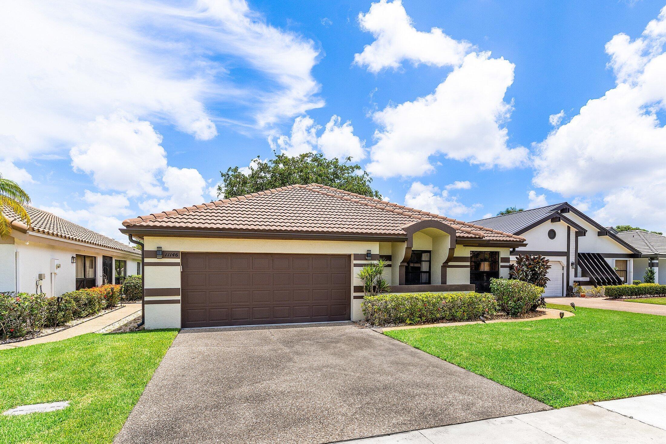Located in the prestigious Boca Woods Country Club, this updated 3-bedroom, 2-bath home features an open, split floor plan and is perfectly situated on a quiet cul-de-sac. Enjoy exceptional water views from the comfort of your screened-in patio--ideal for relaxing or entertaining.Boca Woods is an all age Country Club Community which offers resort style amenities, including two championship golf courses, Har Tru tennis courts, pickleball courts, state of the art fitness center, spa, game room, fully renovated clubhouse with fine dining and much more! Mandatory Country Club membership required $120,000.