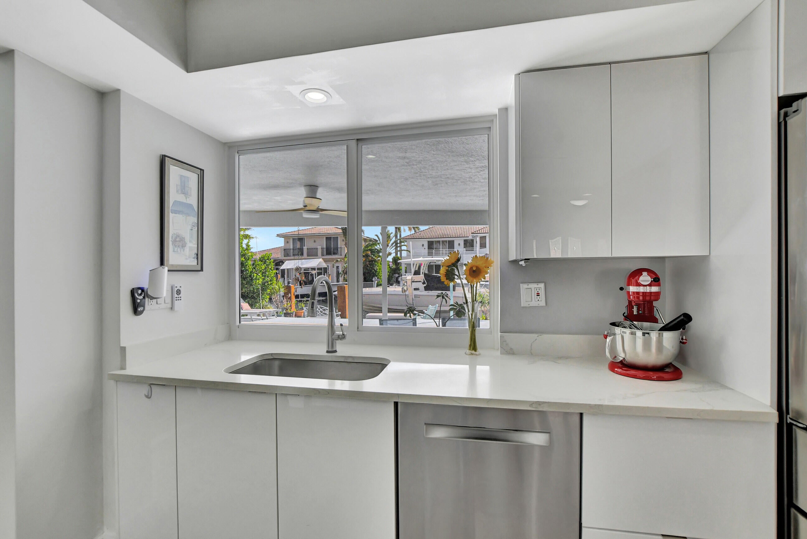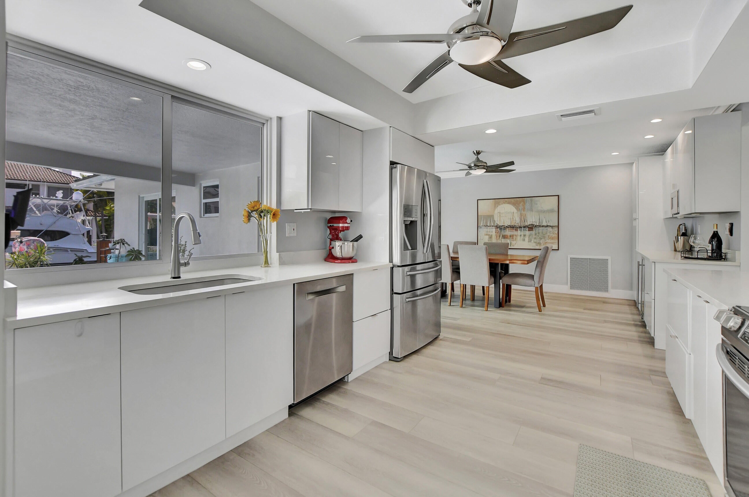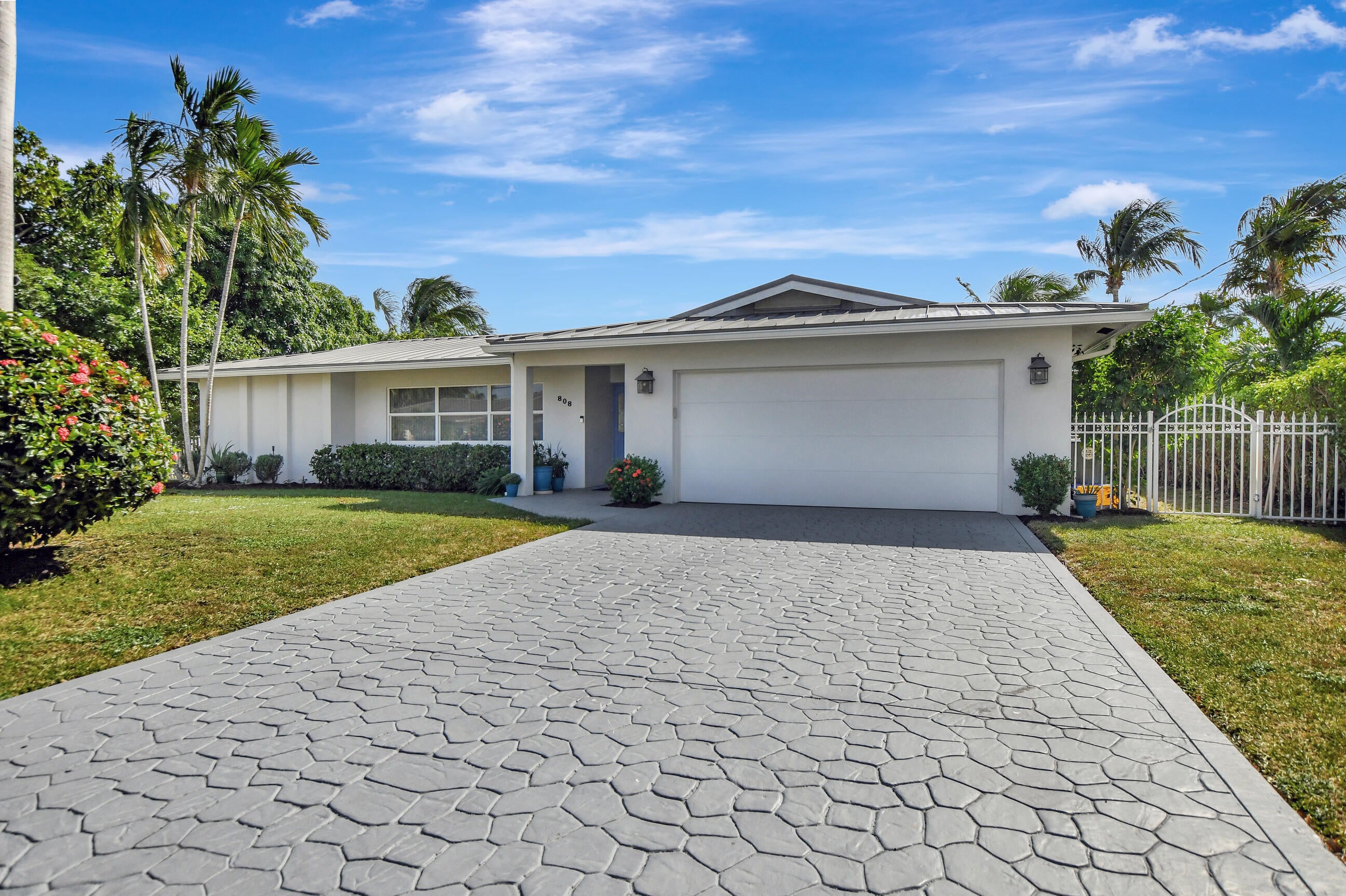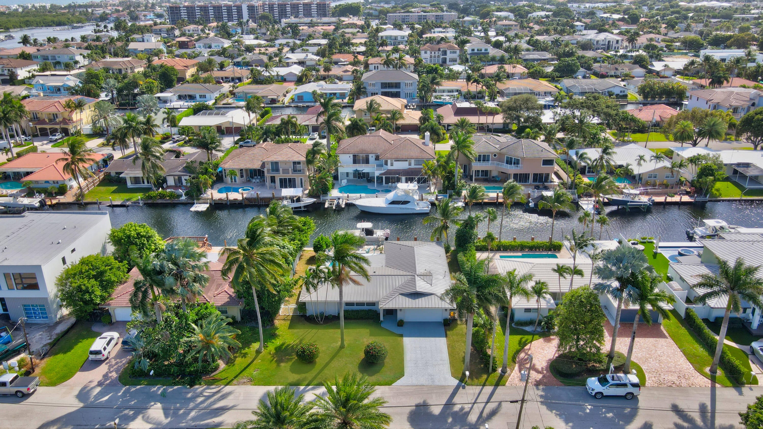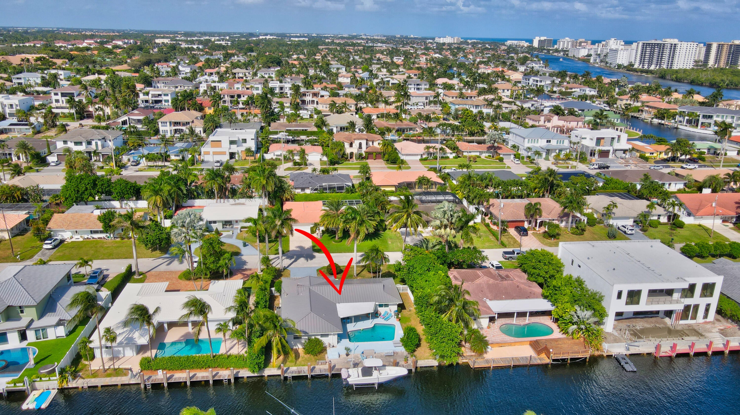 Embrace South Florida luxury in this remodeled ranch home with 85' of deepwater frontage, 60' dock, 13,000-lb boat lift, shore power, and no-fixed-bridge ocean access. Southern exposure delivers SE breezes and vibrant light. The open-concept layout boasts a sleek kitchen with a grand island, a dining area with a chic built-in bar, and a primary suite with serene water views, a spa-like bathroom, soaking tub, and shower. The split-bedroom design offers privacy. Move-in ready with CBS construction, 2023 metal roof, impact windows, 2022 AC, and appliances. Nestled in non-HOA Bel Marra, steps from Boca Raton and Delray's Atlantic Avenue, where lots fetch $2-2.5M. Your dream waterfront haven awaits!