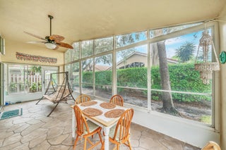 Welcome to this beautifully maintained 1 story residence nestled in one of Boynton Beach's most desirable and active communities. This spacious single-family home offers a well-designed floor plan with bright, open living areas, a split-bedroom layout for privacy, and a tranquil screened-in patio overlooking a private garden setting. Enjoy a generous primary suite with walk-in closets and a well-appointed en-suite bathroom, as well as a guest bedroom and a versatile den or third bedroom. The kitchen features ample cabinetry, counter space, and a cozy breakfast nook. Additional features include a two-car garage, full-size laundry room, and accordion hurricane shutters for peace of mind. Located in a secure, gated communityoffering resort-style amenities including a clubhouse, pool, tennis, pickleball, fitness center, theater, walking trails, and a calendar full of social activities. Conveniently situated near dining, shopping, medical facilities, and just a short drive to the beach and vibrant Downtown Delray. Don't miss the opportunity to enjoy the South Florida lifestyle in a home that offers both comfort and community. Schedule your private showing today! AC just a few months old!