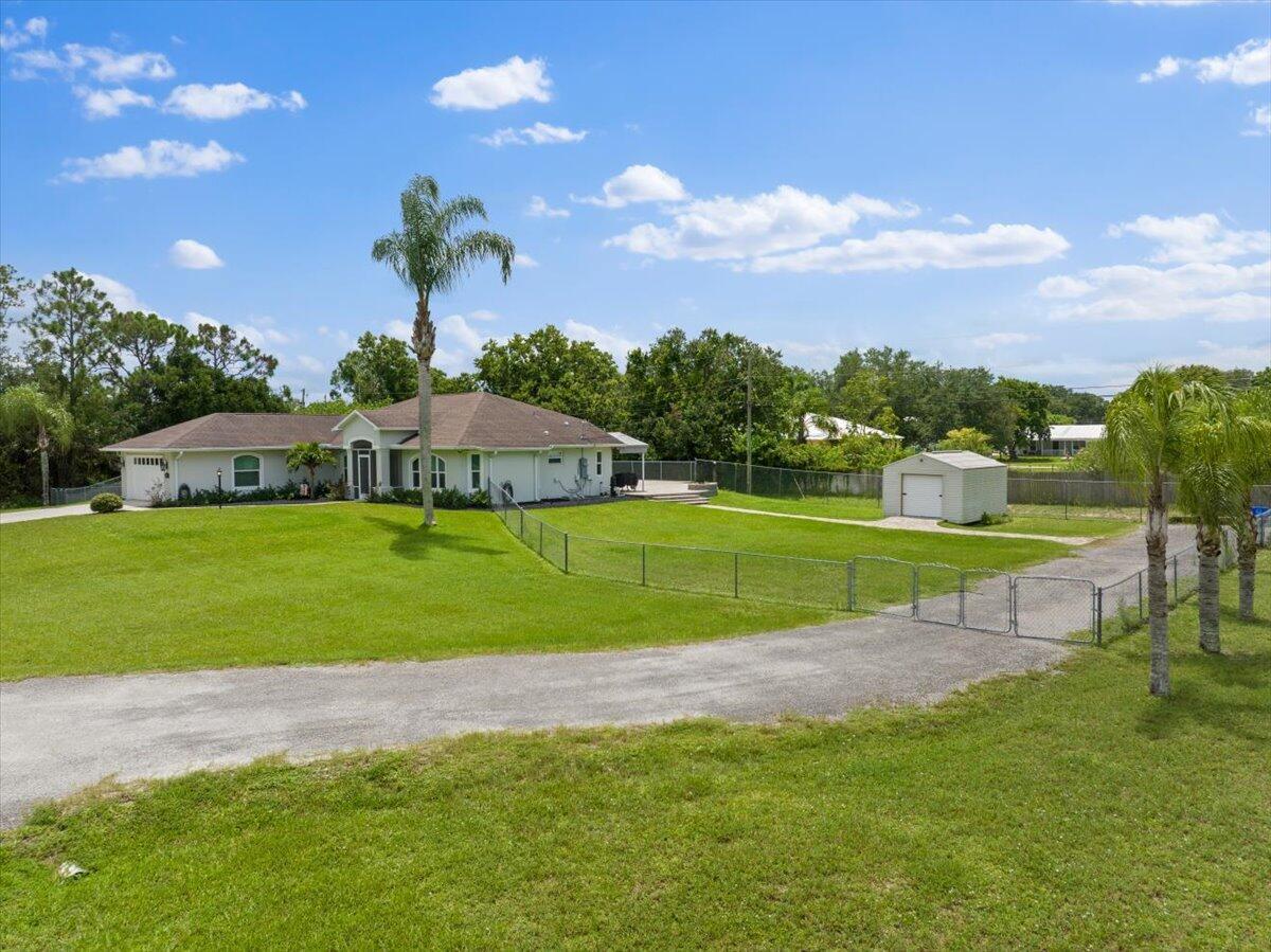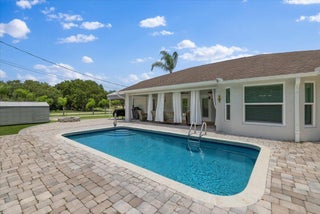 Beautifully Updated Pool Home on Double Lot with Room for All Your Toys! The updated kitchen features solid wood cabinetry, quartz countertops, and stainless appliances. New hurricane impact windows and doors, New A/C (2021), New water heater (2025), Newer roof (2018), New 96-ft well for the home (with softener system) and irrigation. New flooring in the main living areas and carpet in the bedrooms. The fully fenced backyard has a pool with paver patio that leads to the second driveway with water and electric hookup which is perfect for boat or RV, plus a 12x17 shed with a roll-down door. This home is a must see! It has so many upgrades and is move in ready!