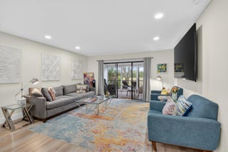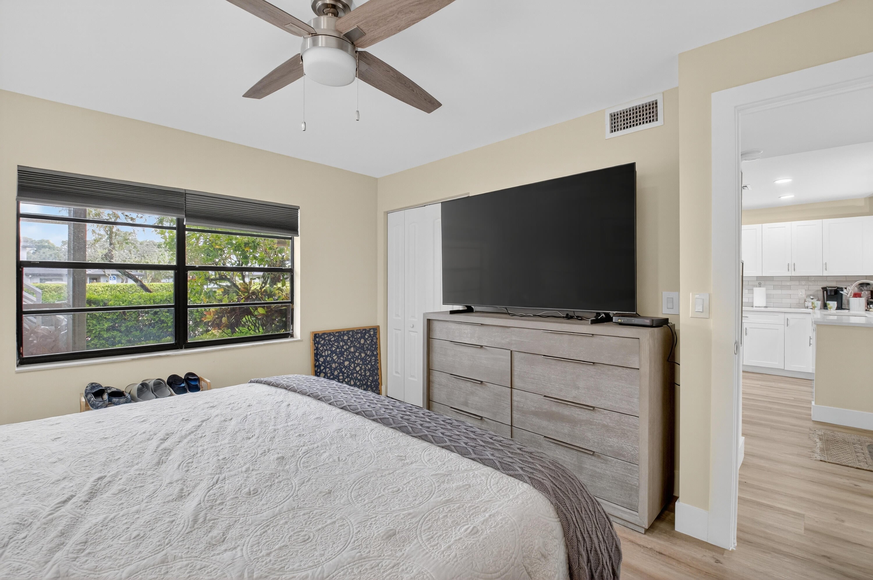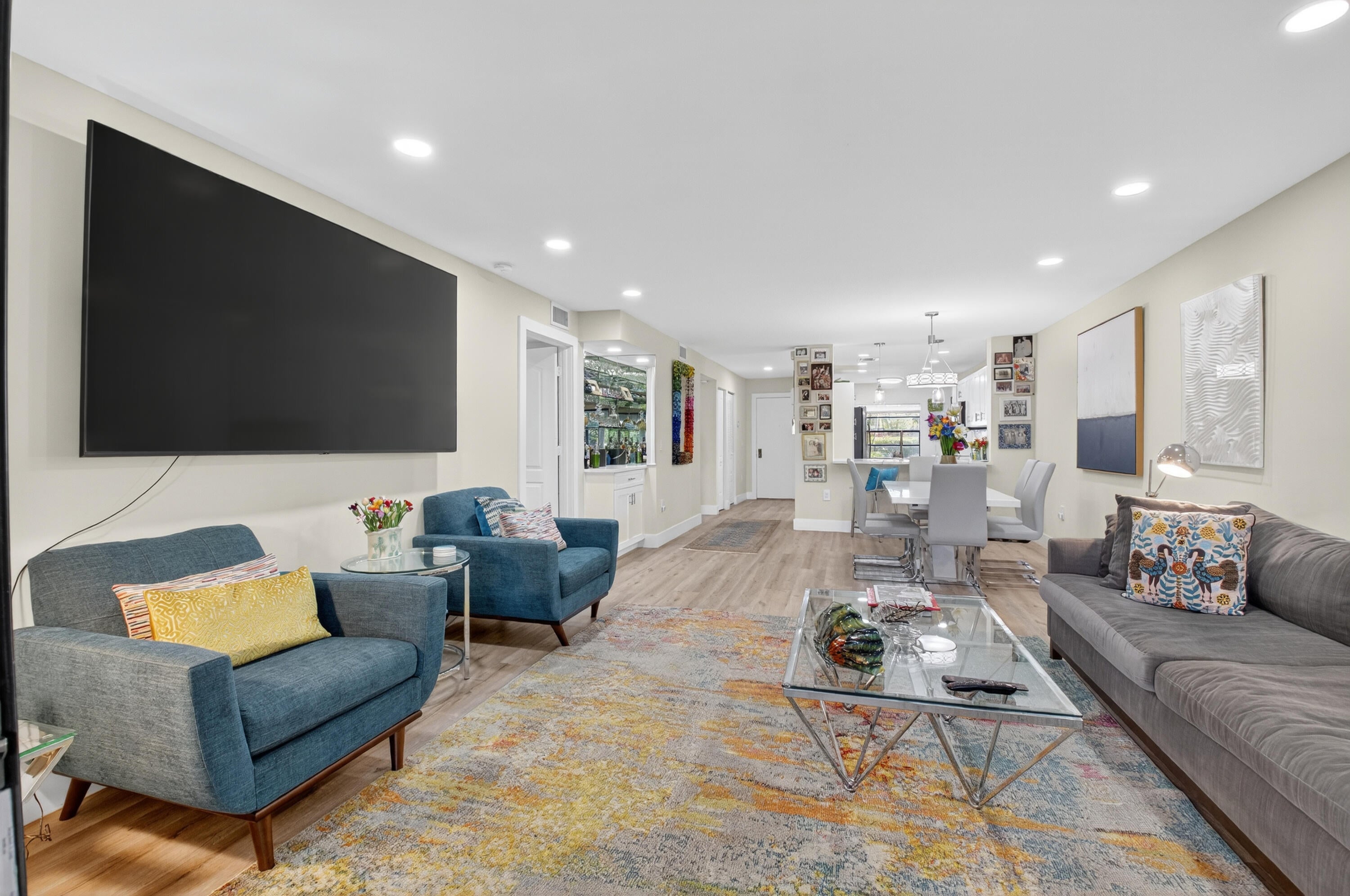Discover this inviting TOTALLY RENOVATED 2-bedroom, 2-bath condo located in the desirable Hunters Run Country Club. Open Floor Plan, Quartz Counters, Stainless Appliances. LED Lighting Throughout. This light-filled residence offers an open living and dining area, a spacious primary suite, and a screened-in balcony with serene golf and lake views. Custom Pavered Patio For Outdoor Entertaining. Perfect for year-round living or a seasonal retreat, this home provides access to world-class amenities including three championship golf courses, tennis and pickleball courts, resort-style pools, fitness center, spa, and multiple dining venues. Experience the best of South Florida country club living in this beautifully maintained community.