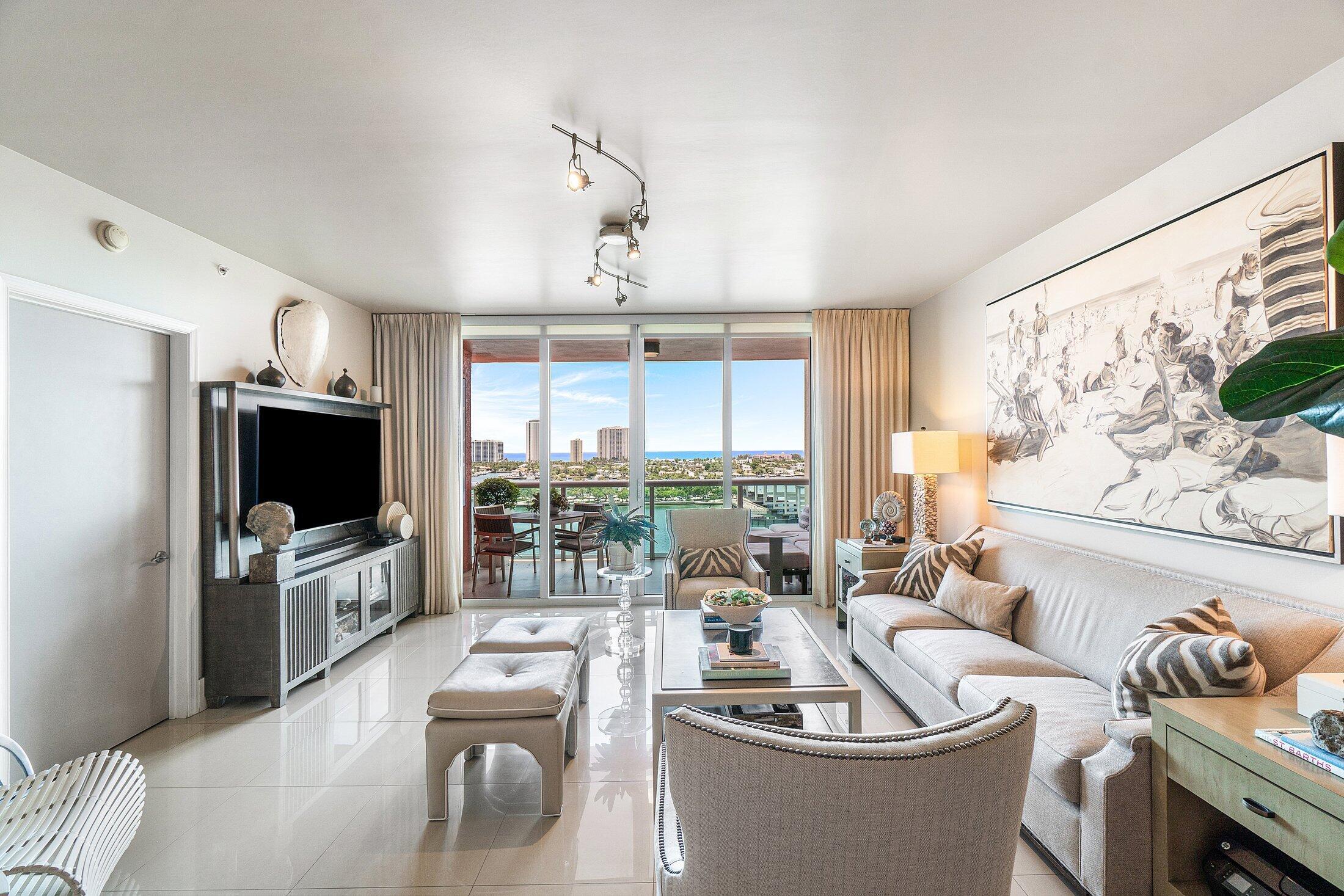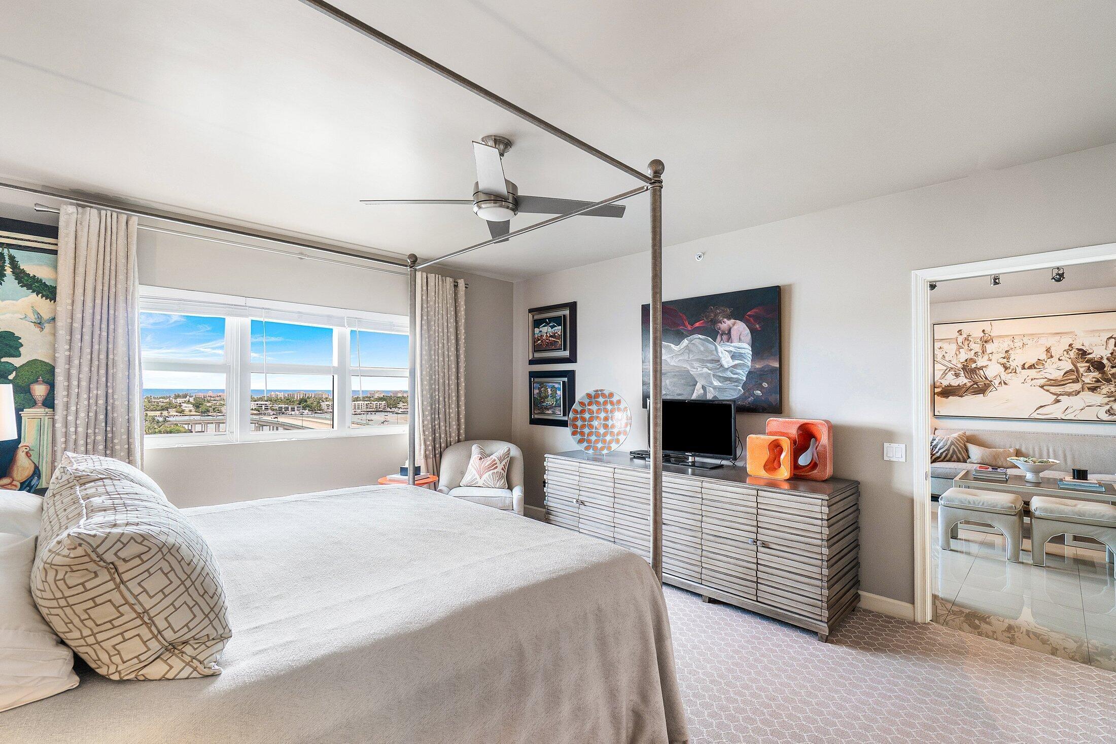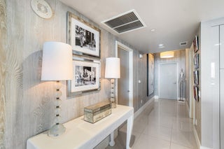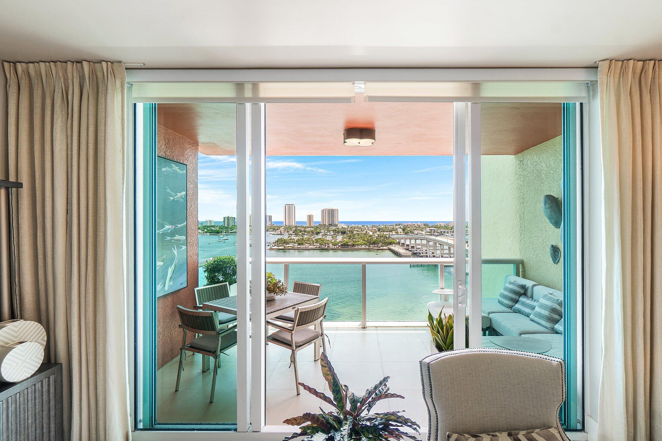Amazing panoramic views from 14th floor, direct east facing Intracoastal & ocean view! Extensive remodel w/ high end finishes ... imported wallpaper, quartz kitchen, porcelain tile floors throughout living areas, fabulous redesigned primary bath w custom linen closet. Split floor plan, 2BR, 2.5BA, oversized showers, wool carpet in bedrooms, California closets, stacked new full size LG washer & dryer. Assigned parking, temperature controlled storage, 24/7 manned gate, valet, tennis, pickleball, Bocce, waterfront walking path w/gazebo, rooftop oasis w/pool, spa, BBQ areas, clubhouse, billiard room & fitness center. Adjacent marina w/dry docks, nearby ocean access, no fixed bridges! Minutes to the Beach, Airport, Restaurants & Shop