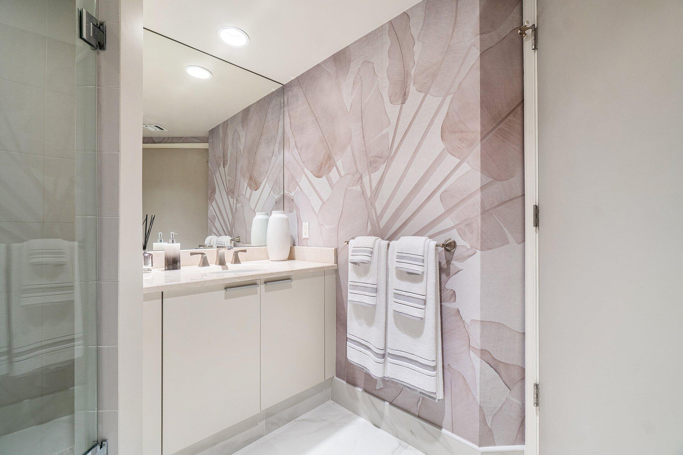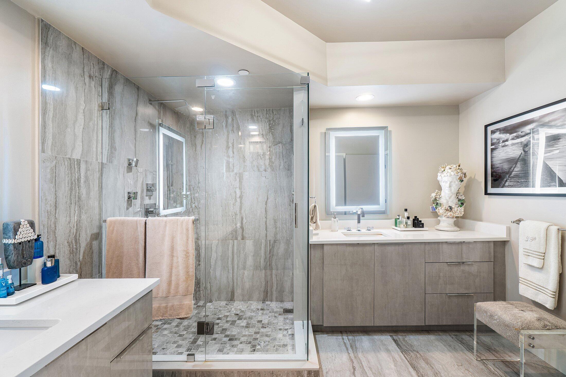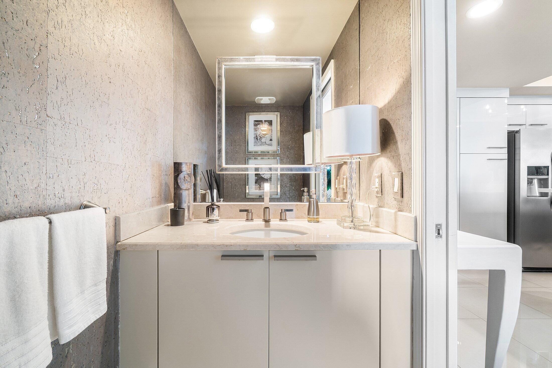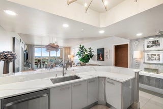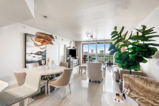 Amazing panoramic views from 14th floor, direct east facing Intracoastal & ocean view! Extensive remodel w/ high end finishes ... imported wallpaper, quartz kitchen, porcelain tile floors throughout living areas, fabulous redesigned primary bath w custom linen closet. Split floor plan, 2BR, 2.5BA, oversized showers, wool carpet in bedrooms, California closets, stacked new full size LG washer & dryer. Assigned parking, temperature controlled storage, 24/7 manned gate, valet, tennis, pickleball, Bocce, waterfront walking path w/gazebo, rooftop oasis w/pool, spa, BBQ areas, clubhouse, billiard room & fitness center. Adjacent marina w/dry docks, nearby ocean access, no fixed bridges! Minutes to the Beach, Airport, Restaurants & Shop
