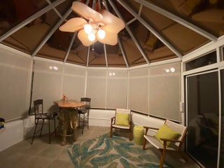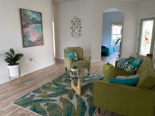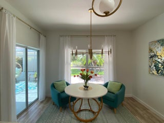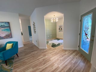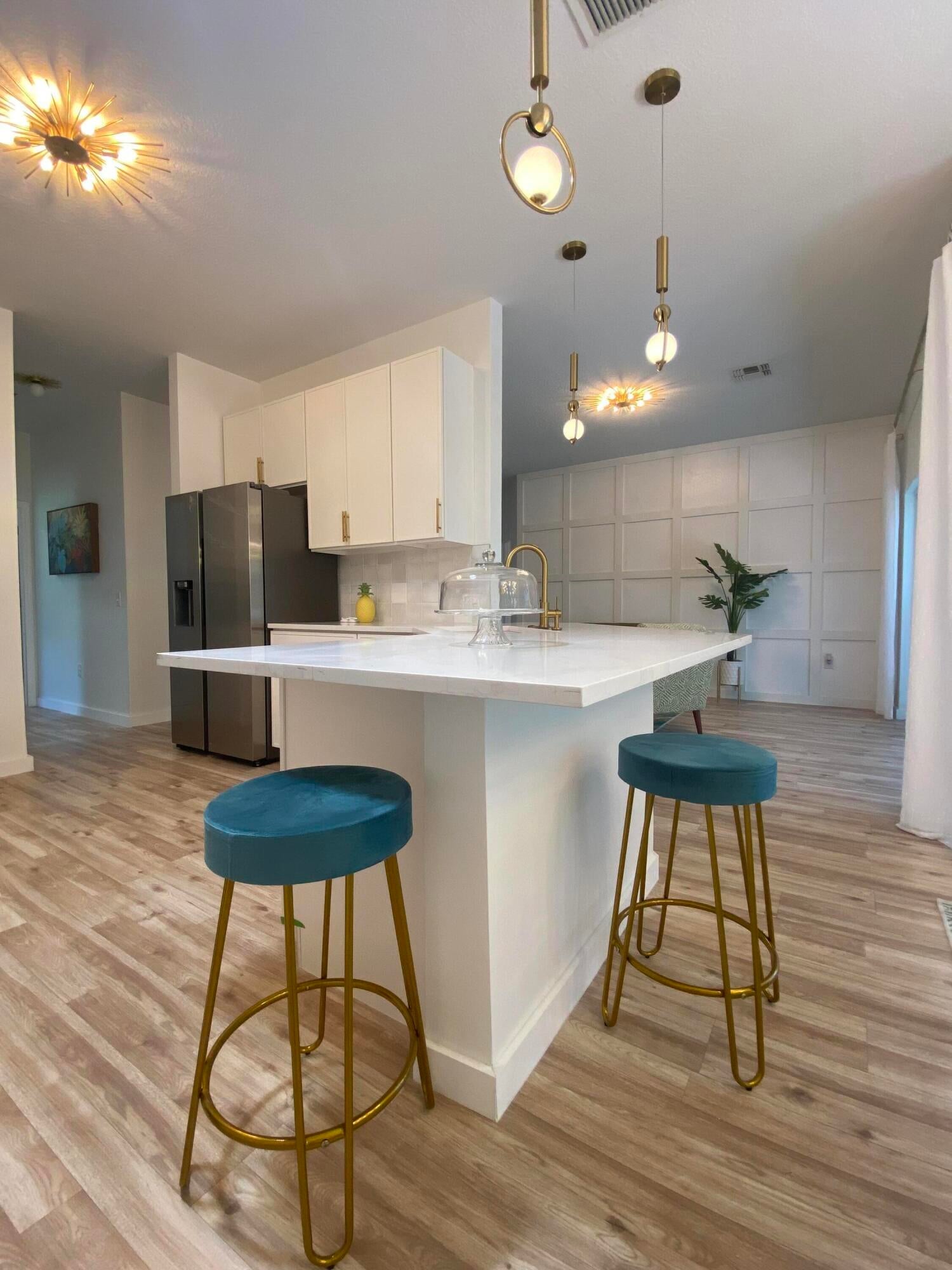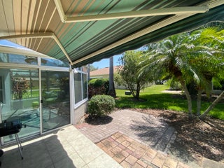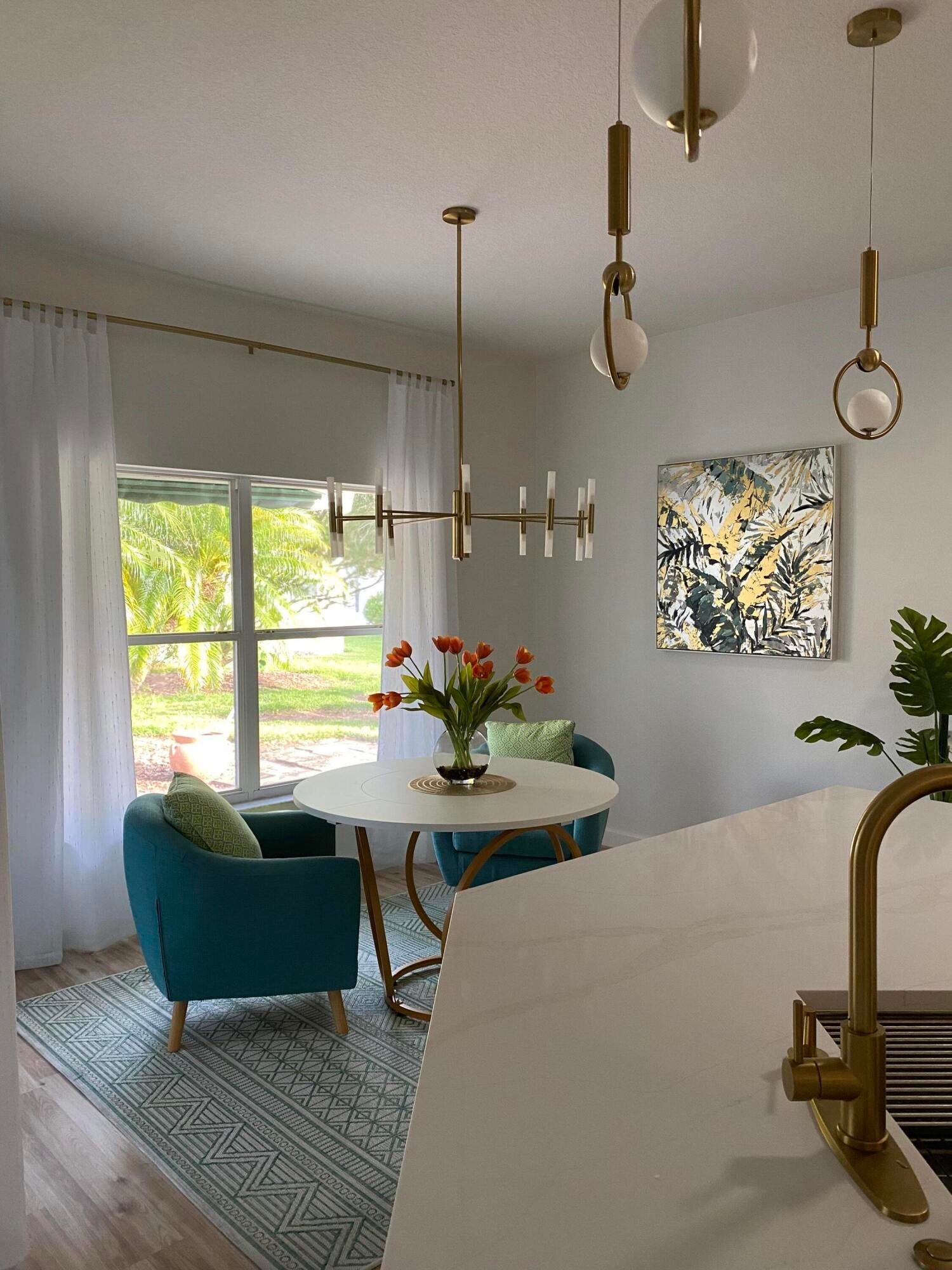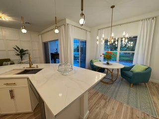 100% Designer Remodel! New flooring, cabinets, lighting, tile, paint, trim, kitchen & baths! HUGE corner lot with the nicest neighbors.Water views & moon views from the glass conservatory overlooking a 122' garden. Designer kitchen has new floating shelves & cabinets with quartz countertops & NEW appliances. The 6 person seating peninsula will be the center of this entertainer's dream home. Custom tile work. Feature walls in the den, living room and master bedroom. New garage epoxy floor.Butcher block laundry folding counter. Phantom screen on the stain glass front door & retractable canopy over the back patio. Enjoy the restaurants, gym, active life style in the golf course & nature community of gated Solivita!