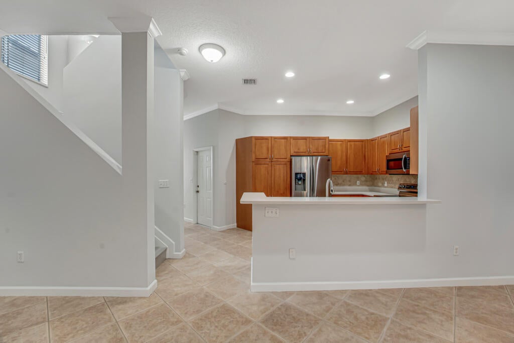 Welcome to your dream home in the sought-after Treasure Cove Yacht Club! This beautifully updated residence features fresh paint, new laminate floors, perfectly situated near the intercoastal with ocean access, a private boat dock. No membership making this boating community even more appealing. The kitchen is a chef's delight, showcasing custom wood cabinets, brand new quartz countertops, new stainless steel appliances. Enjoy peace of mind with a 2019 AC and water heater. Unwind on the lovely rear deck, crafted from composite material in 2022. The elegant master suite boasts brand new laminate flooring, spacious walk-in closet, marble countertops, soaking tub, walk-in shower, dual vanities, and a new bidet. A versatile loft area serves as an office/easily converted to 4th bedroom*27 foot boat dock with ocean access *No bridges to the ocean *Walk to the clubhouse and community pool *2019 AC *2022 composite back deck *Loft can be converted to a 4th bedroom *No Membership required *New roof