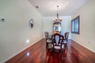 Gorgeous 5 bed 4 bath, 3 car garage Pool home with stunning Lake Views in the desired gated community of Bella Terra. Downstairs features hardwood floors, a formal living room, formal dining room, family room, full bathroom and open concept kitchen with an island and breakfast nook. The Kitchen features corian countertops, stainless steel appliances, large wood cabinets, tile floors. Upstairs features hardwood floors, 5 bedrooms and 3 full bathrooms. The large Master Bath has double sinks, large tub with jets, separate shower with his and hers shower heads and much more! Large Master Bedroom has walk in closets, tray ceiling and beautiful Lake view From the family room, step outside the double sliding glass doors and enjoy a tropical oasis. This house has it all a MUST SEE!