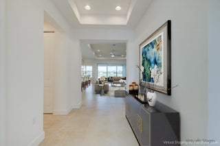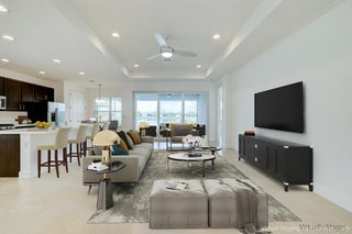 Experience resort-style living in the esteemed Valencia Grove at Riverland, where luxury and comfort are woven into every detail of this exceptional lakefront Palazzo model. Built in 2021 on a coveted oversized lakefront lot, this home invites you to embrace an active 55+ lifestyle in a vibrant, amenity-rich community. Step inside to discover a thoughtfully designed floor plan, offering three spacious bedrooms, two and a half baths, and a versatile den, perfect as a fourth bedroom or home office. Porcelain flooring extends throughout. The heart of the home is the kitchen/dining room and breakfast area, open concept floor plan. Kitchen, with stainless steel appliances, elegant QUARTZ countertops, wood cabinetry, and a generous pantry, making it an entertainer's dream.From the moment you step through the glass front door, you're greeted by expansive lake views that pour in through large impact windows and sliding doorscreating a bright, inviting atmosphere that feels like home. Step outside to your covered lanai, the perfect place to enjoy morning coffee or evening sunsets. With one of the largest backyard spaces in the community, there's ample room to customize a resort-style pool or entertainment area with complete privacy and tranquil views. Located in the 55+ Valencia Grove community, residents enjoy access to world-class amenities, including a state-of-the-art clubhouse, fitness center, resort-style pools, tennis and pickleball courts, bocce courts, walking trails, and so much more. Don't miss this rare opportunity to own one of the most desirable lots in Valencia Grove. Whether you're relaxing by the lake, entertaining guests, or taking advantage of the vibrant lifestyle offerings, this home has it all.