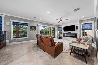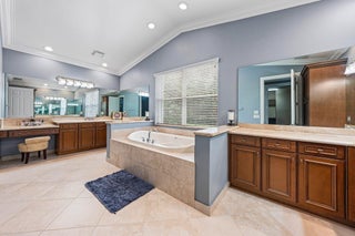 Gorgeous 6 Bedroom Estate with Resort Style Backyard in Canyon Springs. This Home Sits on a Culdesac and Includes Accordion Hurricane Shutters for the Whole Home. Entering You will be Impressed by the Soaring Ceilings and Impressive Natural Light. There is Stunning Millwork and Moldings Throughout. The Gorgeous Kitchen Boasts a Huge Center Island, Rich Wood Cabinetry and Stainless Steel Appliances Including a Double Oven. The Family Room has a Custom Stone Wall with Electric Fireplace. Out Back is Your Dream Backyard with a Huge Screened Patio and Travertine Pavers Overlooking a Heated Pool and Spa with Sunshelf. The Yard has Room to Roam and Even Includes a Custom Putting Green for Golf Enthusiasts. Heading Upstairs the Dramatic Double Entry Staircase Leads to the Huge Primary Suite.The Bedroom is Enormous and has a Sitting Room/Home Office Area as Well. The Walk In Closet is a Fashion Lovers Dream! The Elegant Primary Bath Boasts Marble Counters, Wood Cabinetry and an Oversized Frameless Shower with Bench. All of the Guest Rooms are Spacious and there are 2 Rooms that Share a Jack & Jill Setup for the Bathroom. The Home has Modern Paint and Fixtures Throughout as Well. Canyon Springs is an Incredible Guard Gated Community with a State of the Art Clubhouse. All Within Walking Distance to "A" Rated Schools, a New 52 Acre Park, a Brand New Library & Shopping Center. Come See what Life in The Canyons is All About!