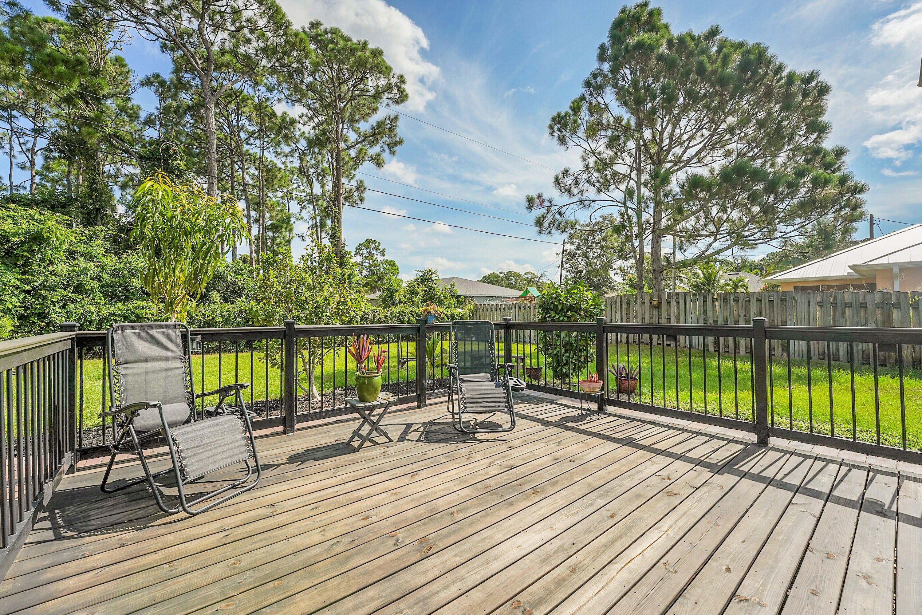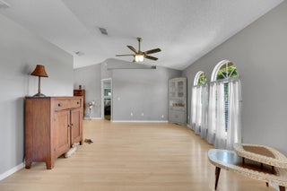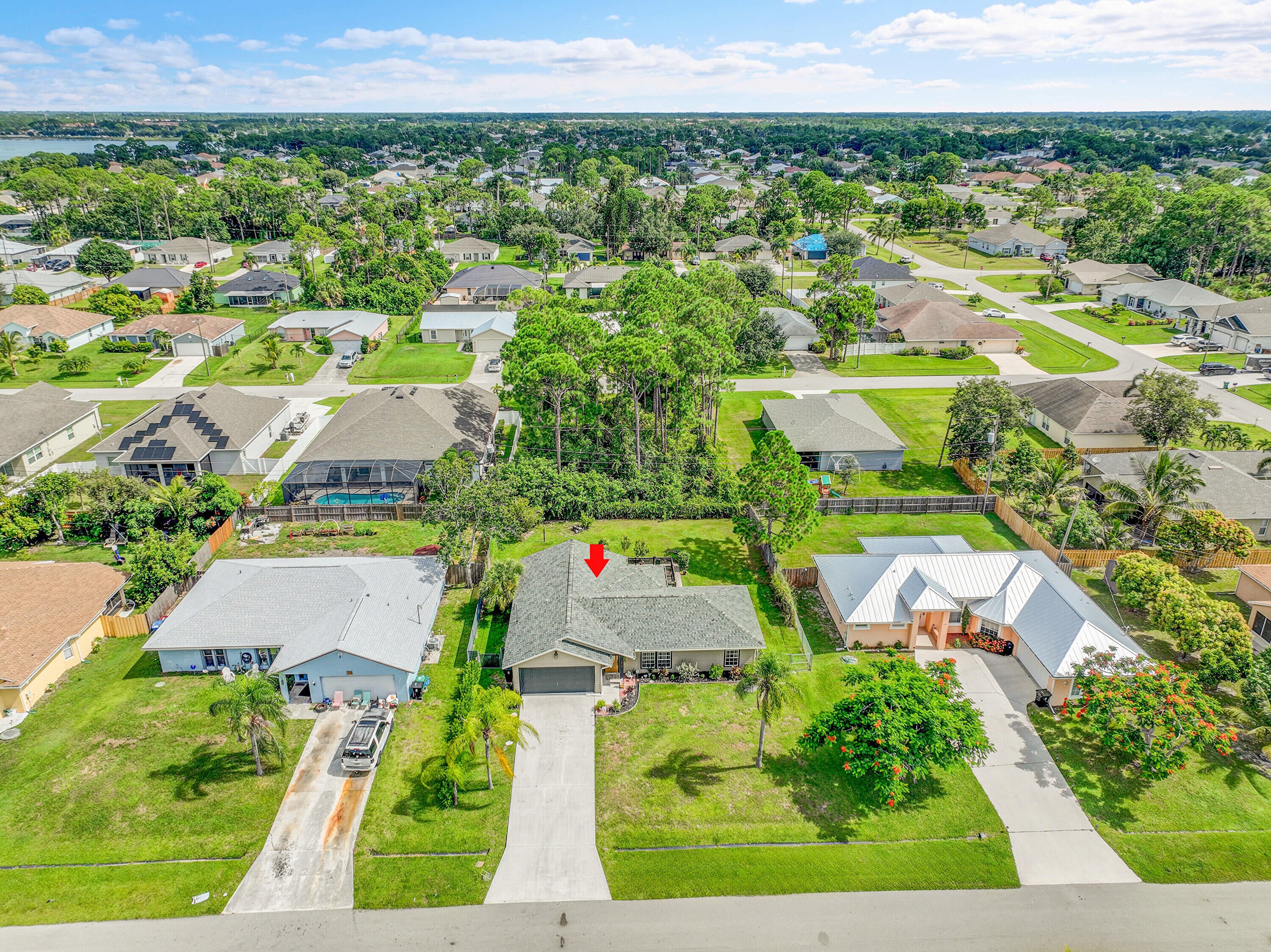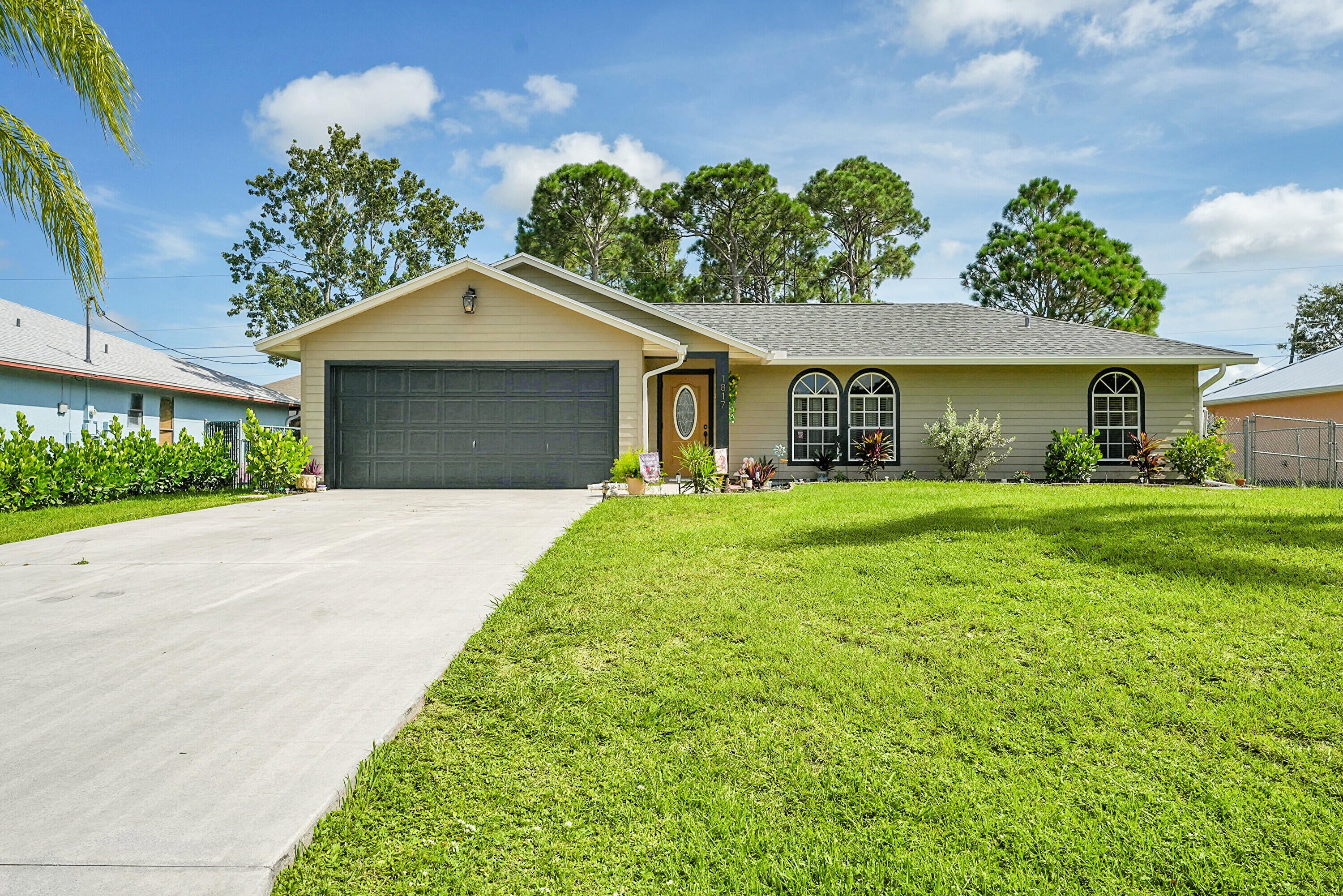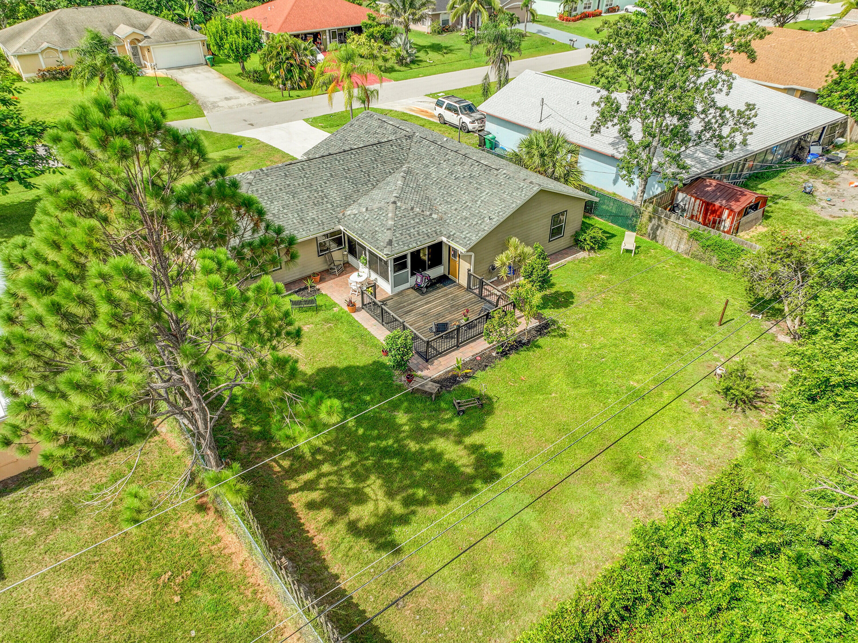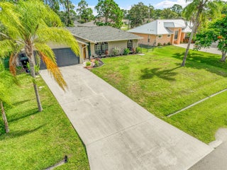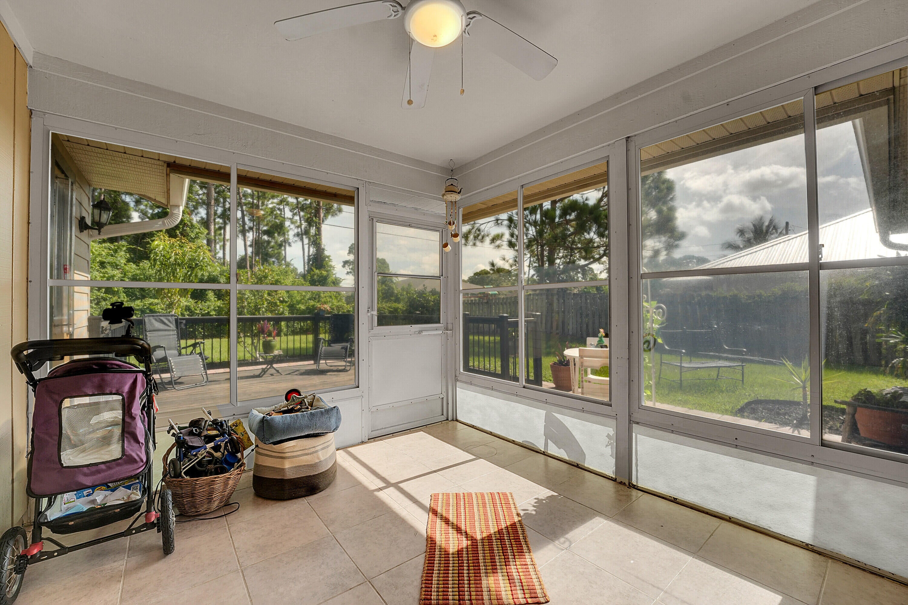 Nestled in the desirable Rosser Reserve area of Port St. Lucie, this beautifully upgraded 3-bedroom, 2-bath home blends modern comfort with everyday convenience located just minutes from I-95, shopping, schools, parks, and the thriving Tradition area. From the moment you arrive, the curb appeal speaks for itself. A freshly painted exterior trim adds a crisp, polished look, while mature landscaping, lush green lawn, and a full hedge of vibrant Clusias offer privacy and a sense of tropical serenity. Inside, you're welcomed by fresh interior paint and a bright, open layout that flows seamlessly into a thoughtfully updated kitchen. A stacked stone backsplash, Corian countertops, and newer stainless steel appliances make this kitchen both stylish and functional.Vinyl plank flooring adds warmth and durability to the bedrooms, each featuring its own walk-in closet for plenty of storage. The primary suite offers a peaceful retreat with a large walk-in closet and en-suite bathroom. This split floor plan includes a dedicated laundry room and a refreshed cabana bathroom for you to step outside into your very own Florida oasis. A fully enclosed Florida room with brand new screens and vinyl windows opens up to a custom wood deck framed by elegant paver accents. Whether you're hosting a BBQ or enjoying quiet evenings under the stars, this outdoor space was made to be enjoyed. Peace of mind comes easy here with a 2023 roof, durable fiber cement siding (Hardie plank/board), 2024 water heater, and over $3,000 in HVAC upgrades, including a new evaporator coil and blower motor. Plus, the 30 amp Interlock generator hookup ensures the entire home stays powered during outages. Even the little things are done for you like the new side garage door, new exterior window screens, and fresh landscaping touches throughout. Set in a quiet, established neighborhood with no HOA and surrounded by well-kept homes, this property offers the perfect mix of privacy, location, and livability. This is more than a home- it's a lifestyle upgrade waiting for you in the heart of Port St. Lucie.