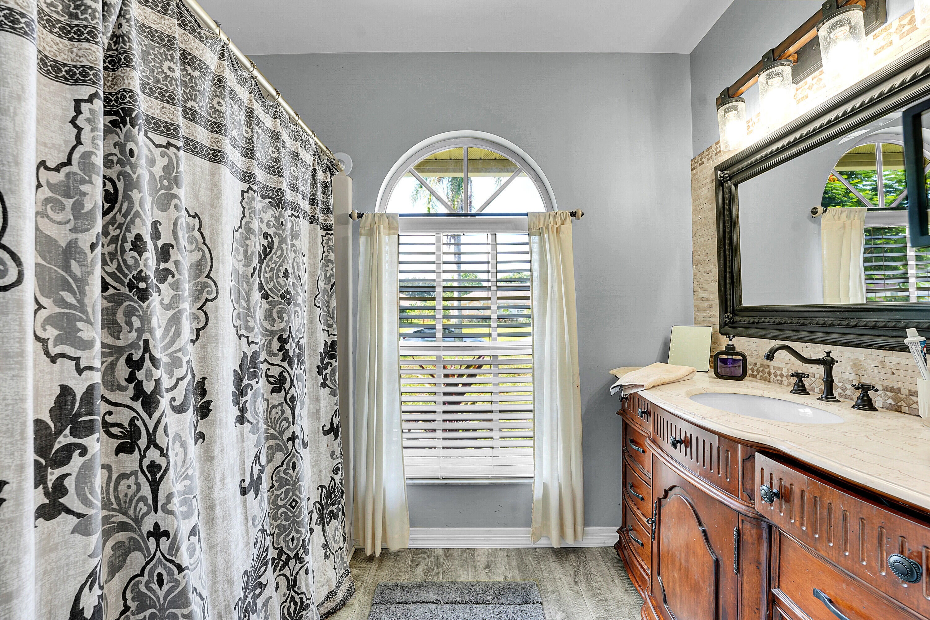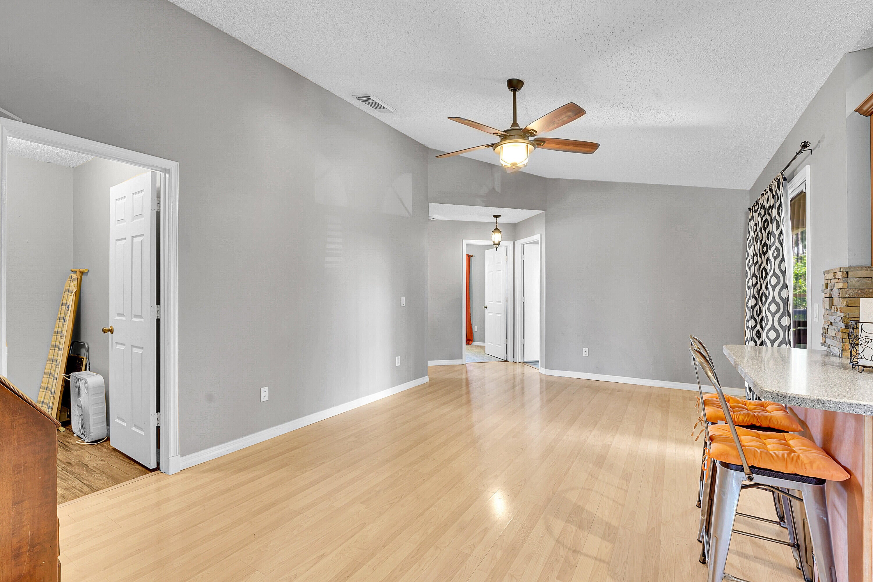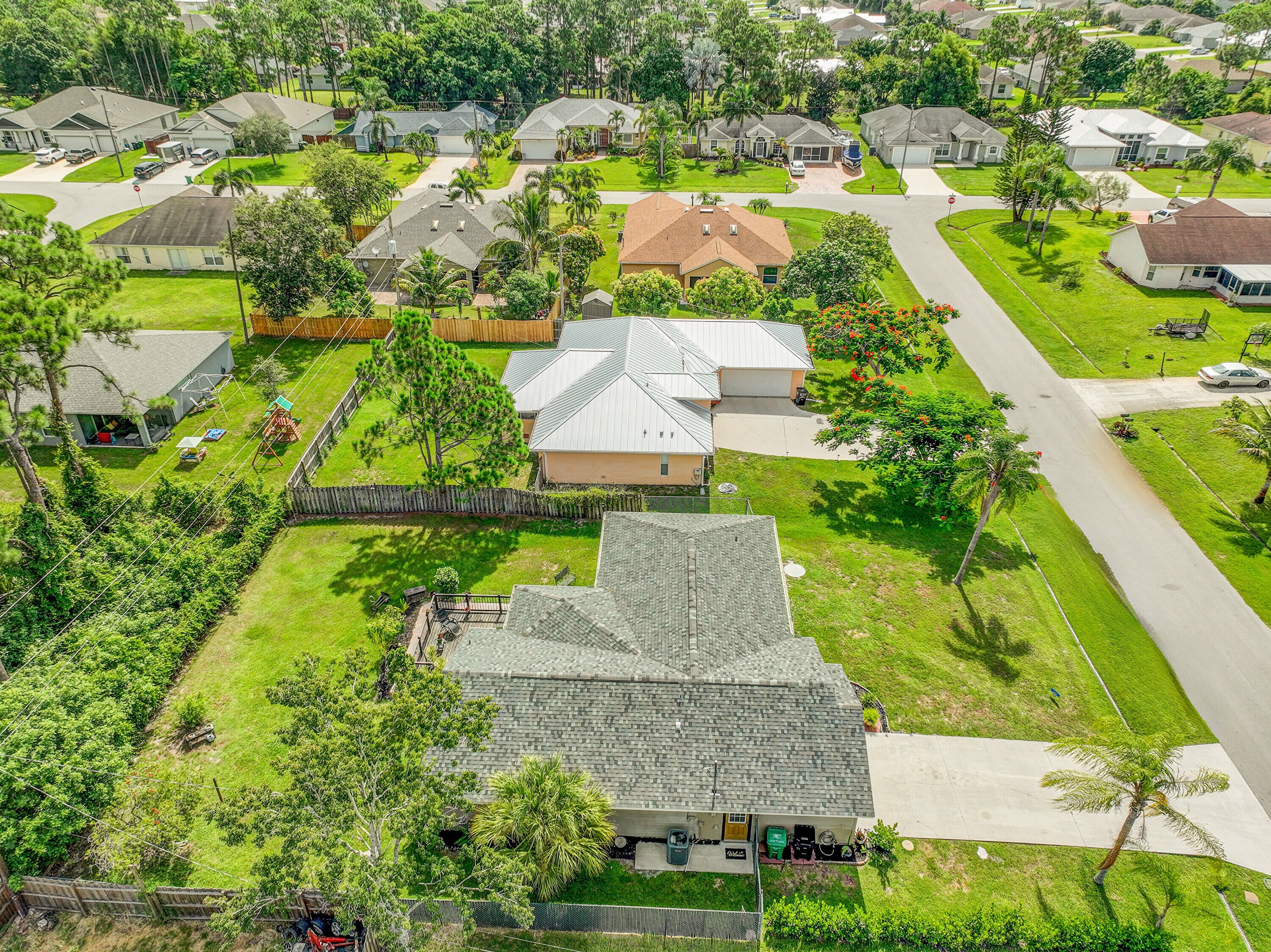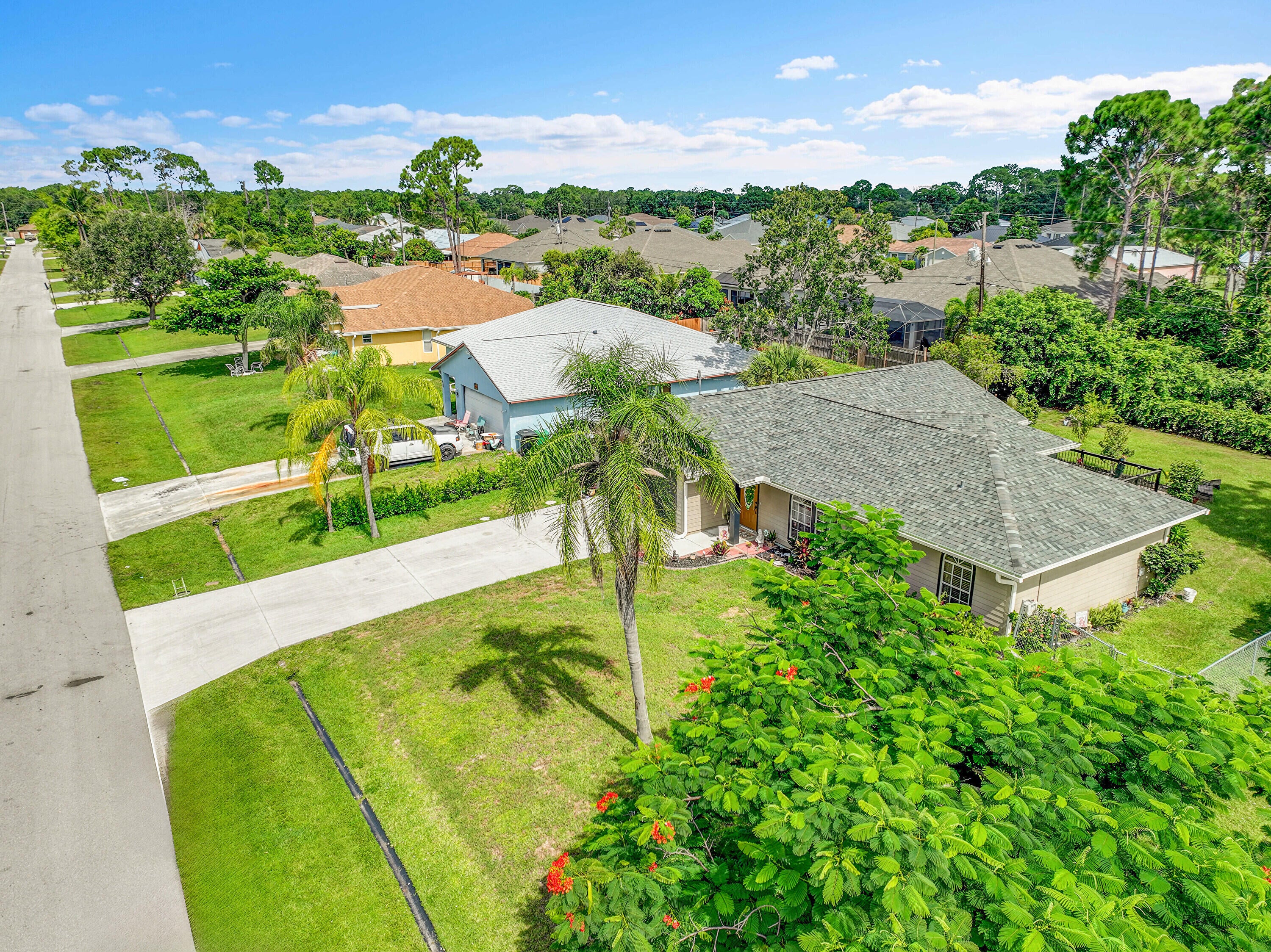 Nestled in the desirable Rosser Reserve area of Port St. Lucie, this beautifully upgraded 3-bedroom, 2-bath home blends modern comfort with everyday convenience located just minutes from I-95, shopping, schools, parks, and the thriving Tradition area. From the moment you arrive, the curb appeal speaks for itself. A freshly painted exterior trim adds a crisp, polished look, while mature landscaping, lush green lawn, and a full hedge of vibrant Clusias offer privacy and a sense of tropical serenity. Inside, you're welcomed by fresh interior paint and a bright, open layout that flows seamlessly into a thoughtfully updated kitchen. A stacked stone backsplash, Corian countertops, and newer stainless steel appliances make this kitchen both stylish and functional.Vinyl plank flooring adds warmth and durability to the bedrooms, each featuring its own walk-in closet for plenty of storage. The primary suite offers a peaceful retreat with a large walk-in closet and en-suite bathroom. This split floor plan includes a dedicated laundry room and a refreshed cabana bathroom for you to step outside into your very own Florida oasis. A fully enclosed Florida room with brand new screens and vinyl windows opens up to a custom wood deck framed by elegant paver accents. Whether you're hosting a BBQ or enjoying quiet evenings under the stars, this outdoor space was made to be enjoyed. Peace of mind comes easy here with a 2023 roof, durable fiber cement siding (Hardie plank/board), 2024 water heater, and over $3,000 in HVAC upgrades, including a new evaporator coil and blower motor. Plus, the 30 amp Interlock generator hookup ensures the entire home stays powered during outages. Even the little things are done for you like the new side garage door, new exterior window screens, and fresh landscaping touches throughout. Set in a quiet, established neighborhood with no HOA and surrounded by well-kept homes, this property offers the perfect mix of privacy, location, and livability. This is more than a home- it's a lifestyle upgrade waiting for you in the heart of Port St. Lucie.