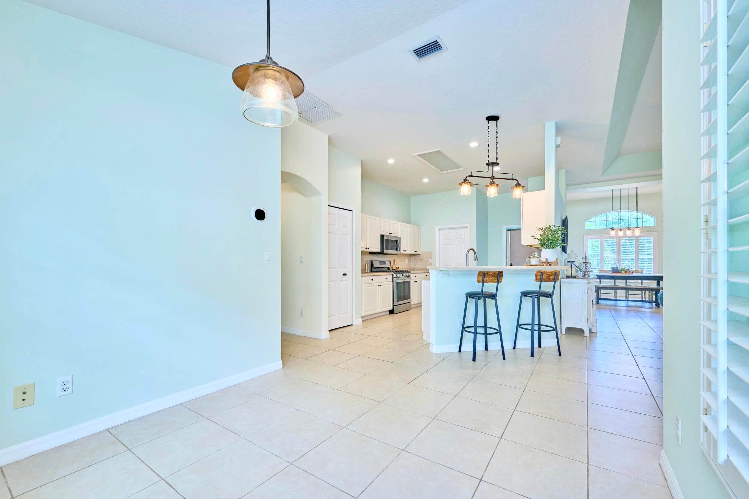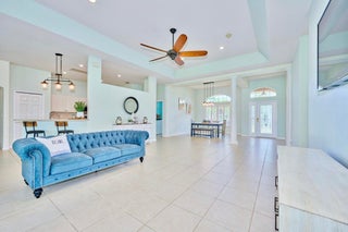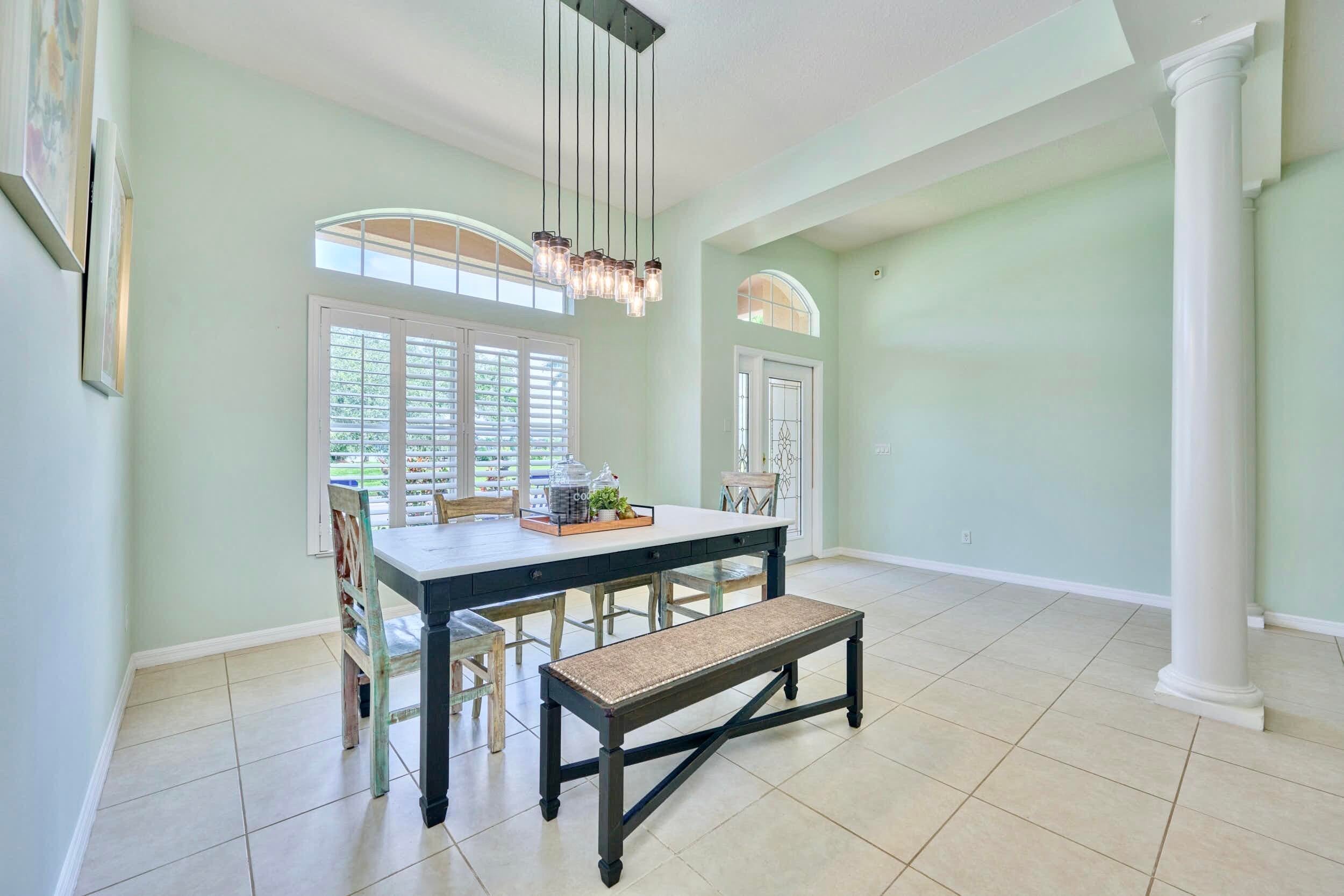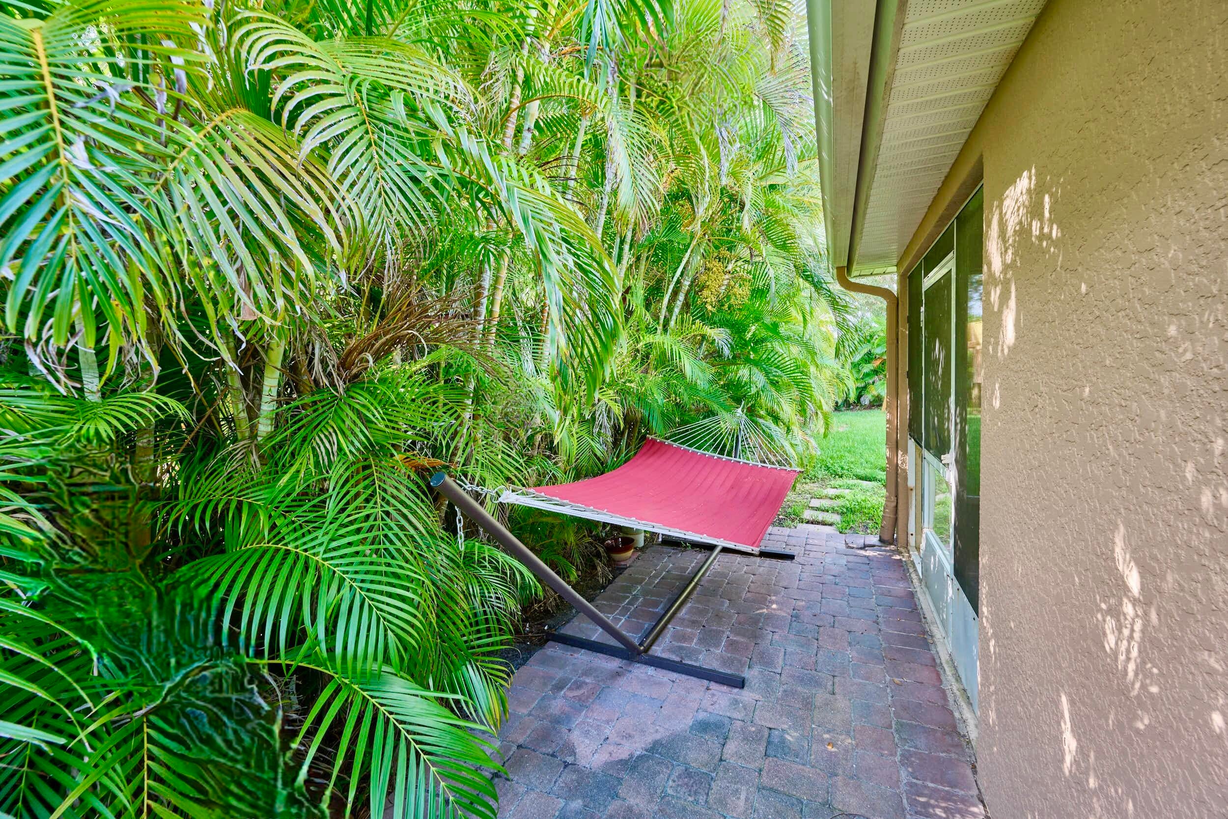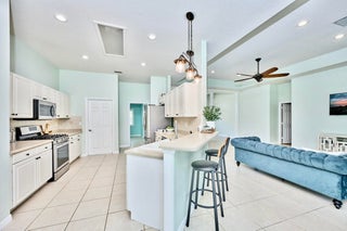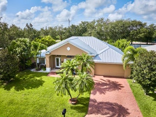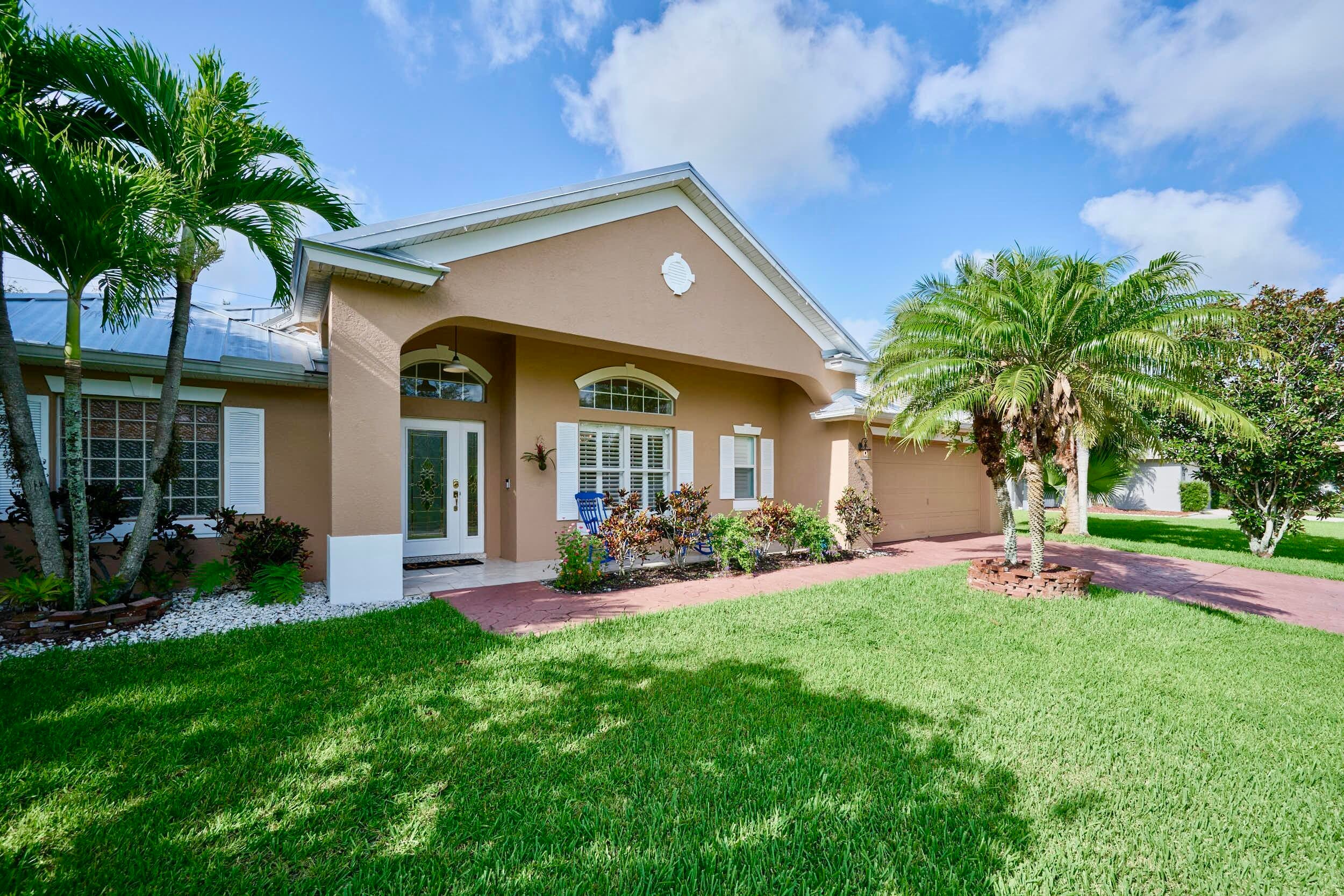 UNDER CONTRACT! BEAUTIFUL LEGEND LAKES HOME! 2025 exterior painted, 2022 metal roof, 2020 AC. Grand open living/dining/brkfast areas, vol ceiling, stately columns, elegant tray details, arched openings, +plantation shutters thru-out. KITCHEN boasts gas cooking, SS appl's, pantry, brkfast bar. INDOOR LAUNDRYRM includes bonus space--ideal for a 2nd pantry or desk/workspace. Split FlrPlan: BEDRMSUITE w/ 2 walk-in closets, ensuite bathrm, +direct patio access. GUEST WING features 2 bedrms +cabana bathrm--perfectly setup for a future pool build. Covr'd, scrn'd patio overlooks partially fenced backyard bordered by vegetation wall of lush Areca palms+ for added privacy. LOC: Mins to ISLAND beaches, parks, museums, galleries, boutiques & dining. MAINLAND: big-box shops, dining, medical+. SEE VIDEO