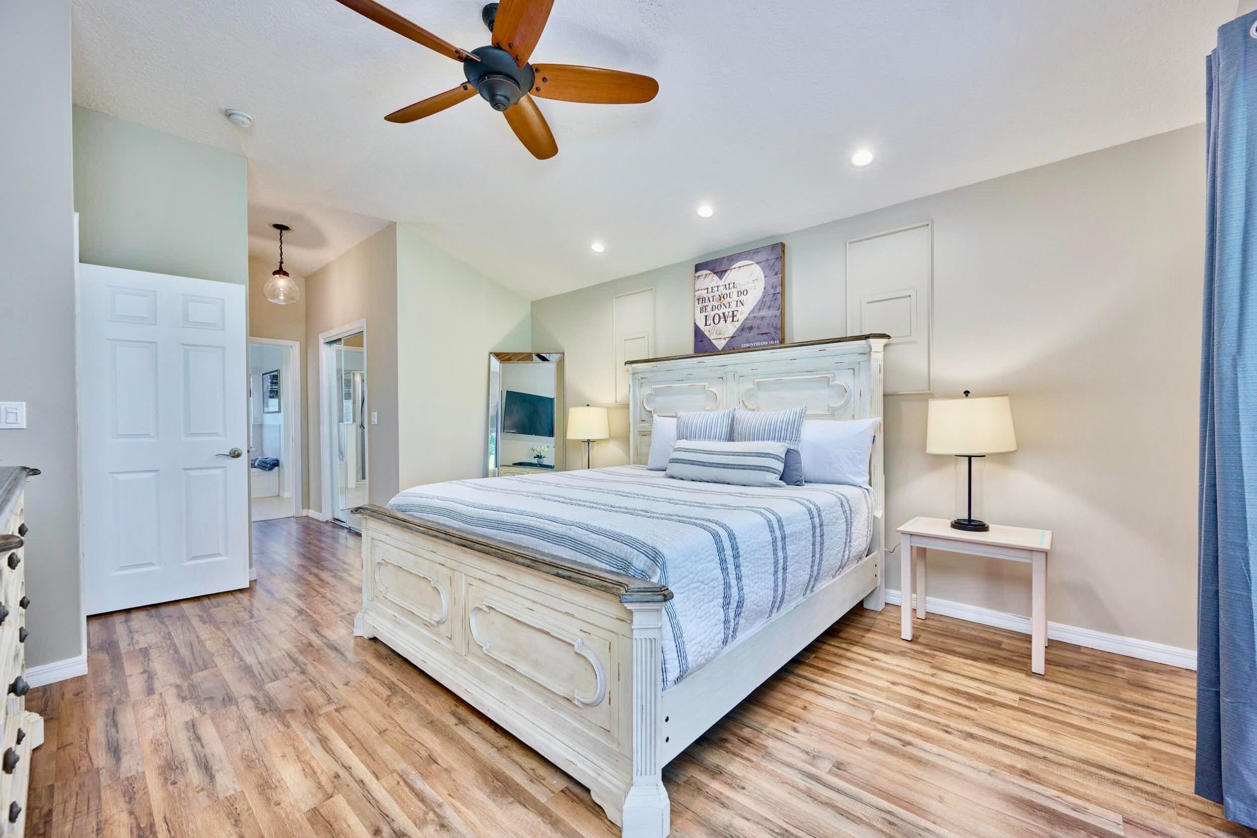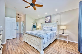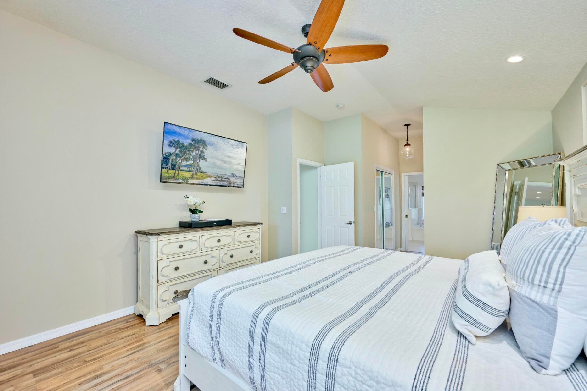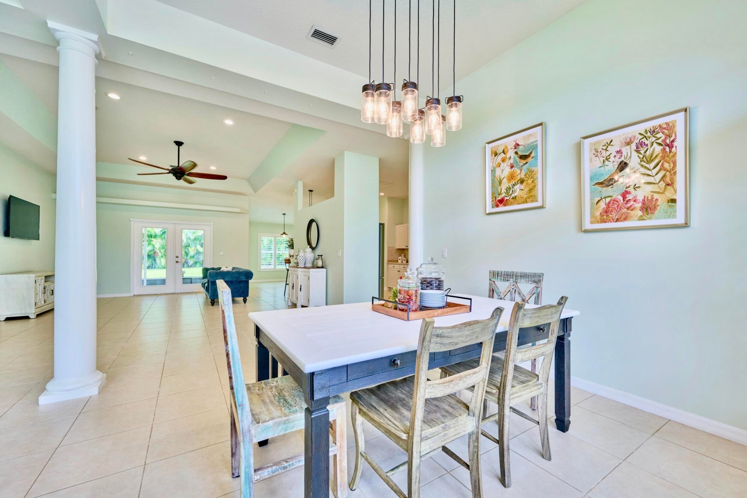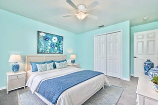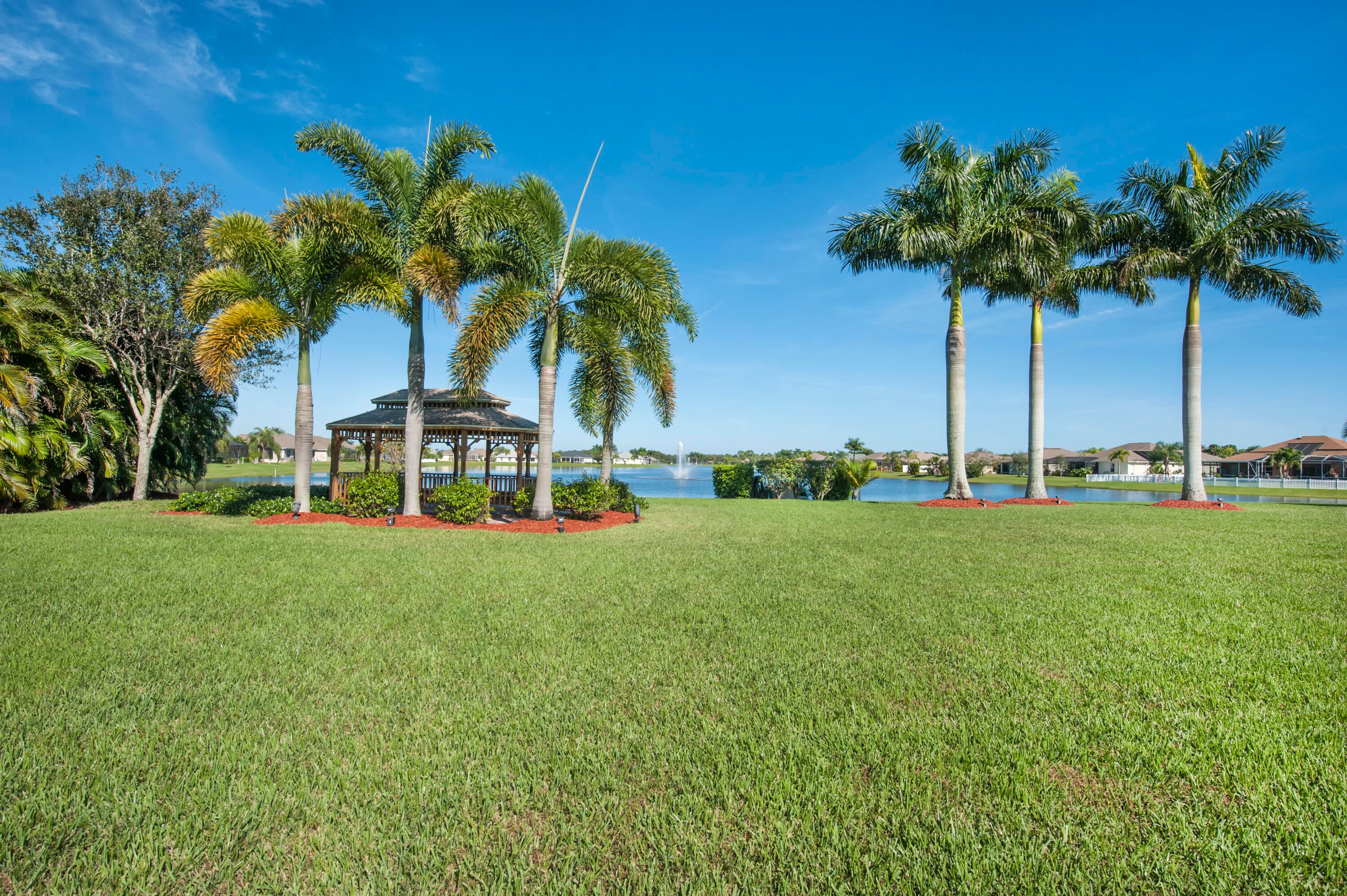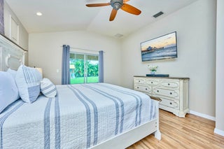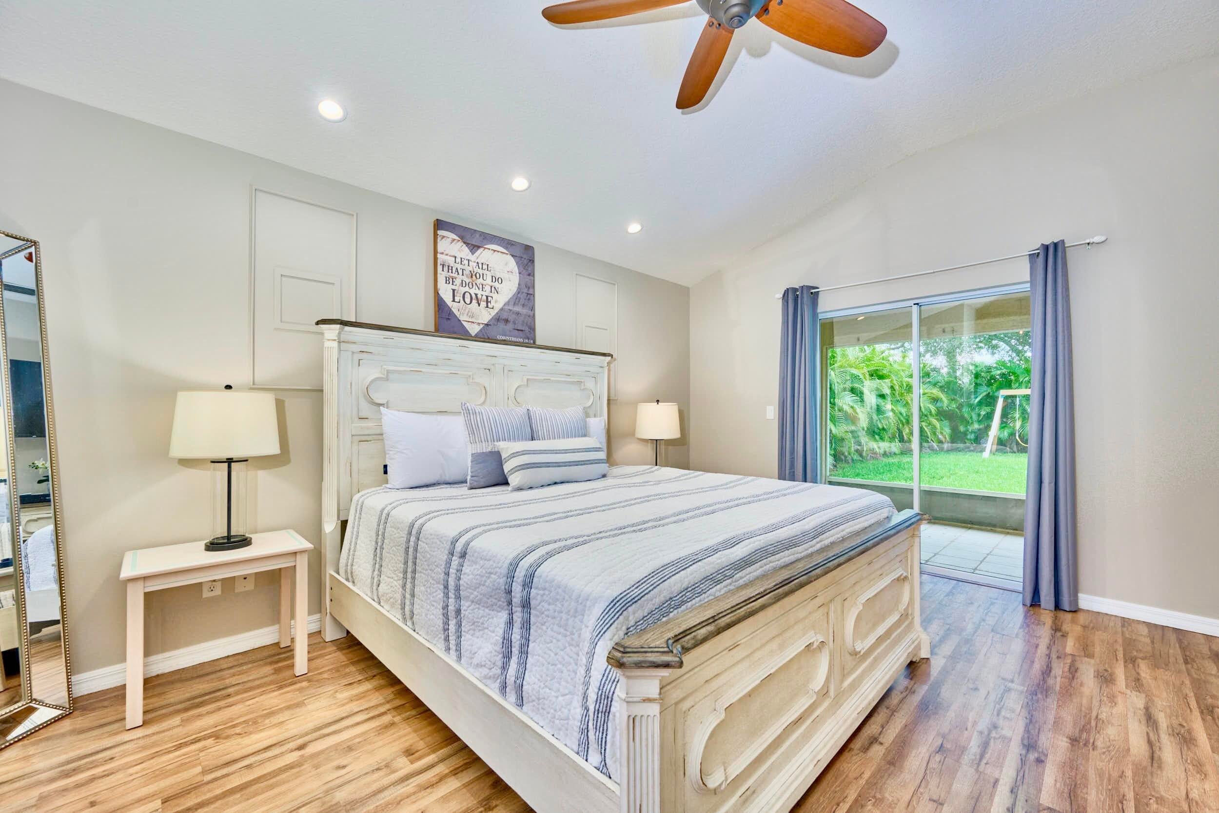 UNDER CONTRACT! BEAUTIFUL LEGEND LAKES HOME! 2025 exterior painted, 2022 metal roof, 2020 AC. Grand open living/dining/brkfast areas, vol ceiling, stately columns, elegant tray details, arched openings, +plantation shutters thru-out. KITCHEN boasts gas cooking, SS appl's, pantry, brkfast bar. INDOOR LAUNDRYRM includes bonus space--ideal for a 2nd pantry or desk/workspace. Split FlrPlan: BEDRMSUITE w/ 2 walk-in closets, ensuite bathrm, +direct patio access. GUEST WING features 2 bedrms +cabana bathrm--perfectly setup for a future pool build. Covr'd, scrn'd patio overlooks partially fenced backyard bordered by vegetation wall of lush Areca palms+ for added privacy. LOC: Mins to ISLAND beaches, parks, museums, galleries, boutiques & dining. MAINLAND: big-box shops, dining, medical+. SEE VIDEO