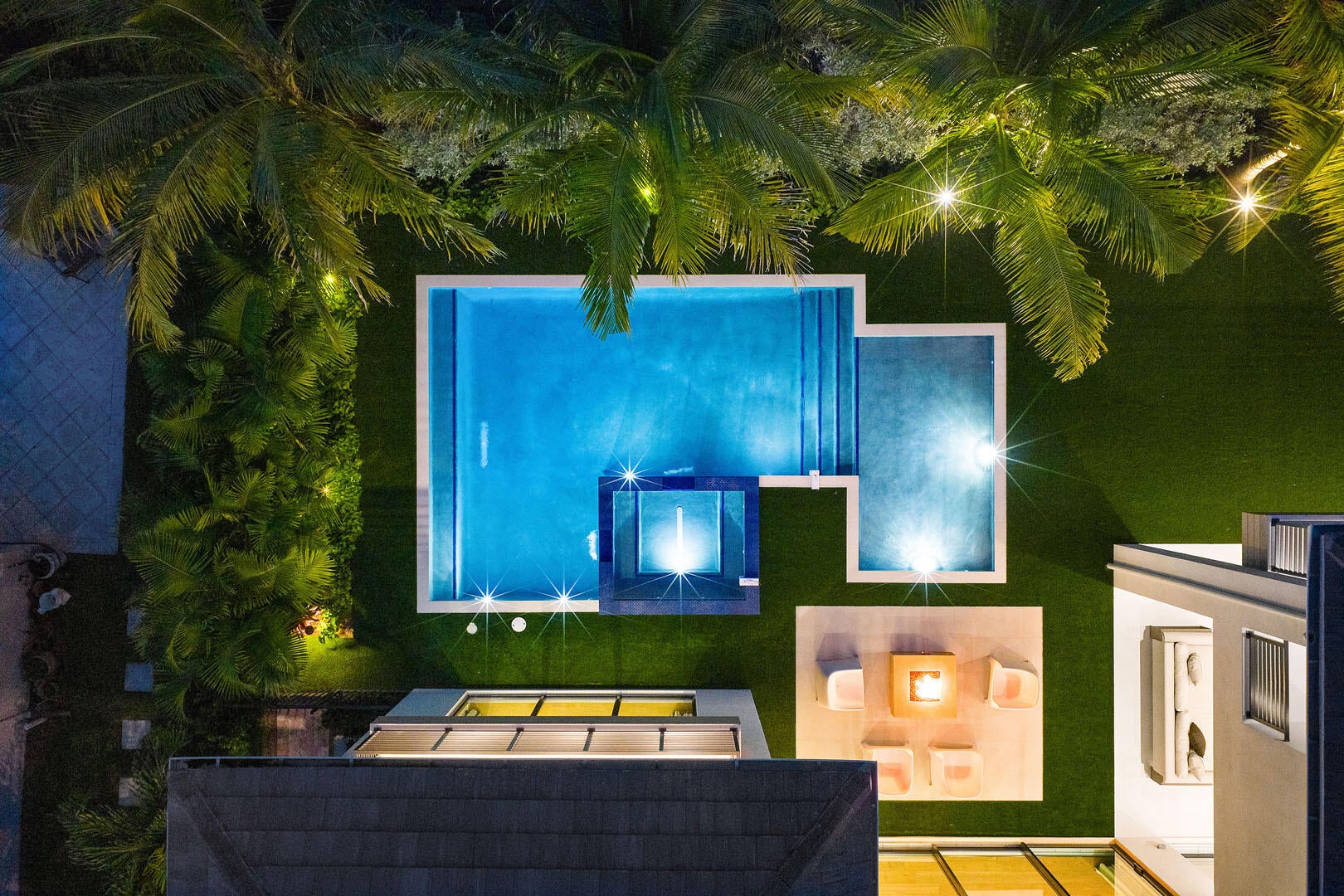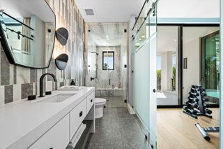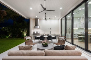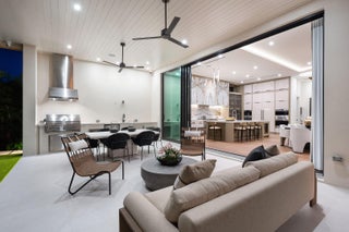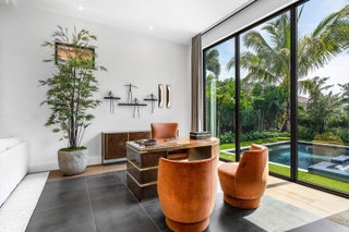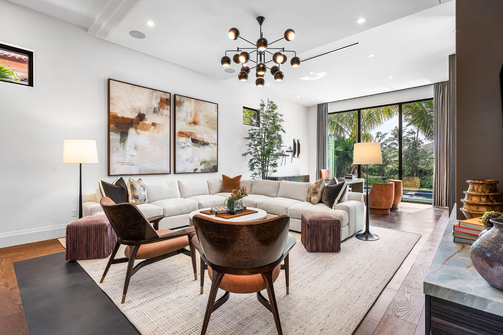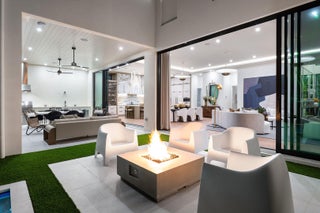 Introducing an exceptional new estate by Compson Homes, masterfully crafted for modern living and fully furnished by the award-winning Lesly Maxwell Interiors. Encompassing over 5,900 square feet under air, this 5-bedroom residence includes a dedicated wellness suite with full bath and sauna and 7.1 baths throughout--offering a seamless balance of luxury, comfort, and design-forward sophistication.A free-flowing floor plan connects the main living spaces, where clean-lined interiors, high ceilings, and bespoke finishes create an effortlessly elegant atmosphere. The gourmet kitchen is functional and striking, featuring top-of-the-line Wolf and SubZero appliances and a layout designed for serious chefs and social gatherings. A stylish club room with office and wet bar adds aversatile space for entertaining or unwinding. Upstairs, the primary suite is a private sanctuary with a covered balcony, dual spa-inspired baths, and boutique-style dressing rooms. The wellness suite offers a tranquil escape, ideal for self-care and rejuvenation, and the loft lounge is a curated quiet retreat. Outdoors, the home unfolds into a resort-style escape. A sculptural pool with integrated spa anchors the premium turf backyard, while a fire-feature lounge, summer kitchen, and expansive covered terrace invite year-round al fresco living. The modern architectural lines and curated exterior lighting complete the home's striking curb appeal. Buyer is responsible for documentary stamp taxes on the deed and title insurance.