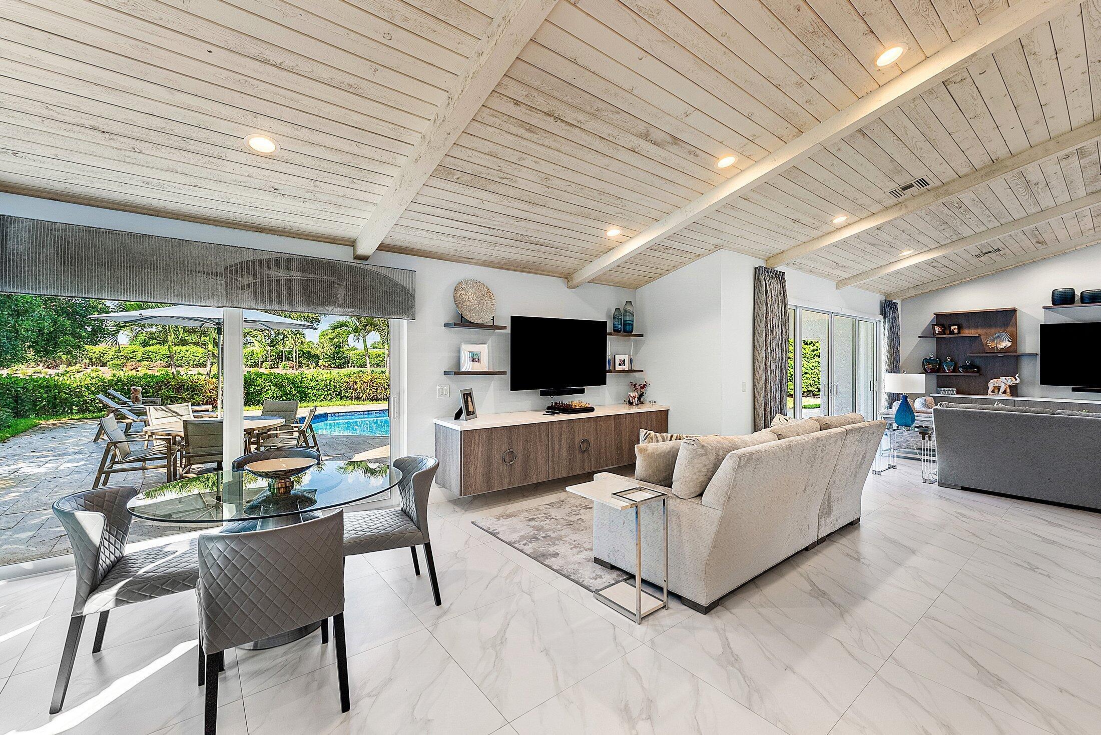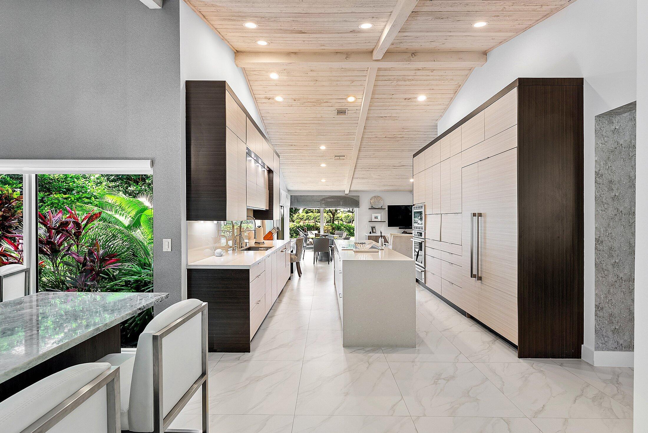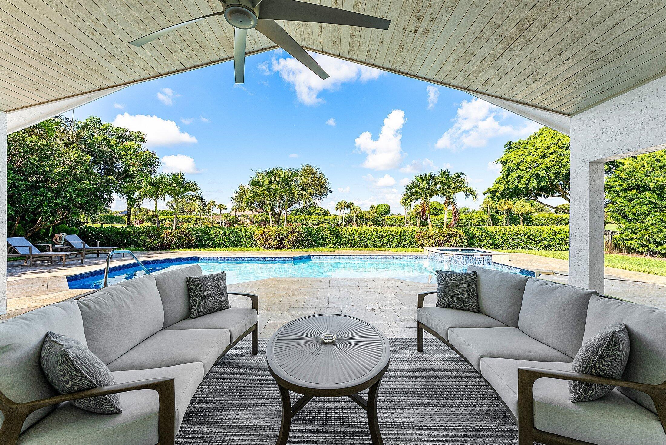 Welcome to this stunning, fully renovated contemporary residence in the exclusive Bocaire Country Club. Featuring 4 bedrooms and 4.5 luxurious baths, this home has been thoughtfully designed with high-end finishes and a serene, modern aesthetic in neutral tones. Enjoy effortless indoor-outdoor living with a grand, open-concept living room boasting vaulted ceilings, custom built-ins, and sliding doors that lead to a sprawling patio--perfect for entertaining or quiet retreats. Your private oasis with a heated pool and spa, brand new patio pavers, and lush, professionally designed landscaping overlooking the tranquil golf course.The gourmet kitchen is a showstopper, featuring designer finishes, a walk-in pantry, and adjacent laundry room. A sun-drenched dining area wrapped in floor-to-ceiliwindows offers picturesque views of flowering gardens, bringing the outside in. The primary suite is a true retreat with TWO en-suite bathrooms, and a huge custom walk-in closet. All new floors, all impact rated windows & doors, new central vacuum. Bocaire is a boutique mandatory membership Country Club with only 239 homes on one circle. It is an inclusive, friendly and active community, welcoming all! Parents, children and grandchildren included in the membership. Renowned championship golf course, competitive and social golf, tennis & pickle ball programs, resort-like aquatics center, 24 hour fitness center with diverse fitness classes, high-end dining and many fun social events and programs. One of the most eastern country clubs in Boca Raton, Bocaire is in an A school district with many desirable public and private schools. Close to beaches, restaurants, entertainment and to both Atlantic Avenue in Delray Beach and Mizner Park Boca Raton.