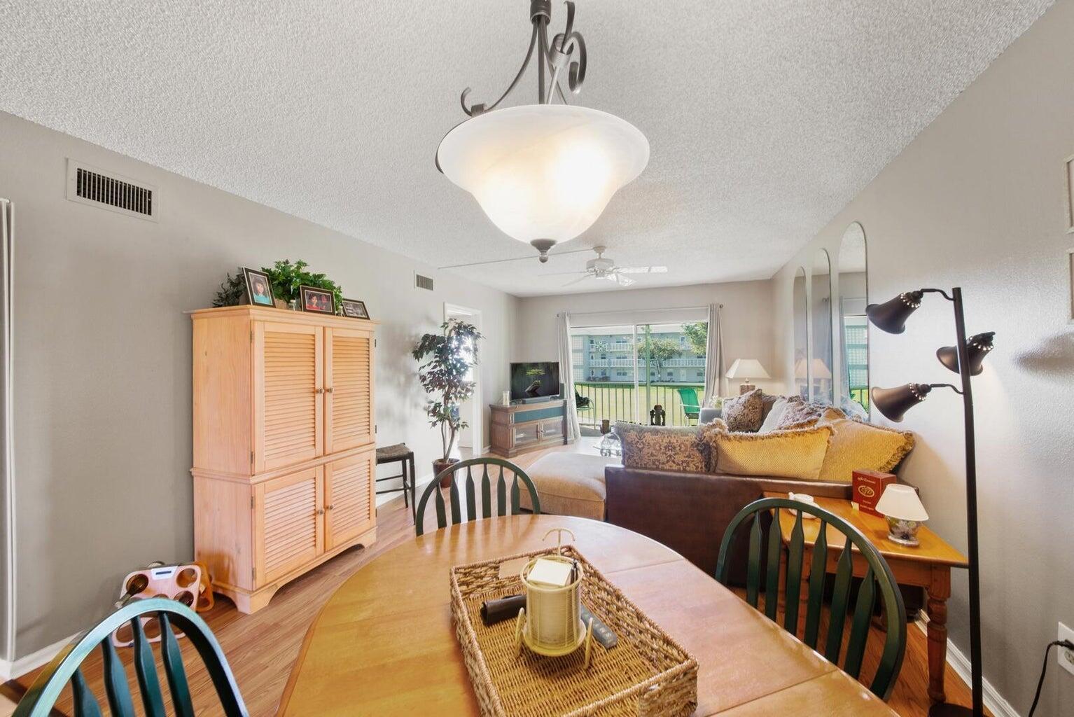 Welcome to this charming 2-bedroom, 2-bathroom condo nestled in the serene community of Sandalfoot. This inviting residence boasts neutral flooring and smooth walls throughout, creating a canvas ready for your personal touch. The open floorplan seamlessly connects the spacious living area to the kitchen, which features classic white cabinets and a convenient pass-through to the dining area. Enjoy casual dining in the cozy breakfast nook or entertain guests in the elegant dining space. The primary suite offers a tranquil retreat with his and hers closets and an en-suite bath for added convenience and privacy. Step outside to the screened balcony and soak in the picturesque lake view, perfect for relaxing mornings or evening gatherings.