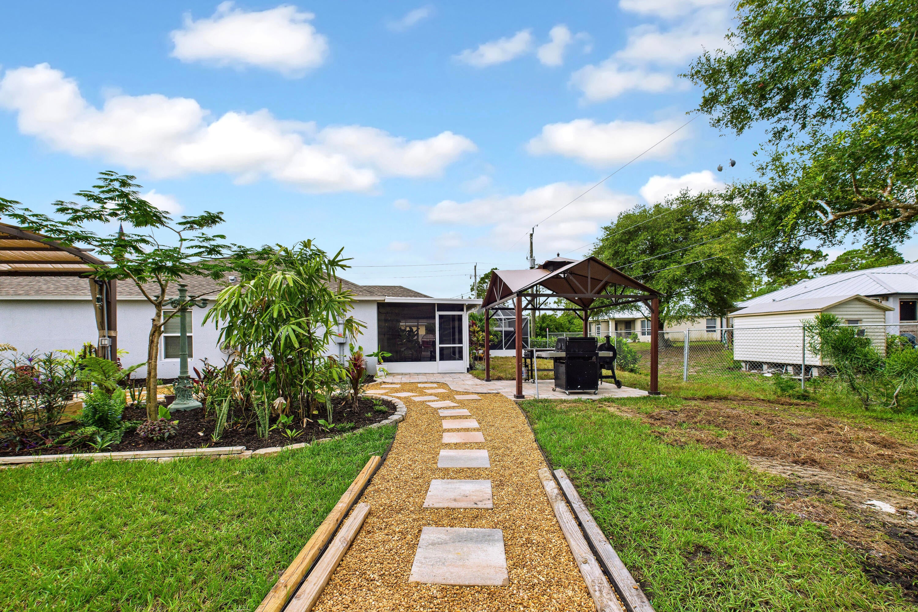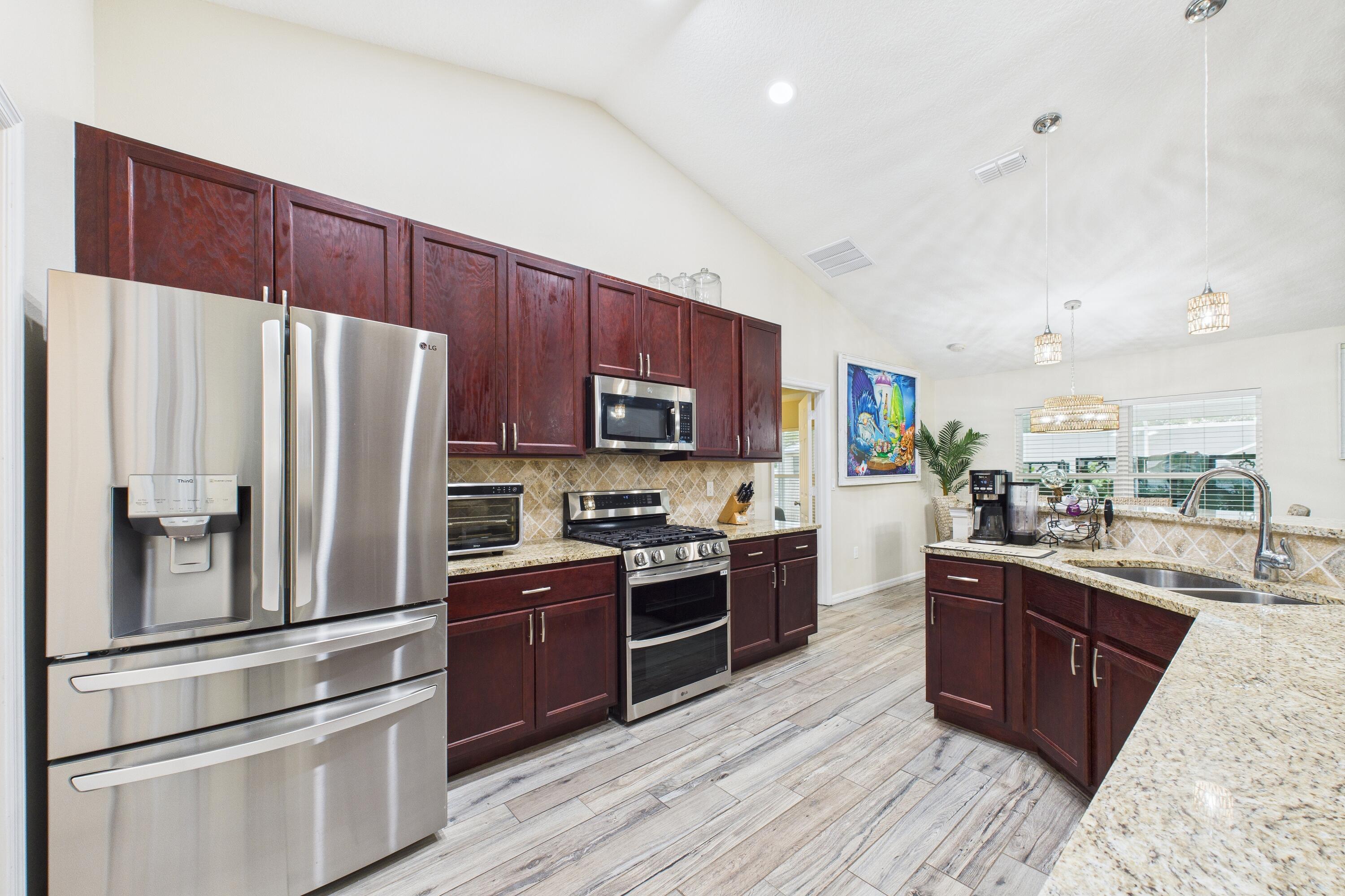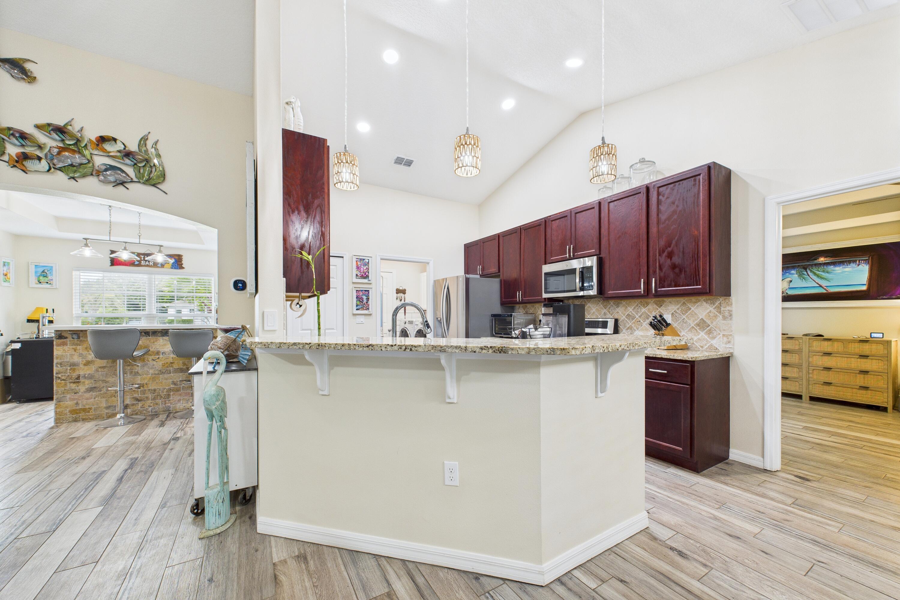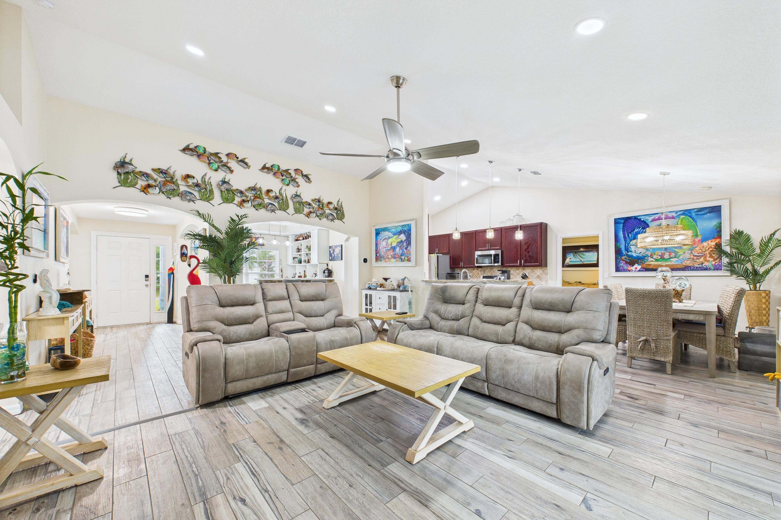 Discover your new happy place at 8325 105th Court--a sleek, move-in-ready 3-bedroom, 2-bath home on a rare double lot. Built in 2022, this smartly designed space offers tons of natural light, vaulted ceilings, and an open layout. Why You'll Love It:No HOA hassles, double lot with 30x40 detached garage, open-concept living with high ceilings and big windows, gourmet kitchen that flows into living/dining zones, perfect for entertaining or mastering meal prep for a crowd. Outdoor retreat + private lap pool--think early-morning laps, evening cocktails by the water, and zero pool neighbors. Minutes from the beach and downtown SebastianOnly three years old so everything's fresh and under warranty.