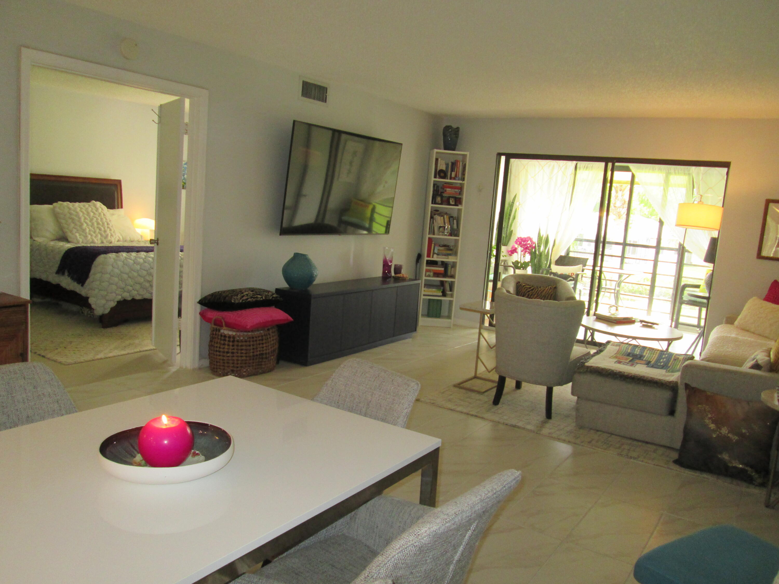 COME SEE THIS TURNKEY, 2 BEDROOM 2 BATHROOM VERY OPEN & SPACIOUS HOME WITH THE WALLS TAKEN DOWN TO OPEN THE WHOLE FLOOR PLAN & A BRAND NEW UPDATED KITCHEN WITH ALL STAINLESS-STEEL APPLIANCES & A HUGE ISLAND WITH MARBLE LIKE COUNTER TOPS. THE MASTER HAS A HUGE WALK IN CLOSET WITH A SEPARATE AREA FOR GETTING READY FOR A DAY OR NIGHT OUT IN THIS BEAUTIFUL SOUTH FLORIDA WEATHER. 2ND BEDROOM IS LIKE ANOTHER MASTER WITH THE BATHROOM UPDATED COUNTERTOP WITH A WALK IN SHOWER. ENJOY THE GORGEOUS VIEWS OF THE CANAL FROM YOUR ENCLOSED PATIO. WASHER DRYER IN THE UNIT.THIS GATED COMMUNITY HAS 2 HEATED POOLS W/JACUZZI'S, TENNIS COURTS, PICKLE BALL, A HUGE GYM, LIBRARY, ITS OWN THEATRE, TONS OF ACTIVTIES. LOTS OF GREAT DINING & SHOPPING IN THE AREA & POLO. CLOSE TO I-95 & THE TURNPIKE & PBA AIRPORT.
