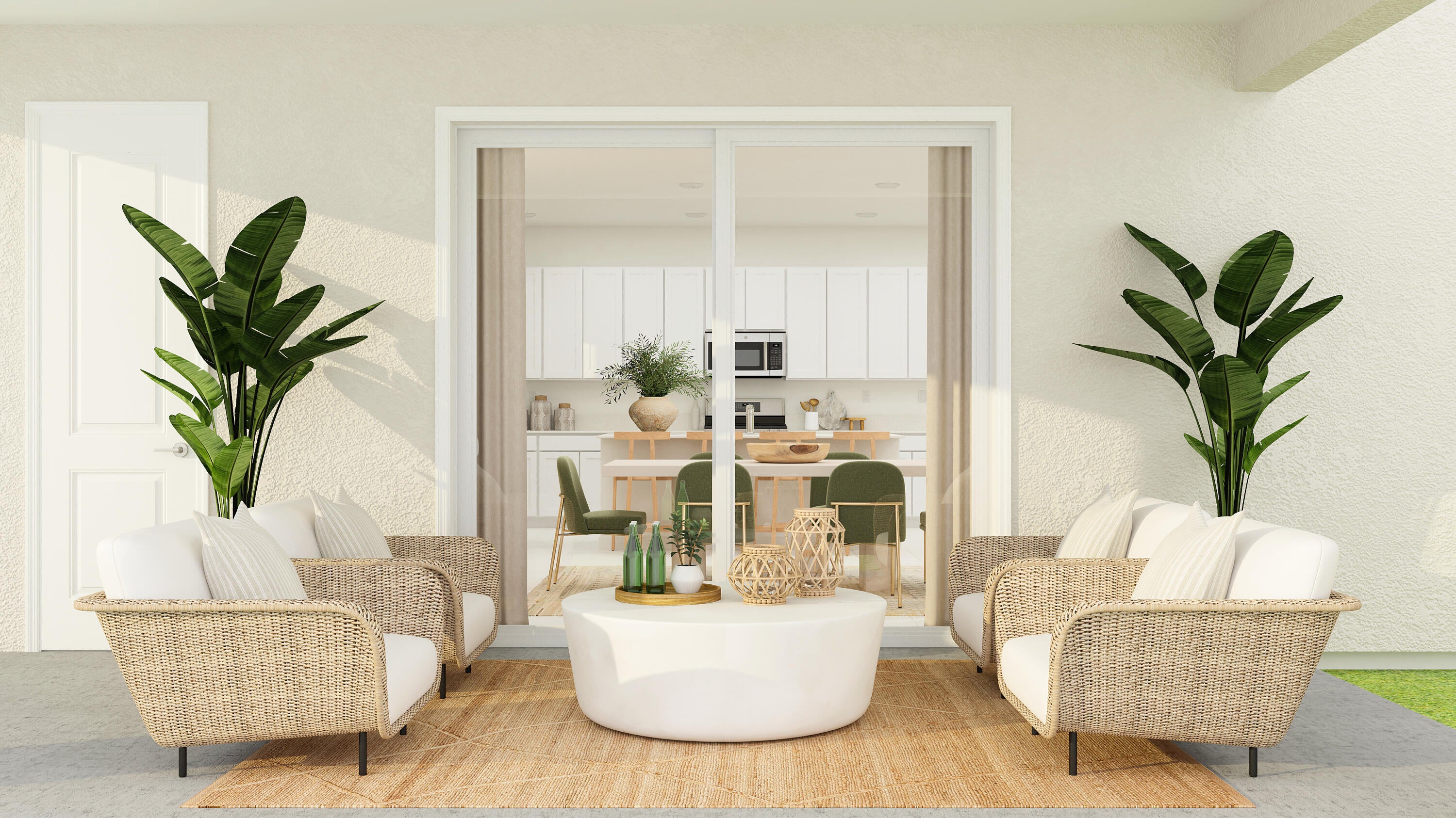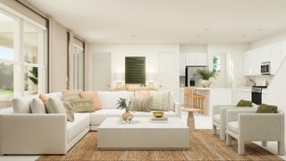 Discover resort-style living in this stunning 4-bedroom, 3.5-bath home in the award-winning Arden community of Loxahatchee. The first floor of this new two-story home is host to an inviting open-concept floorplan with access to a covered lanai for effortless entertaining, and a study is easily accessible off the foyer. Upstairs, four bedrooms surround a versatile loft, including the luxe owner's suite with a spa-inspired bathroom and walk-in closet. Photos are for illustrative purposes only.