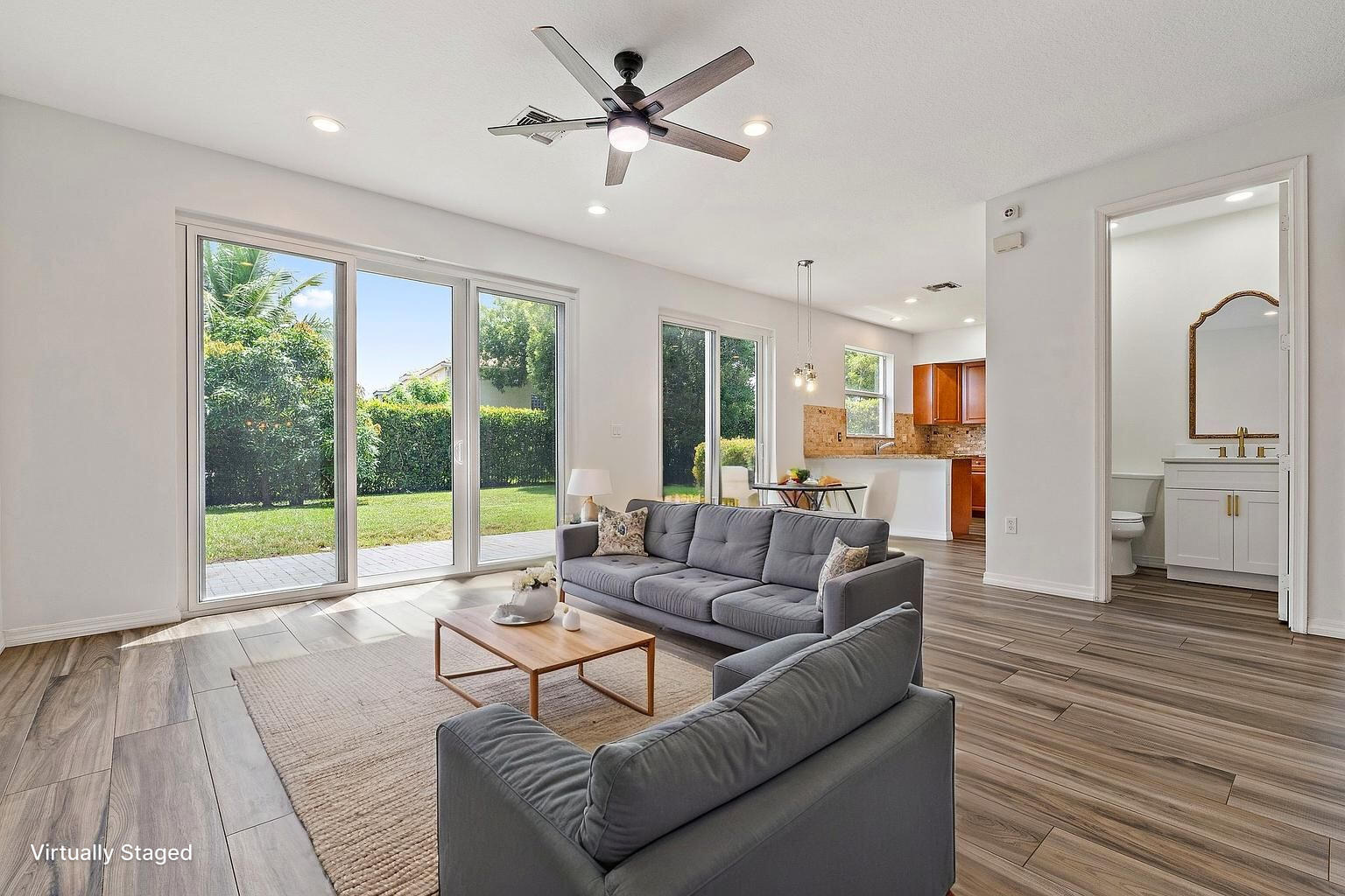 Clean, sun-filled home in the charming neighborhood of Porto Sol, right in the heart of Royal Palm Beach! Updated exterior and interior paint, with new floors throughout and gorgeous new bathrooms inside. Large and private rear yard, plenty of room for oversized pool or enjoy the privacy and greenspace as-is. Lots of new or replaced items such as water heater, HVAC, belt-driven garage opener, lighting, etc. Equipped with 50-Amp EV charging station. Sidewalks, private streets, and amenities galore, including a fully-staffed 5,000-square foot clubhouse, state-of-the-art fitness center, billiards room, tennis, pickleball, and basketball courts, a resort style pool and spa, and splash park. Come put your stamp on this turn-key, move-in ready home. Make sure to click that virtual tour!