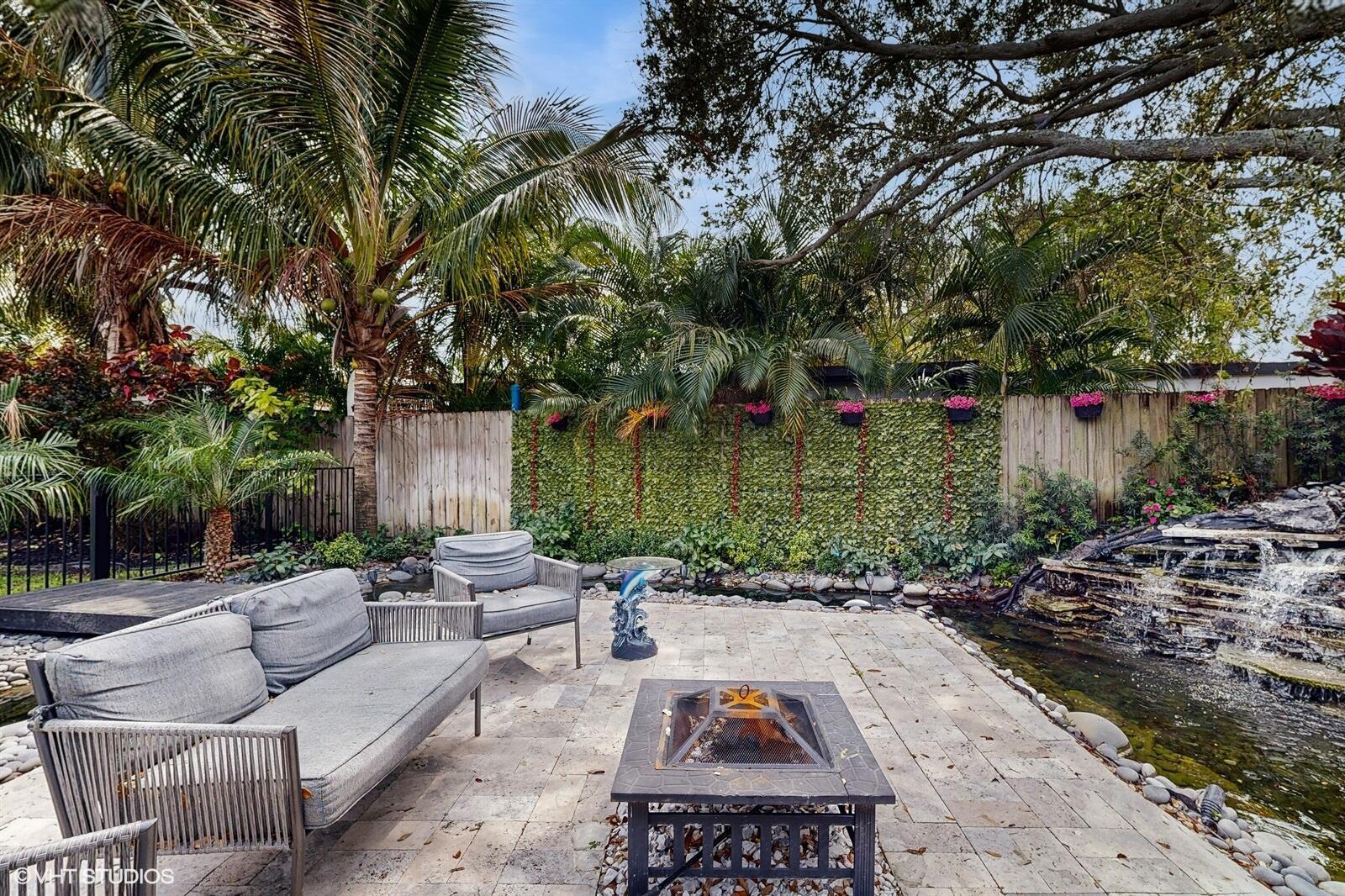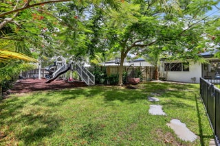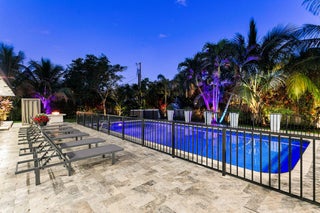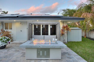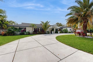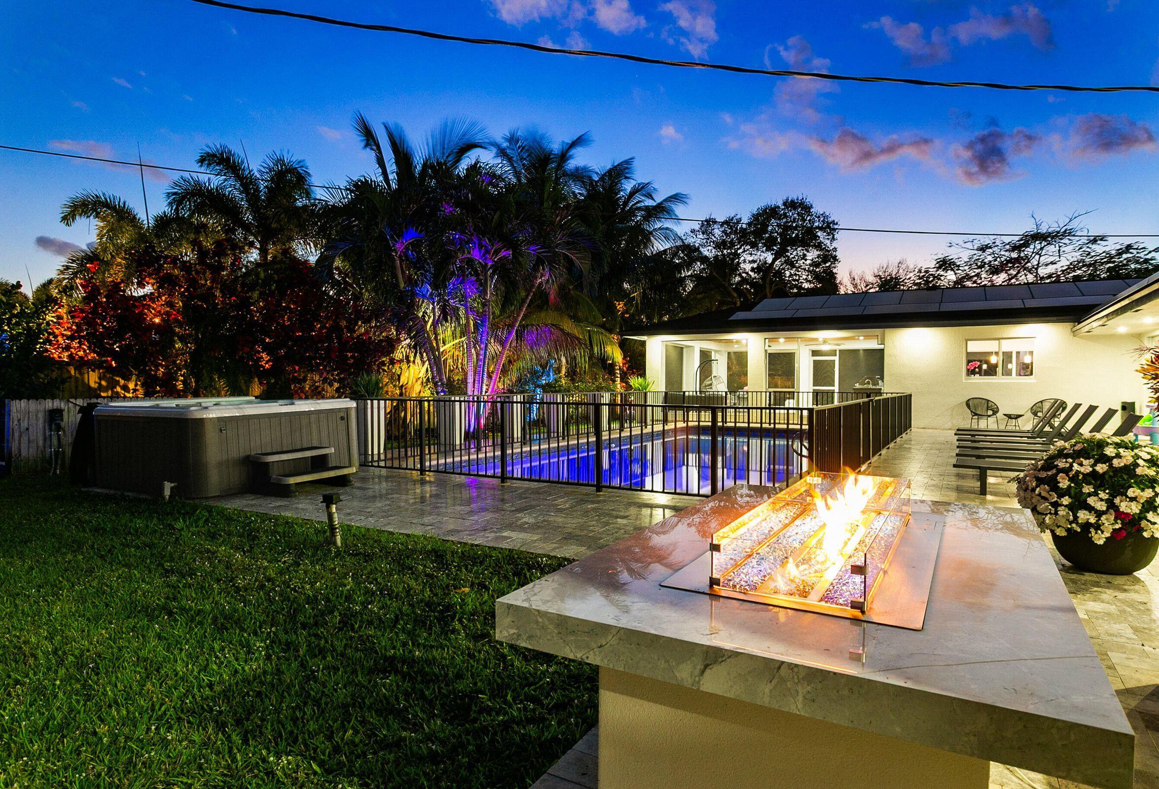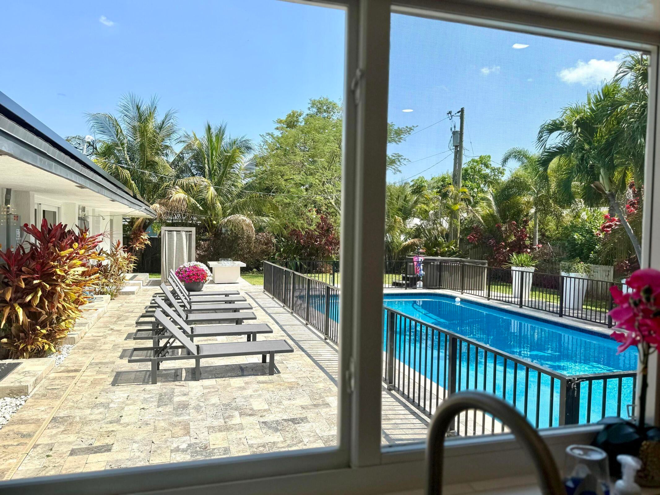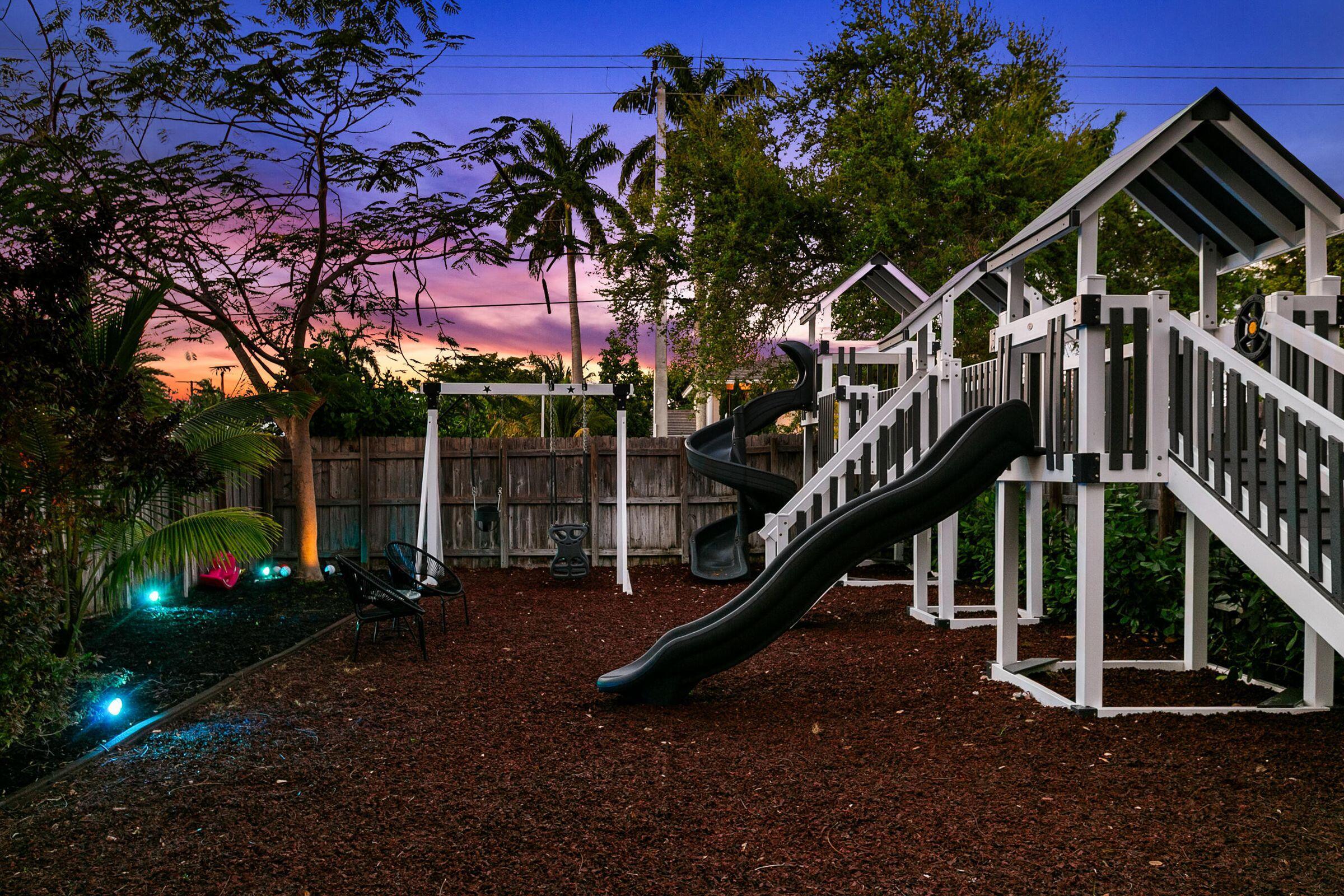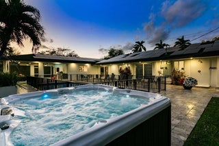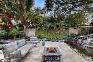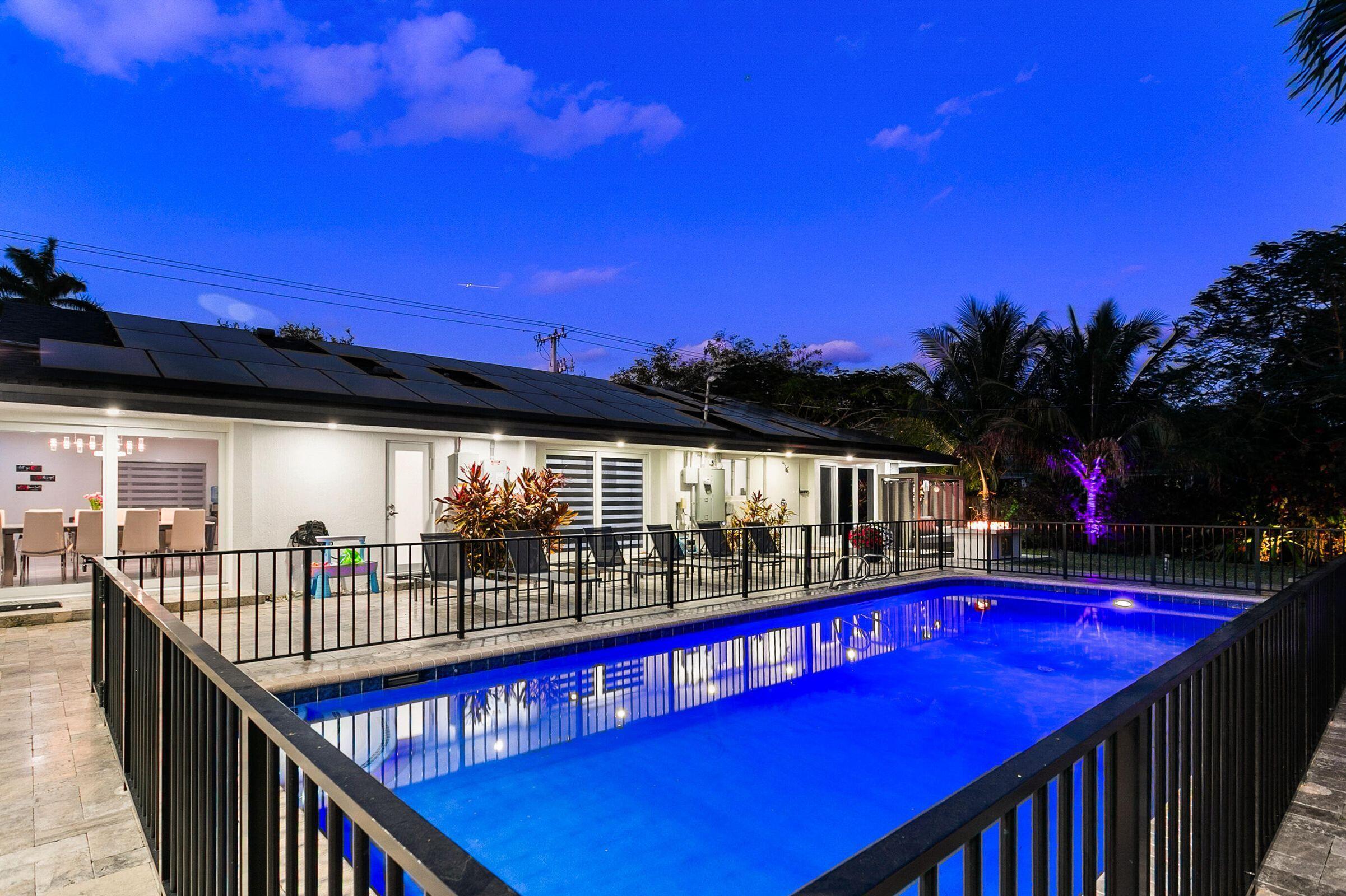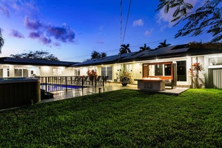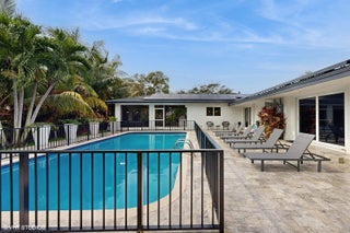 No expense spared, fully updated including electric and plumbing. 5-bed 3-bath gem that sits on a lush 1/2 ACRE WITH ROOM TO BUILD, add on or build a guest house. PLUS, just minutes from the ocean. Security system/camera's, Impact windows and doors, and a sprinkler system fed by private well. With over 100,000 invested in SOLAR PANELS, think of all the money you will save! Step inside to a bright, open floor plan. Cabana bath and outdoor shower. Perfect for indoor-outdoor living. Relax in the heated pool, cook in the outdoor kitchen with granite counters, or sit and enjoy the tranquility of the pond with moat and waterfall. A commercial-grade playground adds fun for all ages. This home blends luxury, comfort, and modern flair-your perfect Florida lifestyle awaits.