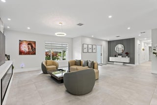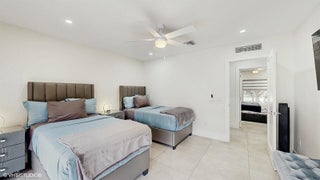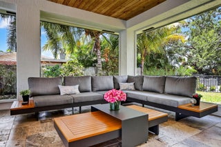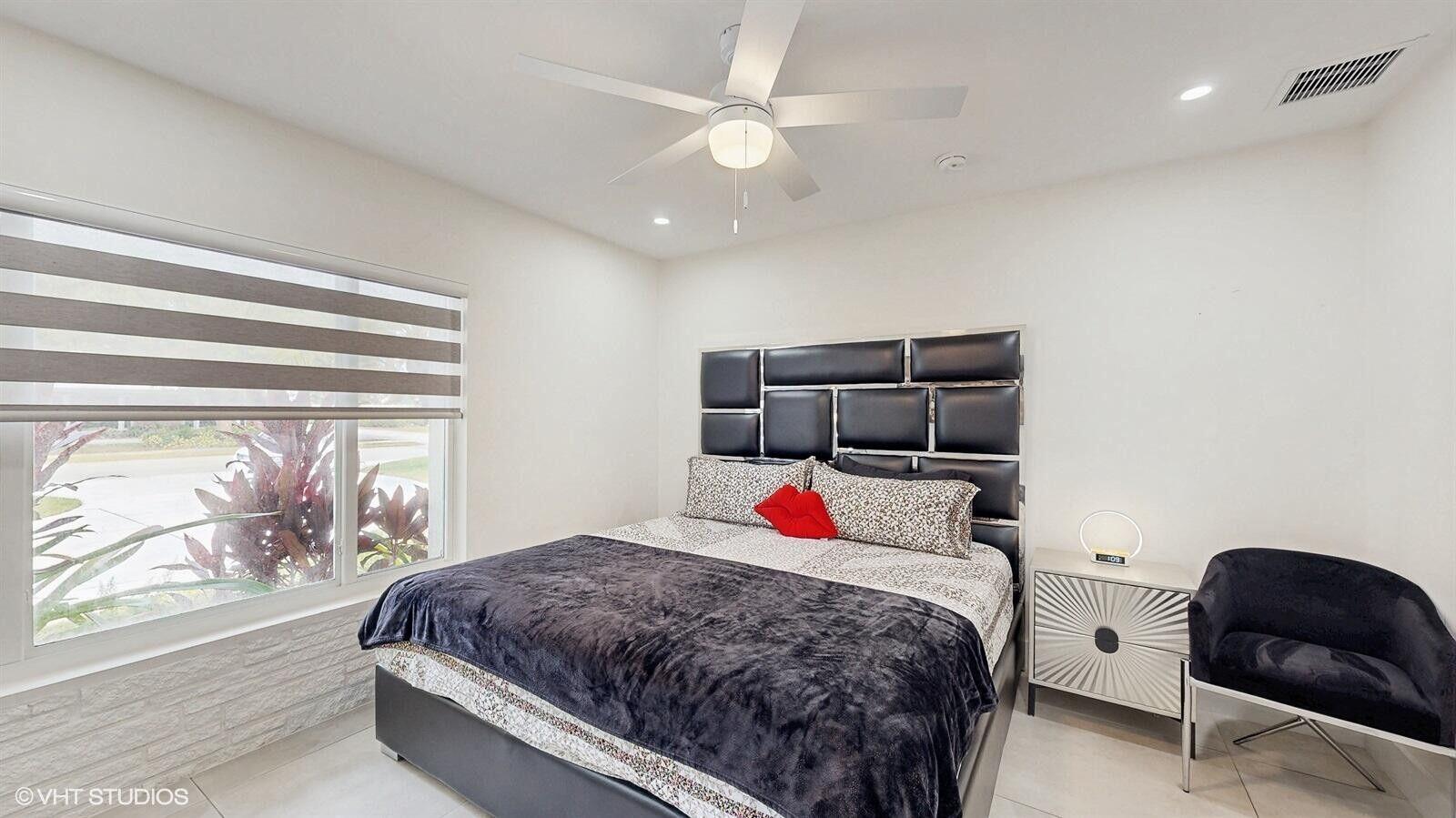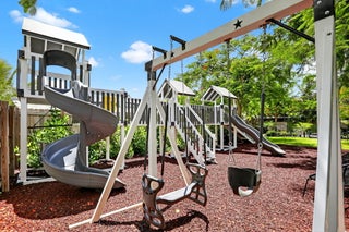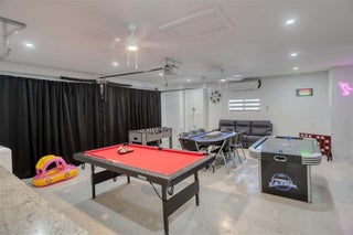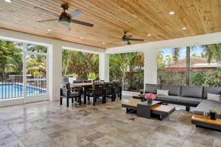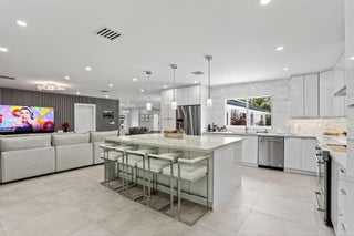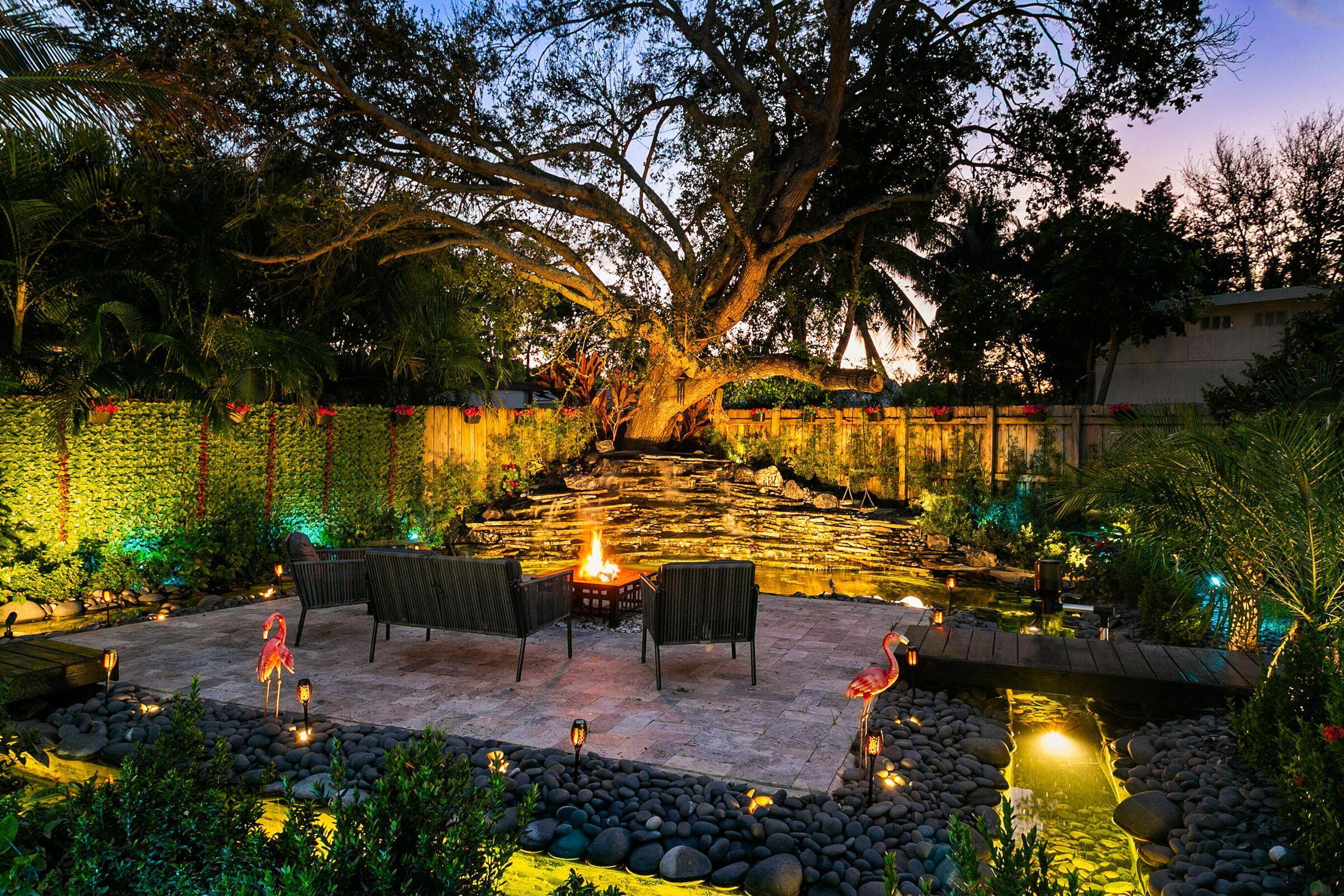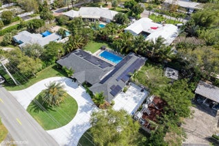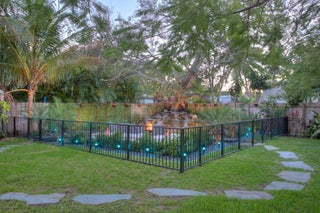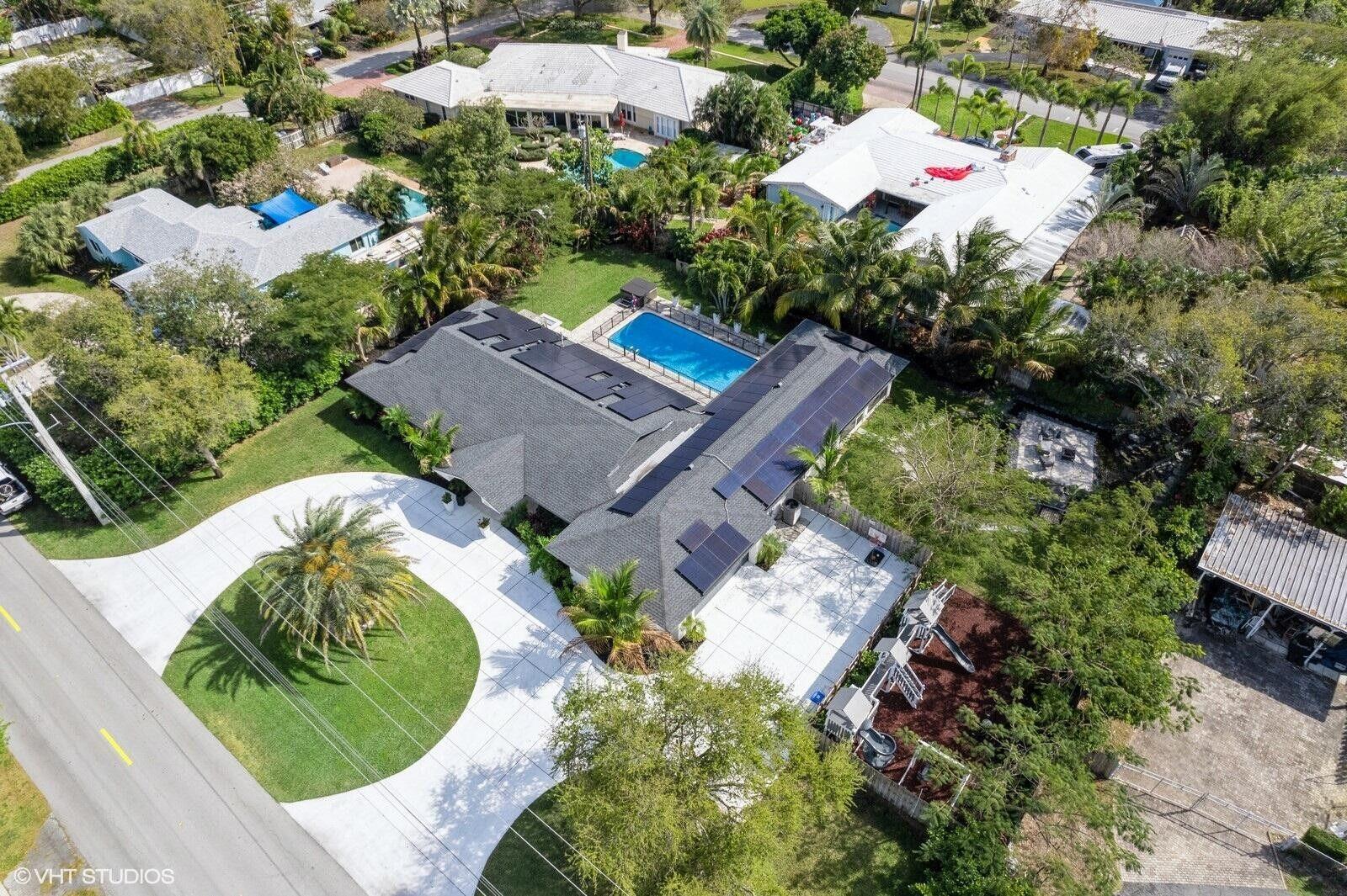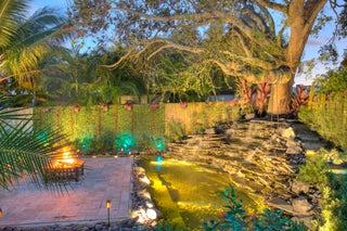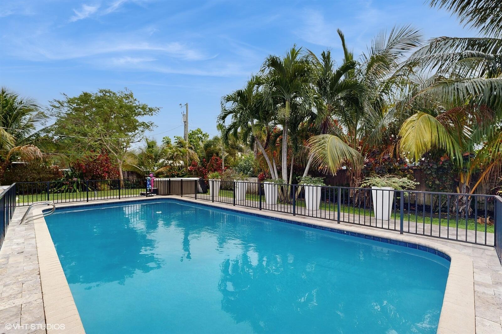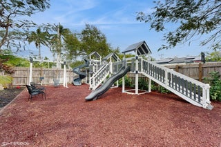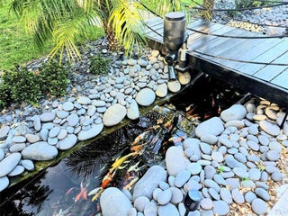 No expense spared, fully updated including electric and plumbing. 5-bed 3-bath gem that sits on a lush 1/2 ACRE WITH ROOM TO BUILD, add on or build a guest house. PLUS, just minutes from the ocean. Security system/camera's, Impact windows and doors, and a sprinkler system fed by private well. With over 100,000 invested in SOLAR PANELS, think of all the money you will save! Step inside to a bright, open floor plan. Cabana bath and outdoor shower. Perfect for indoor-outdoor living. Relax in the heated pool, cook in the outdoor kitchen with granite counters, or sit and enjoy the tranquility of the pond with moat and waterfall. A commercial-grade playground adds fun for all ages. This home blends luxury, comfort, and modern flair-your perfect Florida lifestyle awaits.