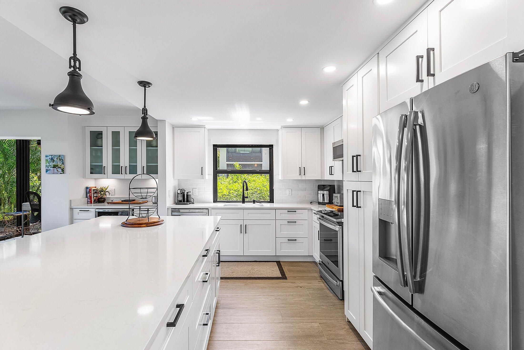 Experience effortless living in this fully renovated 2-bedroom, 2-bath home located in the Green Heron S area of Quail Ridge. Situated on the first floor, this bright and spacious residence features a stunning lake view and a welcoming open patio--perfect for relaxing or entertaining. Step inside to discover wood-look flooring throughout, impact glass windows and doors for added peace of mind, and a thoughtfully designed layout. The open-concept living and dining areas flow seamlessly into a sleek, modern kitchen with high-end finishes. The primary suite offers a tranquil retreat with a large walk-in closet and a beautifully updated en-suite bath. Enjoy all the amenities of club living in this move-in ready home with stylish upgrades and timeless appeal. Comes fully furnished!