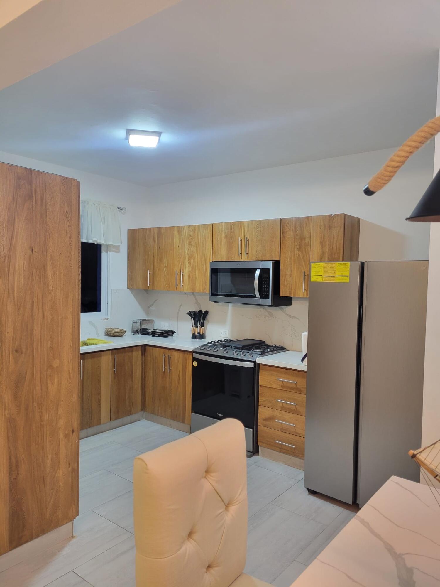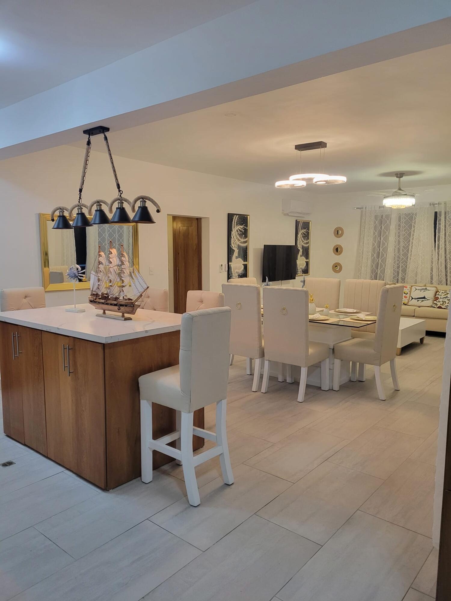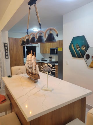 Spectacular three-bedroom, two-bathroom apartment on the third floor, for monthly or annual rent. Fully furnished! Located in the Sosua area (Laguna Beach). From here, you can see the cruise ships and walk to the beach in just two minutes. Enjoy your vacation in this beautiful place, or live and work inspired from here! With breeze, beach, ocean, and scenery!
