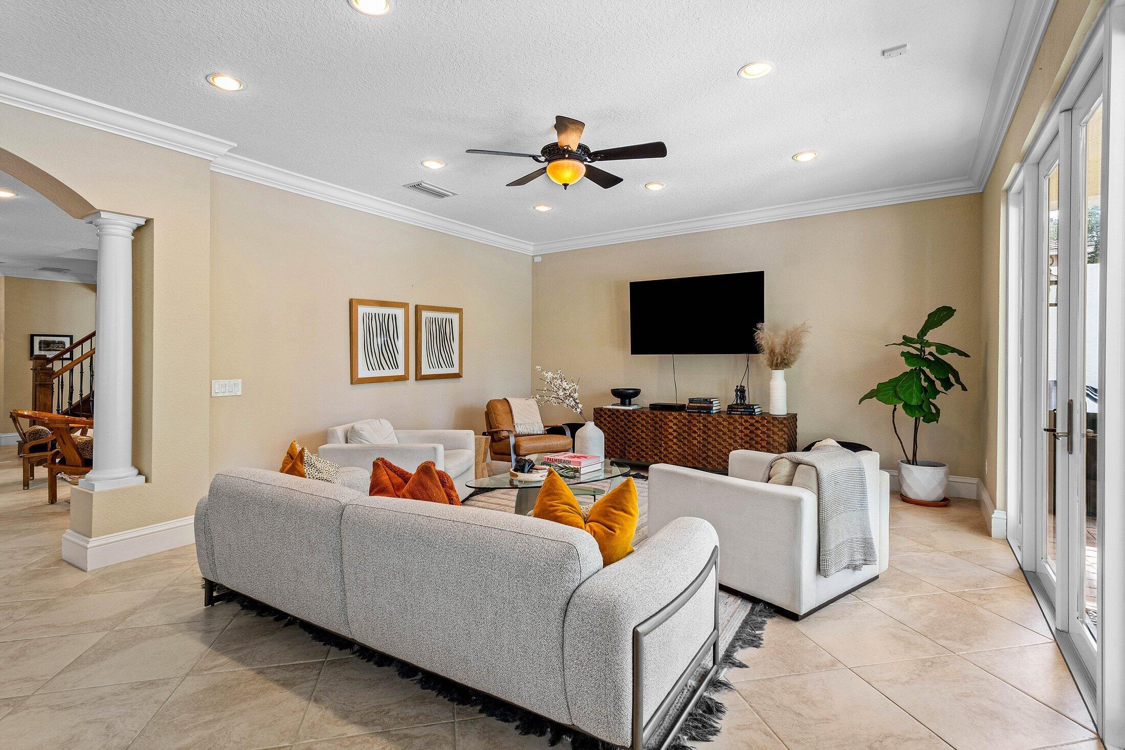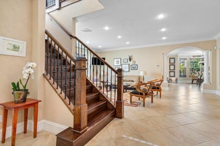 Gorgeous 5 Bedroom Pool Home in Canyon Isles. This Home Sits on a Culdesac and Offers Impact Glass for the 1st Floor and Accordion Shutters for the Second. Entering this Designer Showcase Notice the Oversized Baseboards and Custom Lighting Throughout. The Massive Guest Room on the 1st Floor is Currently Used as a Den and can be a Great Playroom or Home Theater with Surround Sound Wiring. The Incredible Kitchen is Huge & Includes a Large Center Island, Rich Wood Cabinetry and Stainless Steel Appliances. Head Out Back to Your Luxurious Resort Style Pool & Spa with Southern Exposure for all Day Sunlight. There is A Large Covered Patio Running the Entire Width of the Home as Well. Heading Upstairs a Wrought Iron Staircase with Oak Banister Leads to an Awesome Loft Area with Built In Fridge.The Entire Second Floor Includes Gorgeous Laminate Wood Floors Throughout. The Huge Primary Bedroom Includes 2 Walk In Built in Closets and an Impressive Bathroom with Soaking Tub & Separate Vanities. Two Large Guest Room Share a Jack & Jill Set Up and the Additional Guest Room has a Balcony Overlooking the Property. This Home has Been Meticulously Maintained and Pride of Ownership Shows as you Tour the Property. Canyon Isles is an Incredible Guard Gated Community with and Incredible Amenity Filled Clubhouse. All Within Walking Distance to "A" Rated Schools, a Brand New Park & Library and Shopping and Restaurants. Come See what Living in The Canyons is All About!
