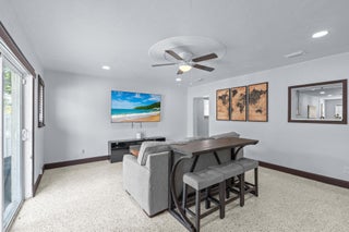Resort Style Living with NO HOA and this property qualifies for closing cost assistance up to $10,000.00. All renovations permitted which provides insurance Discounts. New Roof, Windows, Doors, Plumbing and Electrical. Backyard is Perfect to Enjoy with Tiki area, Sand lot, Grill area, Paver'd Patio, Palm Trees and New Jacuzzi. Inside has Two Family rooms, a separate Dining room and Galley Kitchen with Large Island. 2.5 Bathrooms. Plenty of Storage in Laundry are with Cabinetry. Airbnb Income use.
