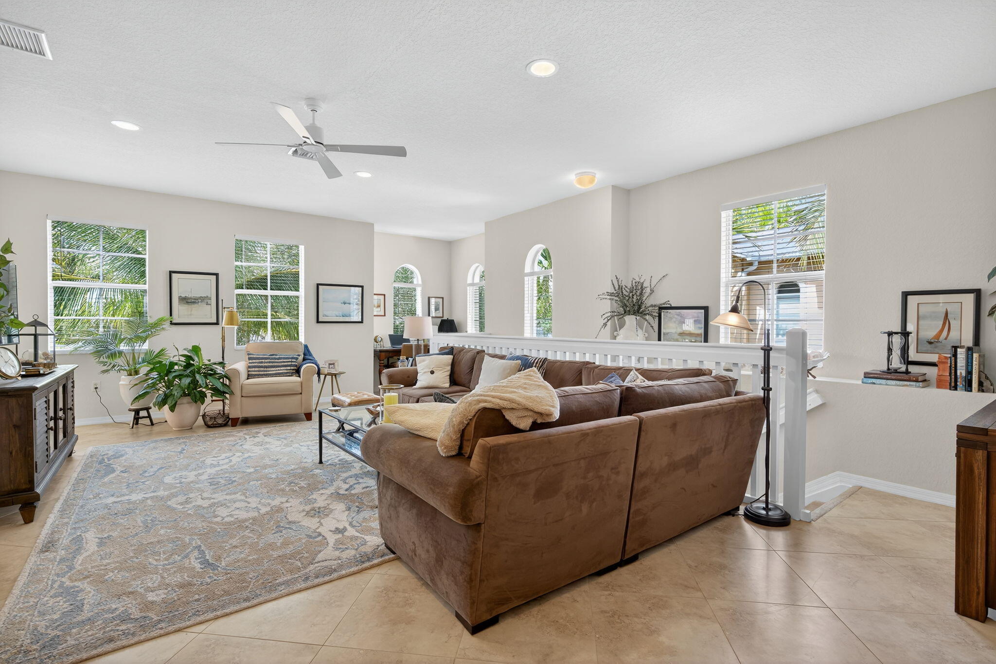 Fabulous, light, bright & spacious end-unit in the highly desirable Jupiter neighborhood at Botanica. This home is immaculate & extremely well maintained with 9' ceilings. The Master Bedroom suite features a covered lanai, walk-in closet & large master bath w/ separate tub & shower. Impact glass windows throughout. The unit also backs up to the tranquil preserve for additional privacy. Community amenities include a tennis court, pool & playground. Enjoy nearby biking or walking paths as well. The location is perfect & central to everything - shopping, beaches & excellent Jupiter schools. Recent high-end upgrades include: New Roof 2024, Newer AC 2018, Water Heater 2023, Refrigerator, Dishwasher, Garbage Disposal and GE Dryer replaced 2025. Washer 2020