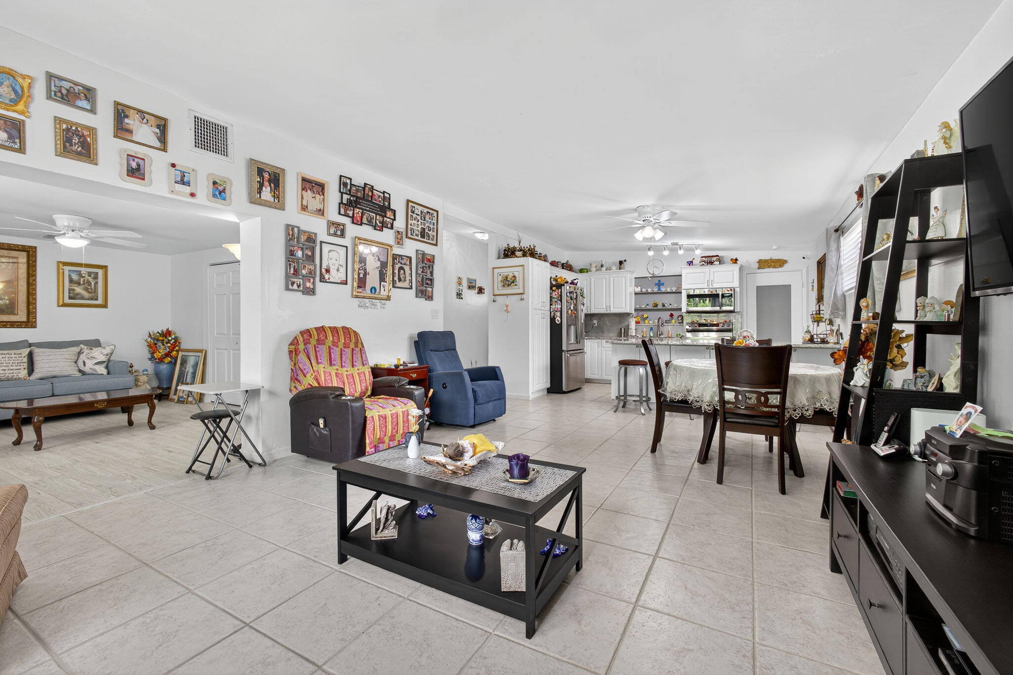 This well-maintained cbs, 3 bdrm/ 2bth home includes a versatile den with a closet--ideal as a potential 4th bedroom. The kitchen has been tastefully updated with granite countertops and white cabinets, offering a clean and modern feel. Tile flooring runs throughout the main living areas, with laminate in the bedrooms & den. A spacious 18.5' x 9'10'' storage room with a separate entrance provides endless possibilities--convert it into an efficiency, studio, or workshop. Located in the heart of Royal Palm Beach, you're just minutes from top-rated schools, shopping, dining, the mall, grocery stores, the airport. ALL reasonable offers considered.