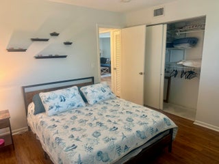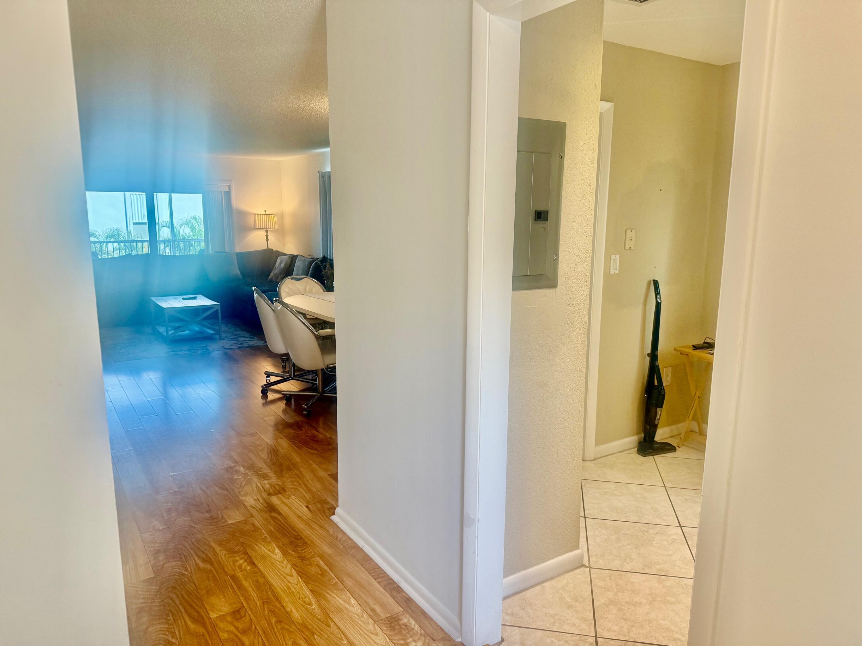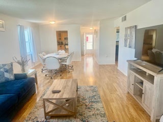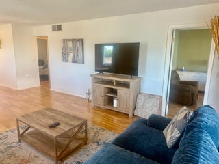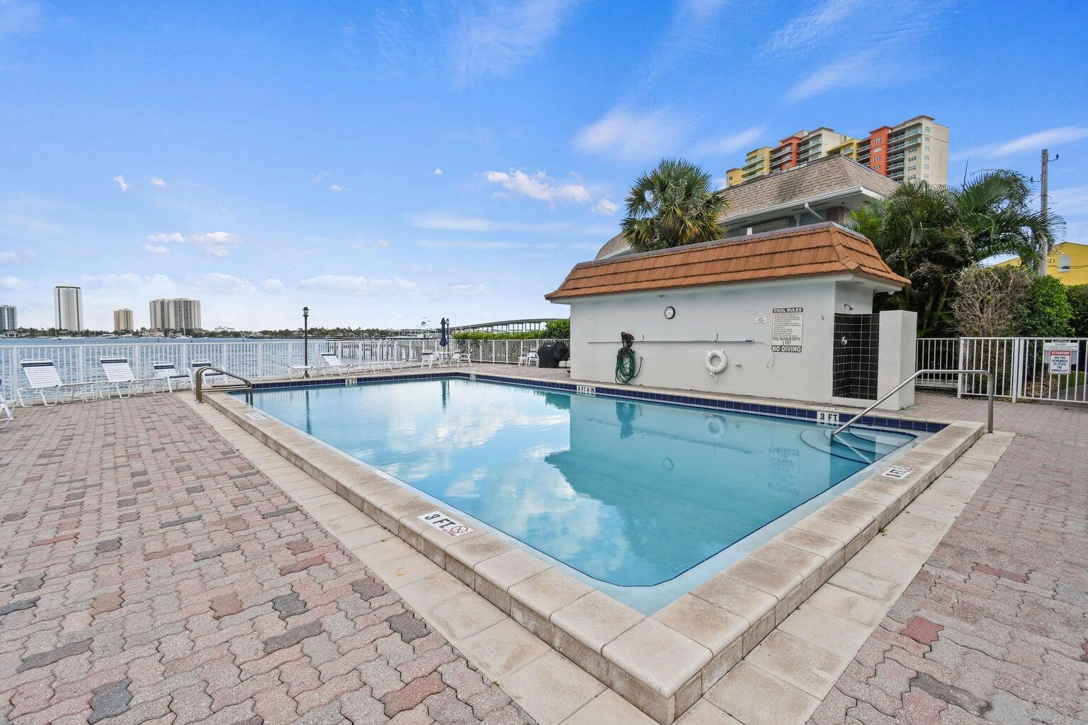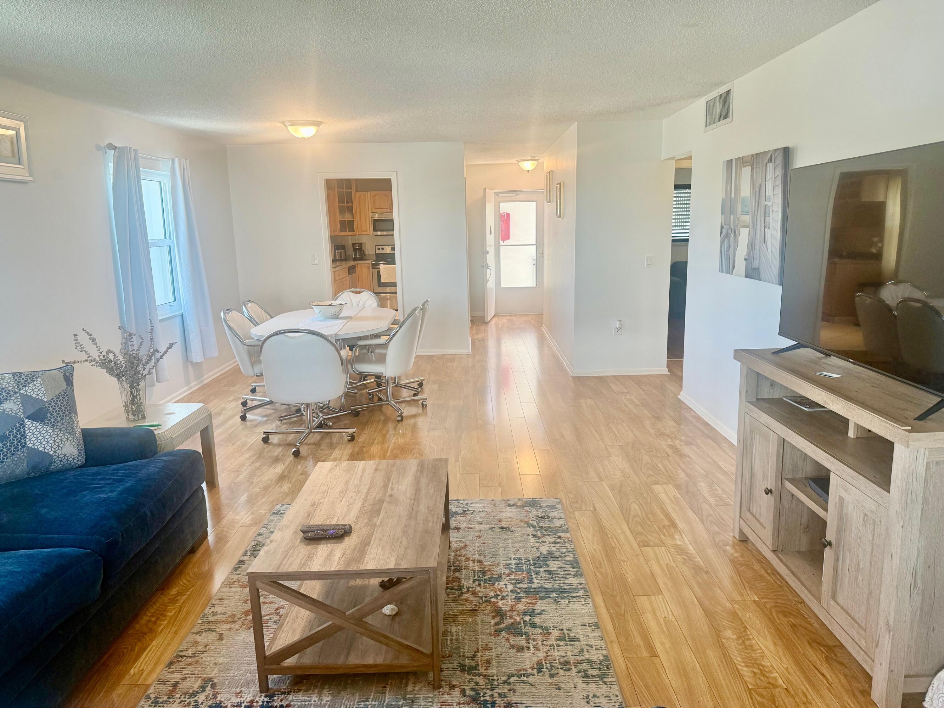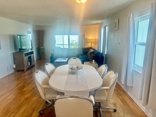 Dolphin Point is a gated community on the intracoastal. New seawall is finished! Pool is directly on the intracoastal to watch boats going by! This unit is ready to move in. Hardwood flooring throughout. Spacious Kitchen with pantry. Large dining room table and living room area. The master bedroom window has a view of the water and its own entrance to the patio. Queen size bed. Large Walk in closet. Master Bathroom has one sink and a combo shower/tub. The second bedroom has a queen size bed with a couch and tv. The guest bathroom has a shower. This unit has drapes and blinds on all windows and sliders. It is a very nice condo and ready to move in!